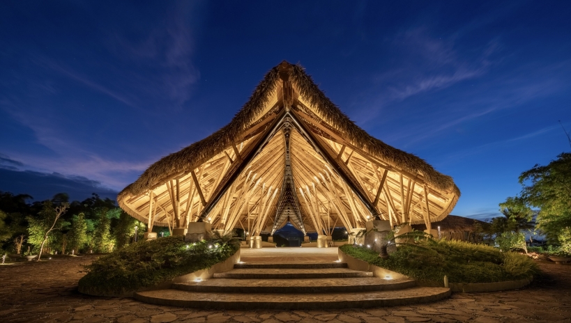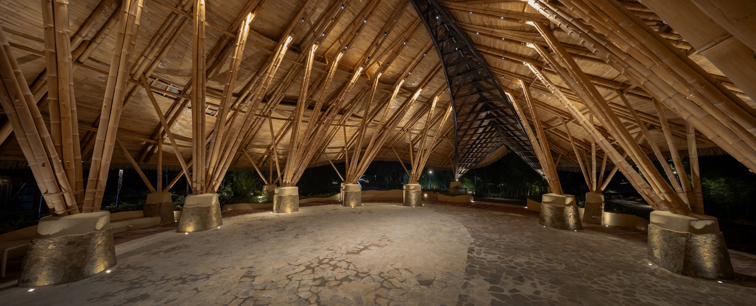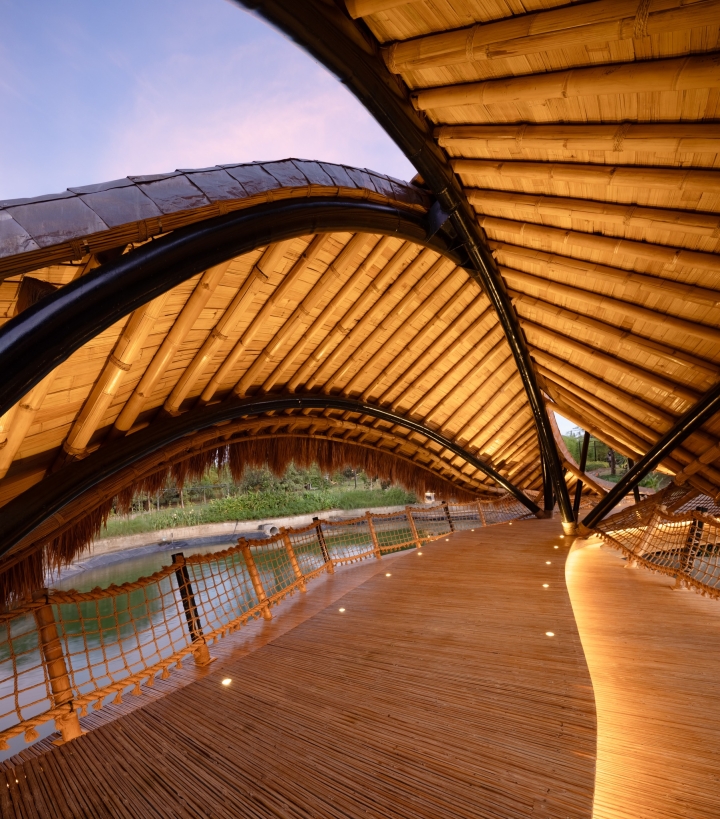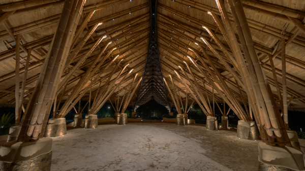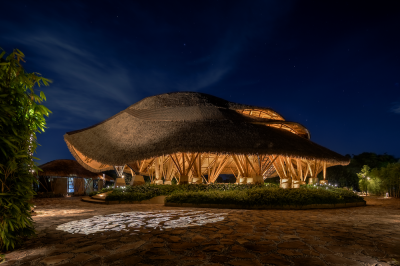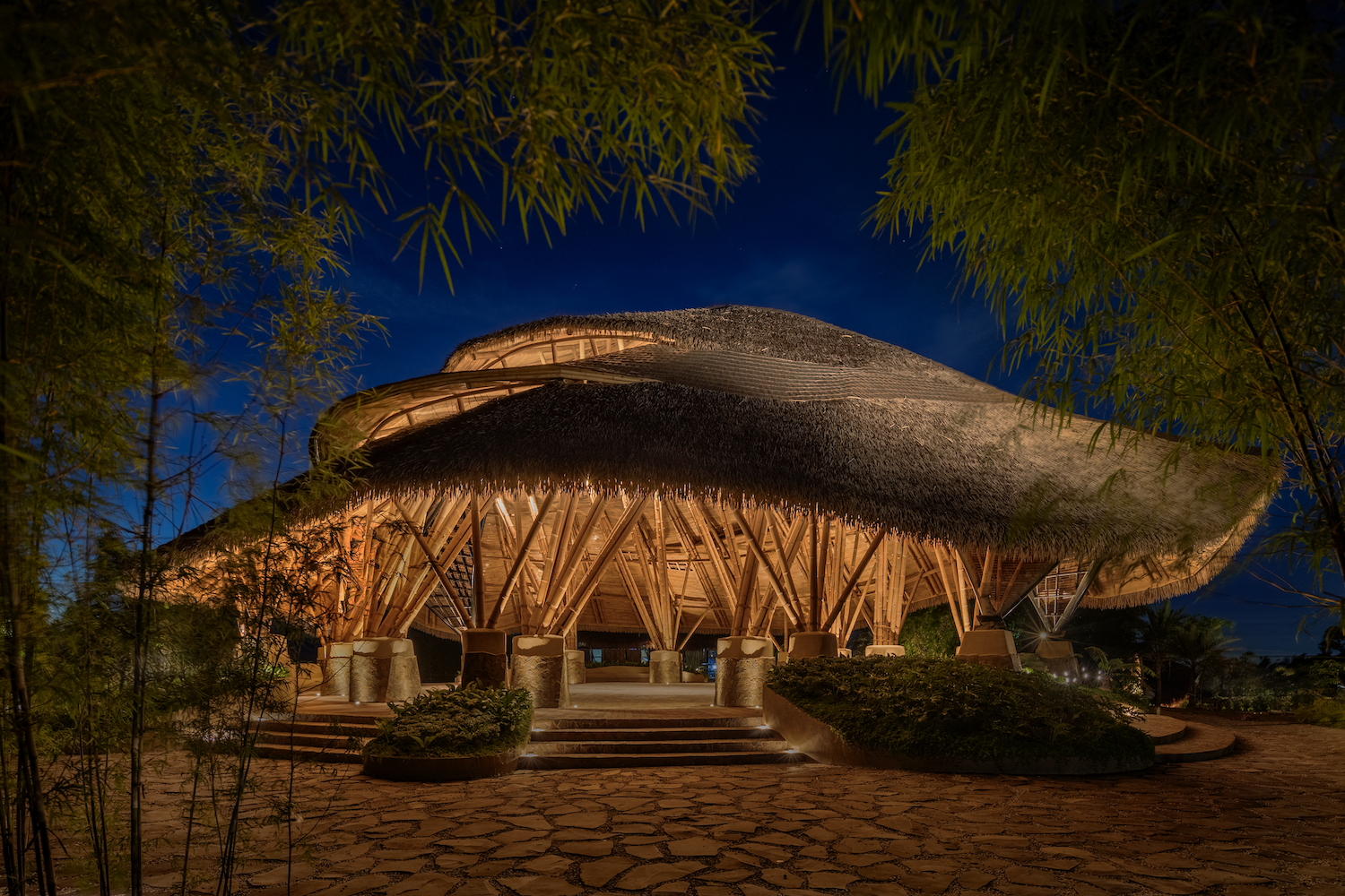 Entry DescriptionAt Kawayan Eco Park, lighting was not conceived as a layer to be added, but as an element embedded into the architectural narrative of the bamboo pavilion and its landscape. Each lighting decision stemmed from a careful study of the structure’s form, materiality, and rhythm. From the clustered bamboo columns to the sweeping thatched roof, every facet was considered to reveal its essence without overpowering it. Warm uplighting at the base of the columns emphasizes vertical cadence—establishing a visual rhythm legible from both near and far. Soft grazing from discreet ceiling fixtures reveals the handcrafted roof's texture while preserving shadow and depth. Along the bridge, recessed floor lights and concealed grazers trace the path and canopy in a warm gradient, mirrored in the water to poetic effect. Rather than flatten or distract, lighting supports legibility—articulating structure, guiding movement, and amplifying material honesty. Viewed as a whole, it binds the composition—sculpting the pavilion’s geometry at night and allowing it to breathe in its setting. Here, light is not spectacle; it is atmosphere. It reveals, respects, and refines—bringing the architecture into focus through quiet precision.