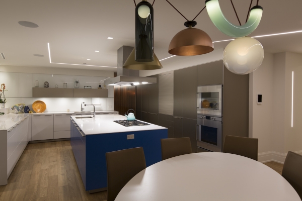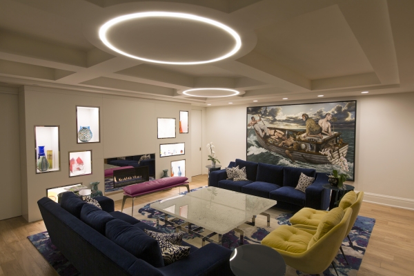Lighting needed to reflect the owners’ love of art, color, food and fashion, showcasing artwork and collections, and serve various functions, from intimate evenings to large philanthropic fundraisers.