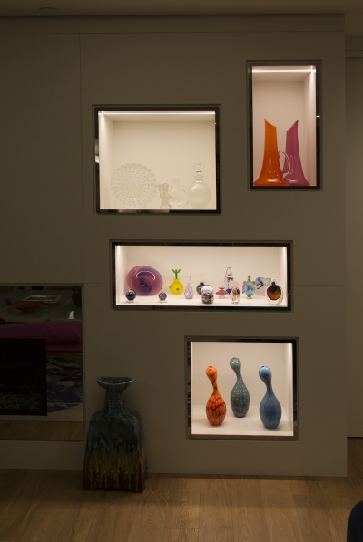 Contrast is leveraged by isolating art objects within niches, emphasizing lighting hierarchy and adding interest. Individual spaces are united by glare free, volumetric light that adds continuity and tranquillity.