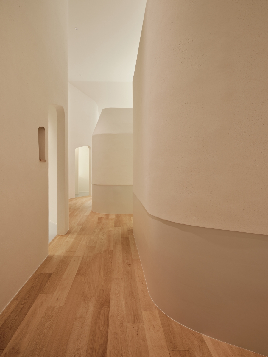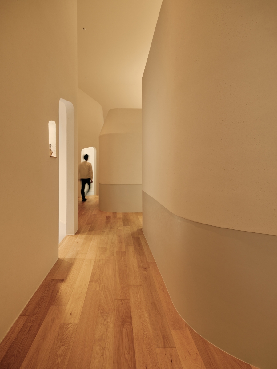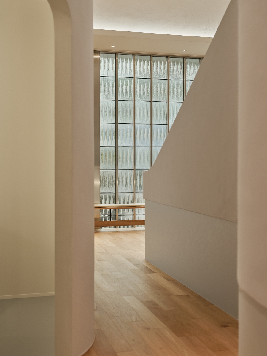 Three principles guided the concept: (1) harmony between daylight and artificial light, (2) dynamic control based on circadian rhythm, and (3) integration with architectural materials. A square layout of tunable indirect lighting, ranging from 2700K to 20000K, was installed in the ceiling to evoke the sensation of an open sky. Waiting room with natural plaster finishes were softly illuminated via concealed uplighting to enhance tactile comfort.