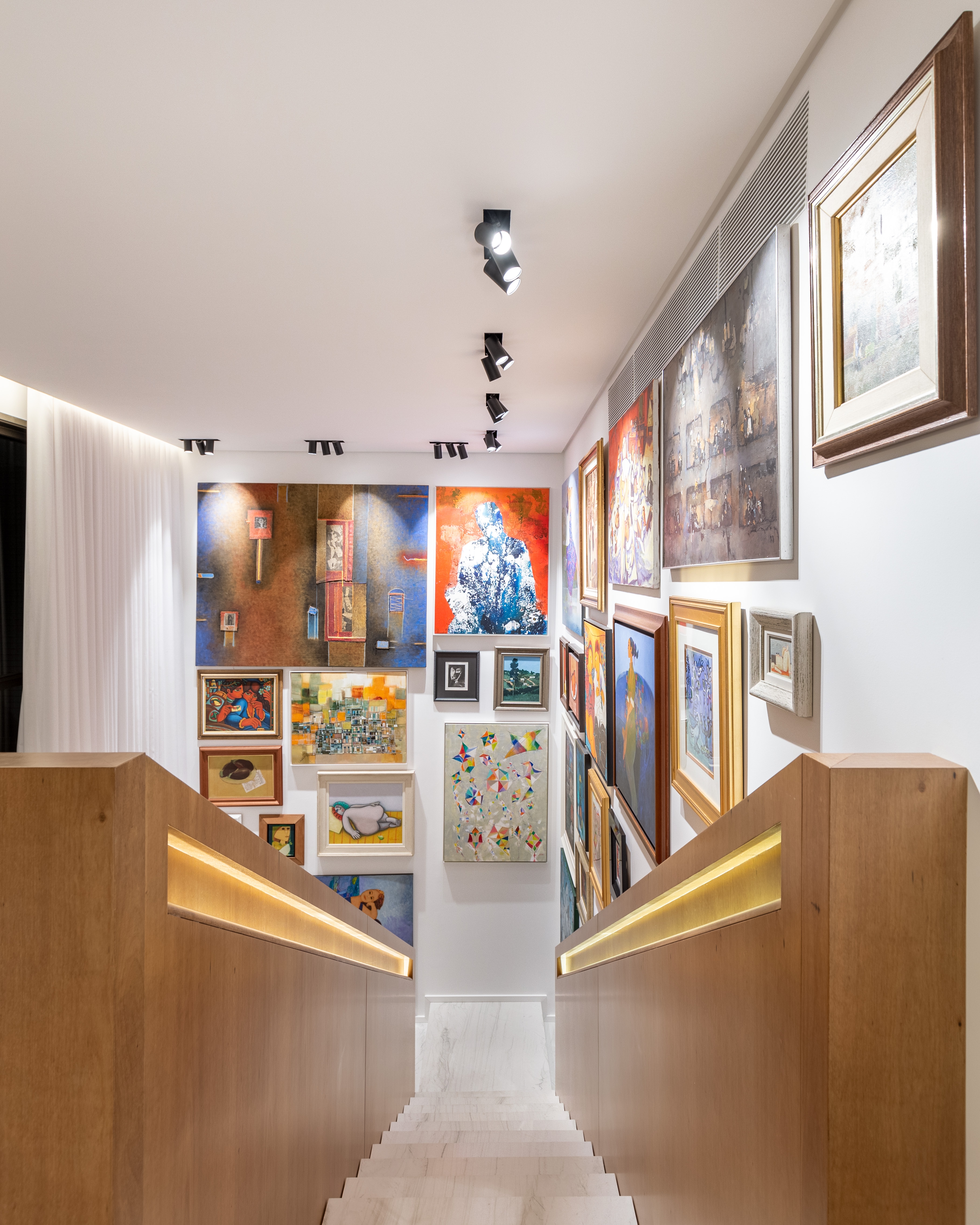 An apartment with arts and leisure spaces as objective. The lighting project was developed to offer different scenes and to improve the exposed arts experience. The best lighting products in technology, design and comfort was used to get the lighting effects as proposed in our project. The appreciation of the textures and materials used in the Interior Design was also one of the premises reached.