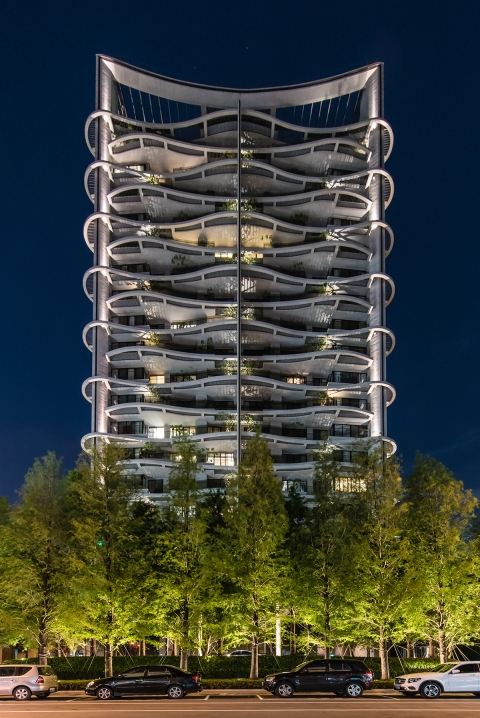Located near the forest park, its wavy curved appearance blends with the natural environment, incorporating the trees and landscape into daily lives, which adds the sense of elegance of the swaying trees into the building.