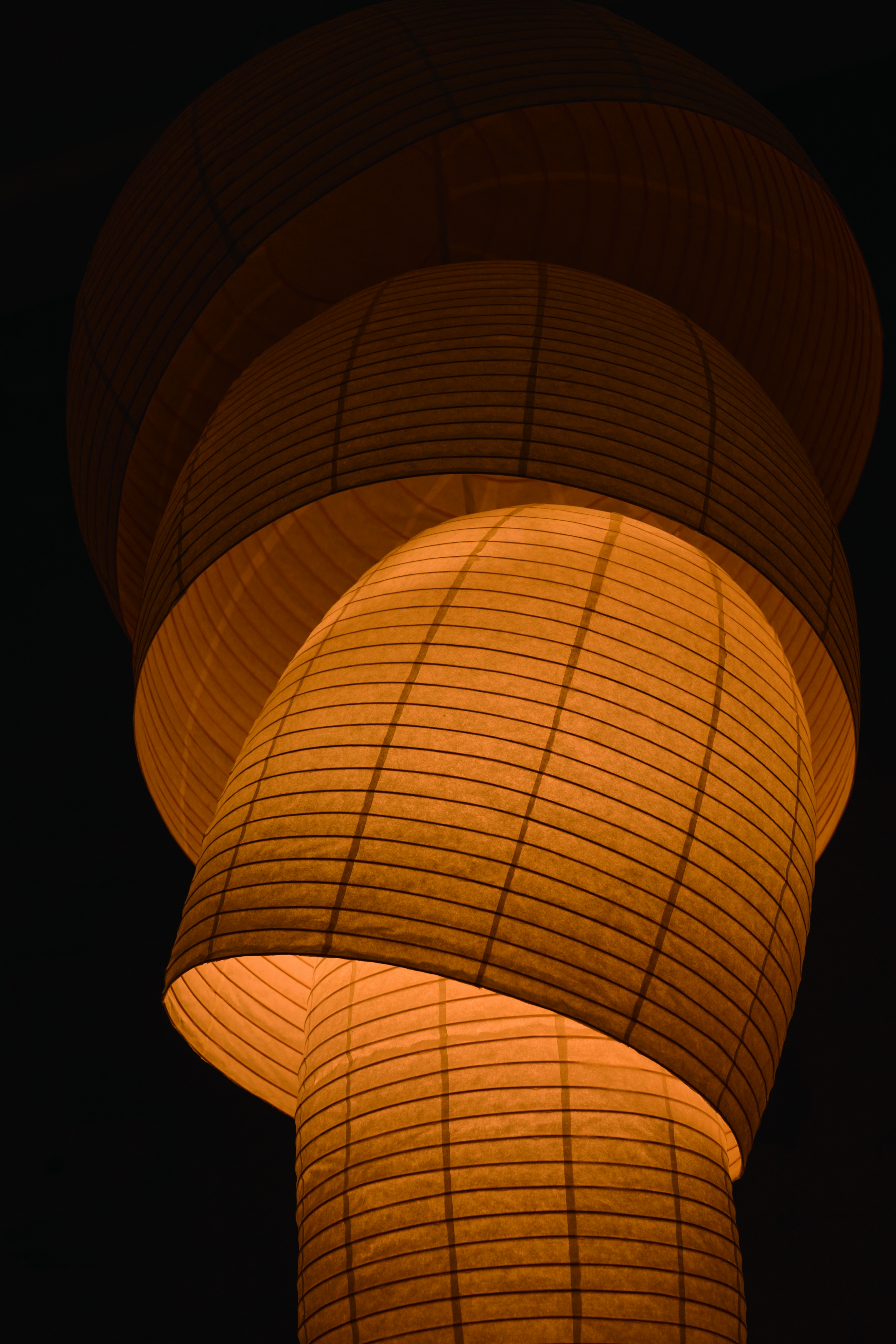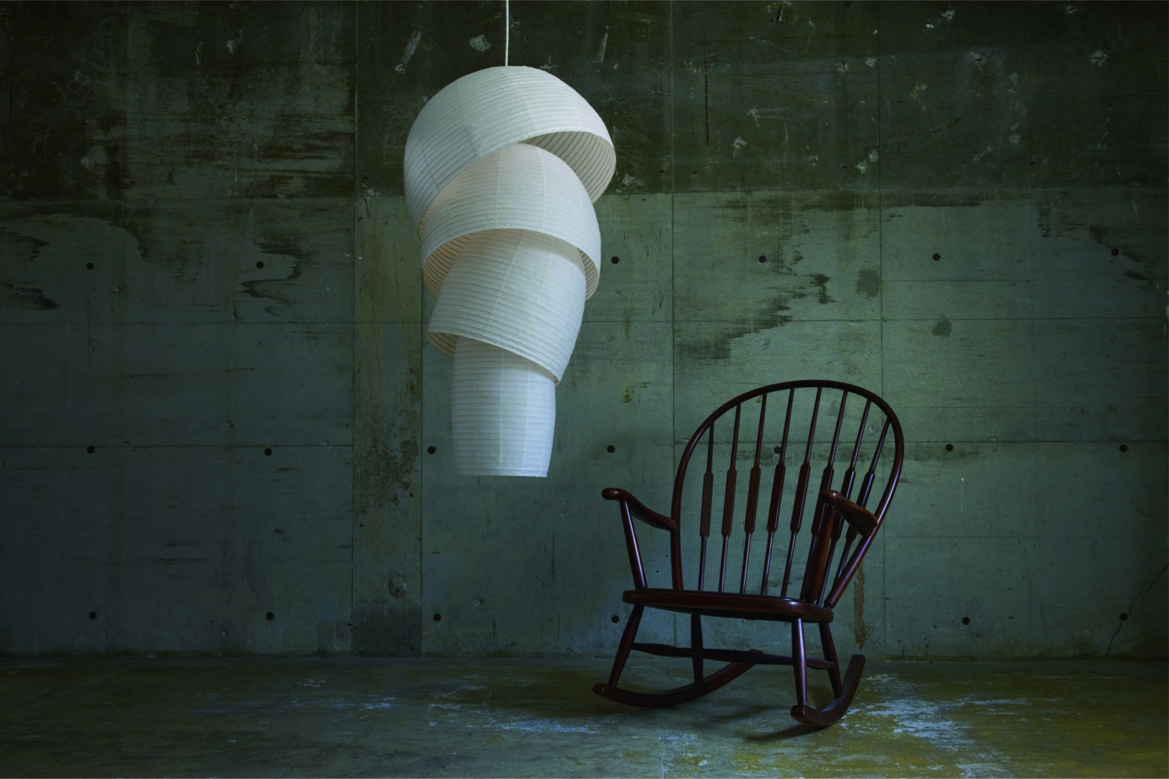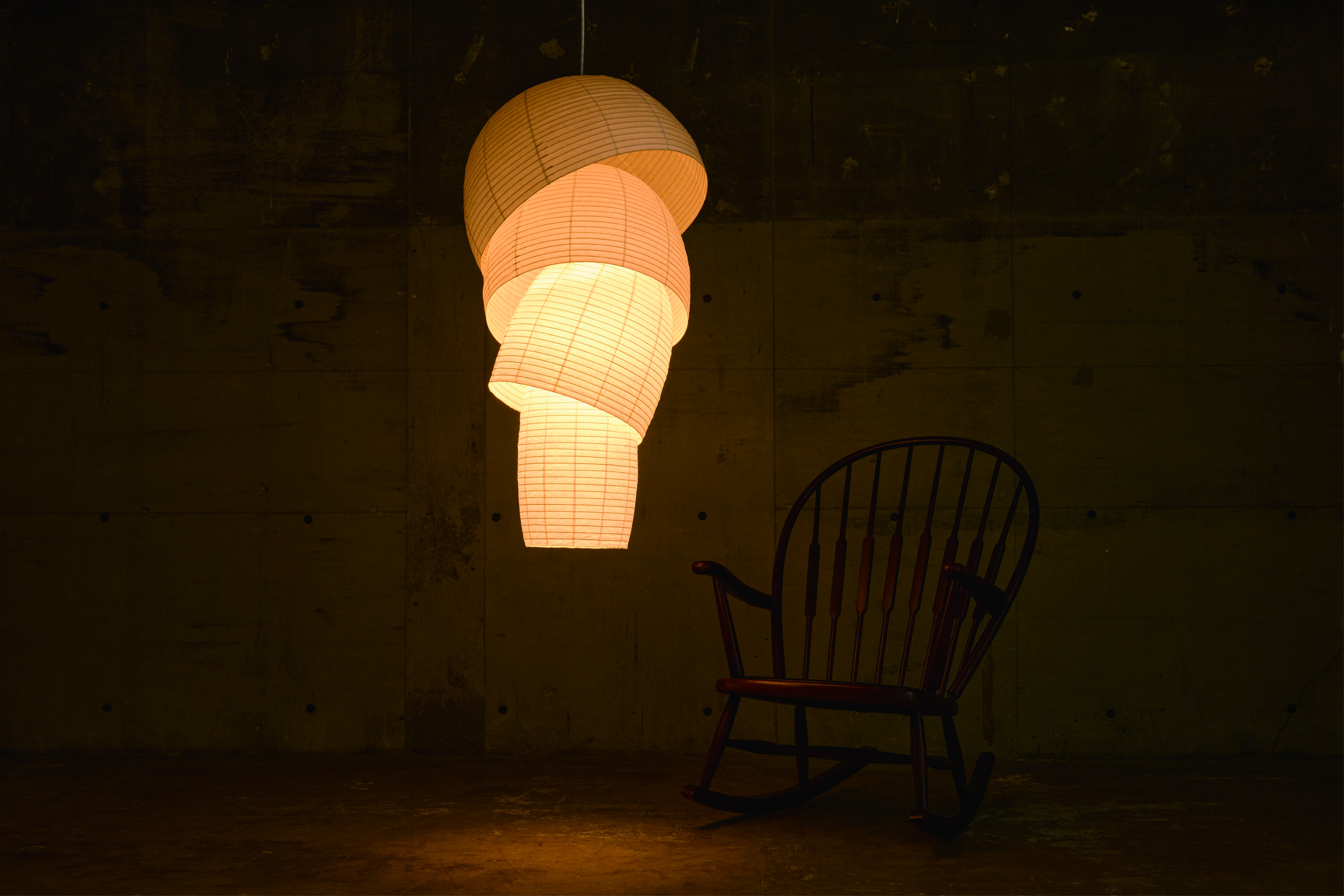 Entry Description“Kurage" is a lighting fixture made up of various sizes of chochin, large and small, cut into rings and stacked on top of each other to form a single form. The soft light spreading through the Japanese paper creates a beautiful gradation as it moves upward, reminding one of a kurage (jellyfish) drifting slowly in the sea, hence the name "Kurage".