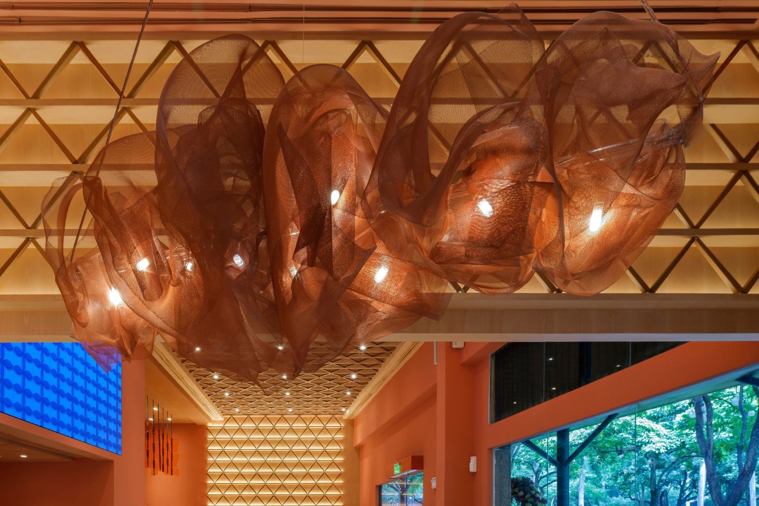 Despite its delicate appearance, Nova is built on a durable, lightweight wire frame, making it easy to install while maintaining visual transparency. It integrates high-efficiency LED lighting for sustainability and performance, suitable for both residential and commercial environments.
