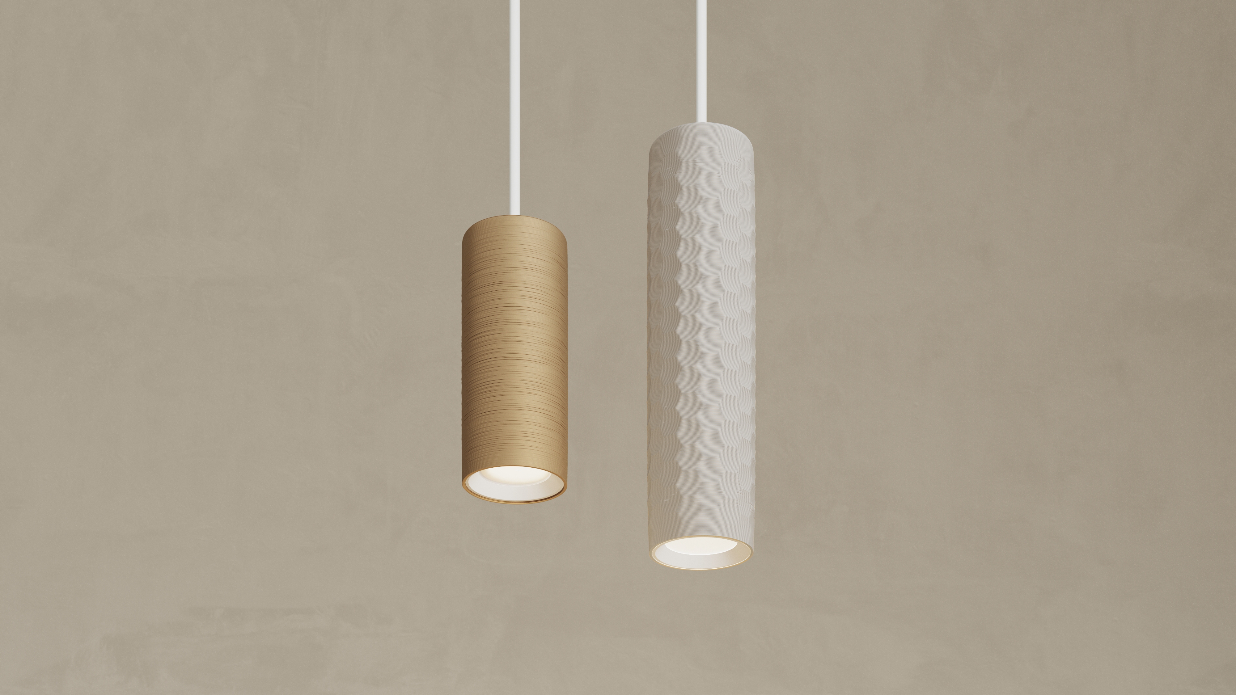 Entry DescriptionThese cylindrical downlights reimagine the architectural pendant: compact, elegant, high-performance luminaires that offer artistry and efficiency in equal measure. Harnessing the power of additive manufacturing (3D printing), PrentaLux cylinders provide lighting designers with unprecedented creative freedom to bring their vision to life while maintaining precise control and exceptional light quality.