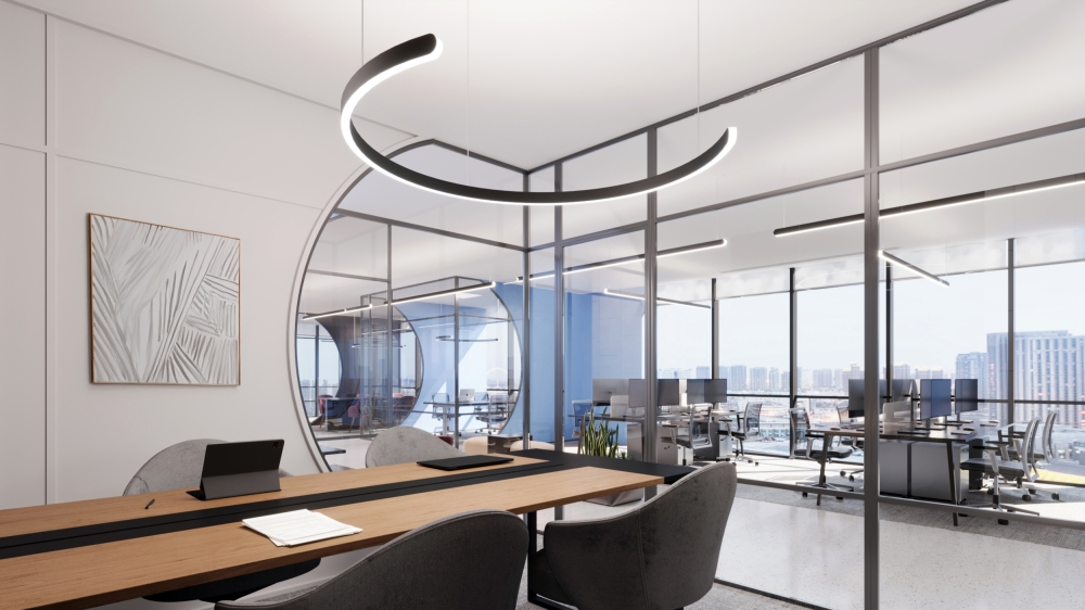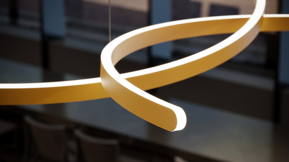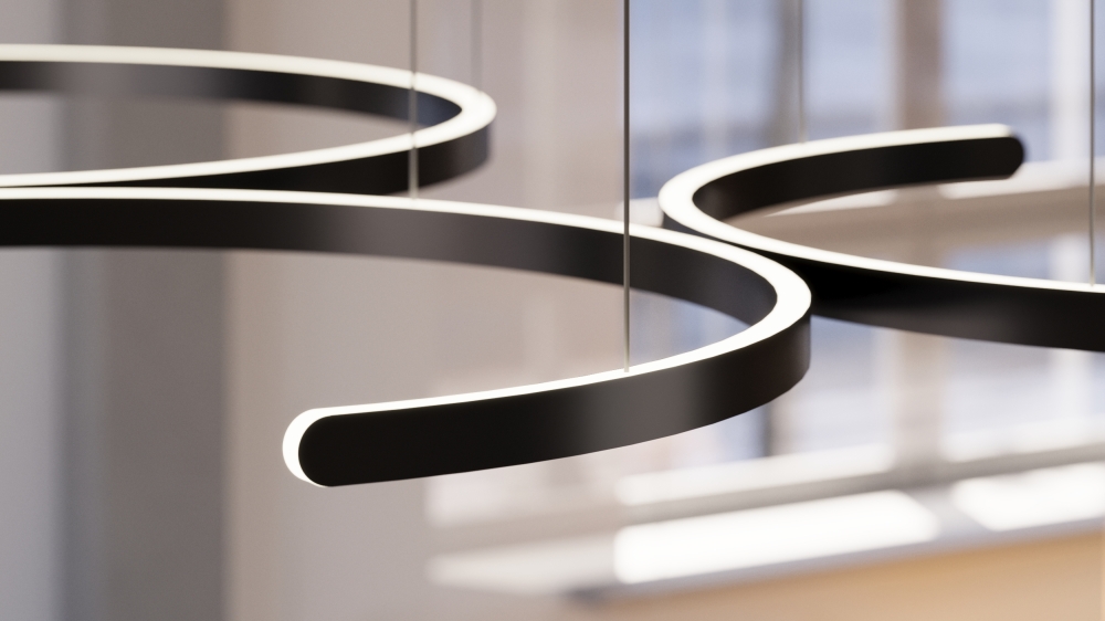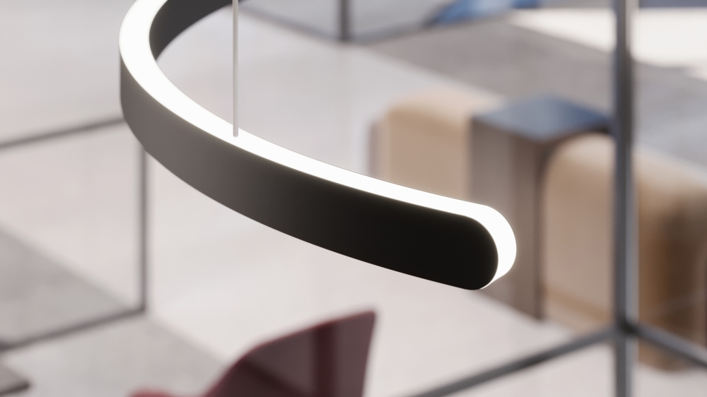 This seamless design enhances both aesthetics and performance, providing uniform light distribution across the entire fixture. The curved ends further reinforce this effect, allowing the lens to transition smoothly around the edges, avoiding harsh cutoffs and maintaining a cohesive, fluid appearance. Available in arc-shape and straight configurations, VELOP adapts to dynamic environments, offering scalable solutions for open offices, collaborative workspaces, hospitality settings, and beyond. Its versatility makes it a refined yet impactful lighting solution—one that enhances not just the space but the experience within it.