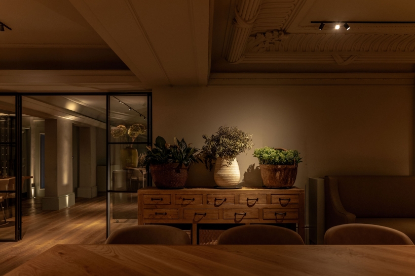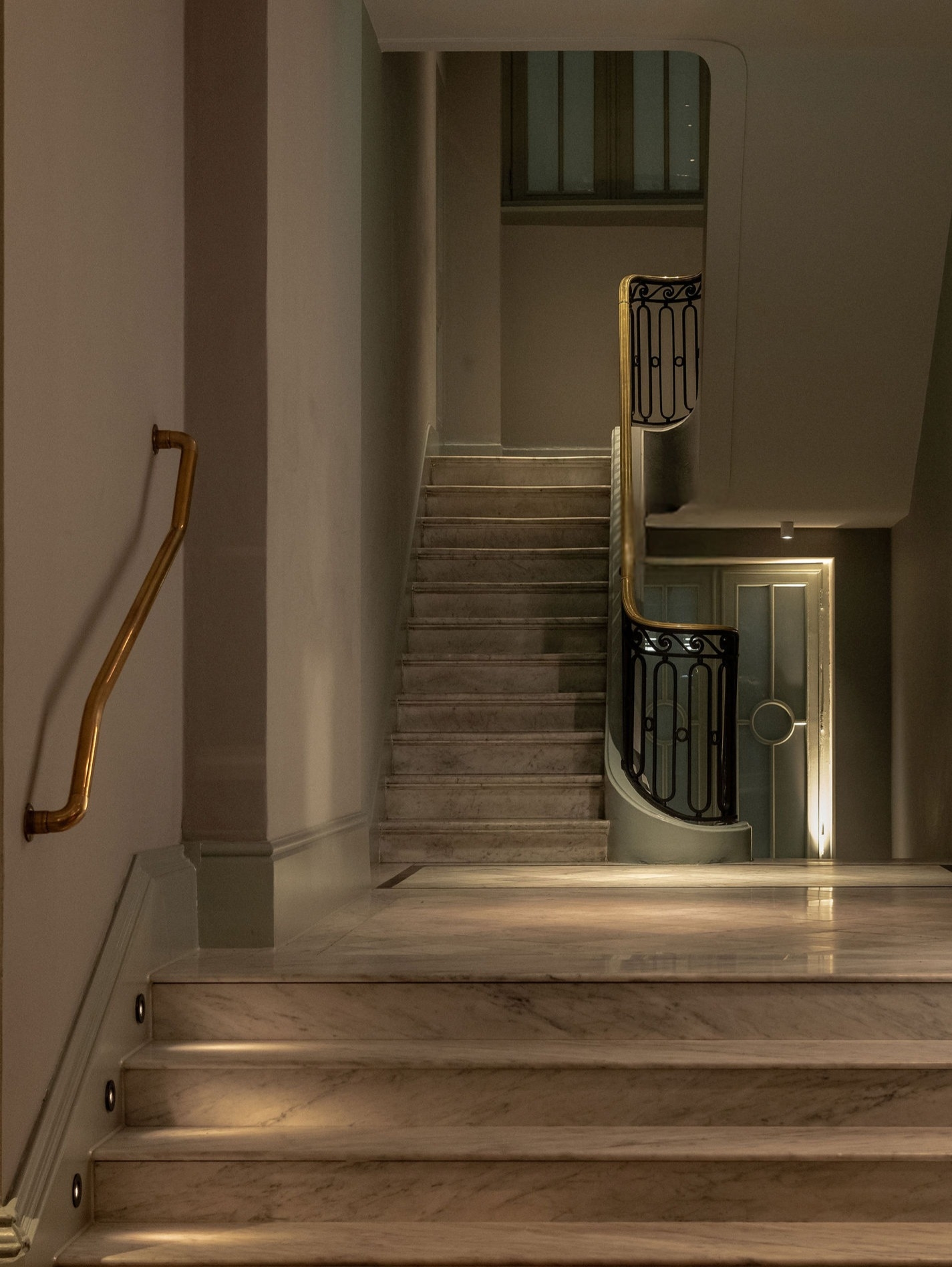 Low level tuneable white strip lighting in furniture and step details anchored the lighting scheme and provided way finding. A Casambi lighting system was chosen for its flexibility and ease of installation within a heritage building