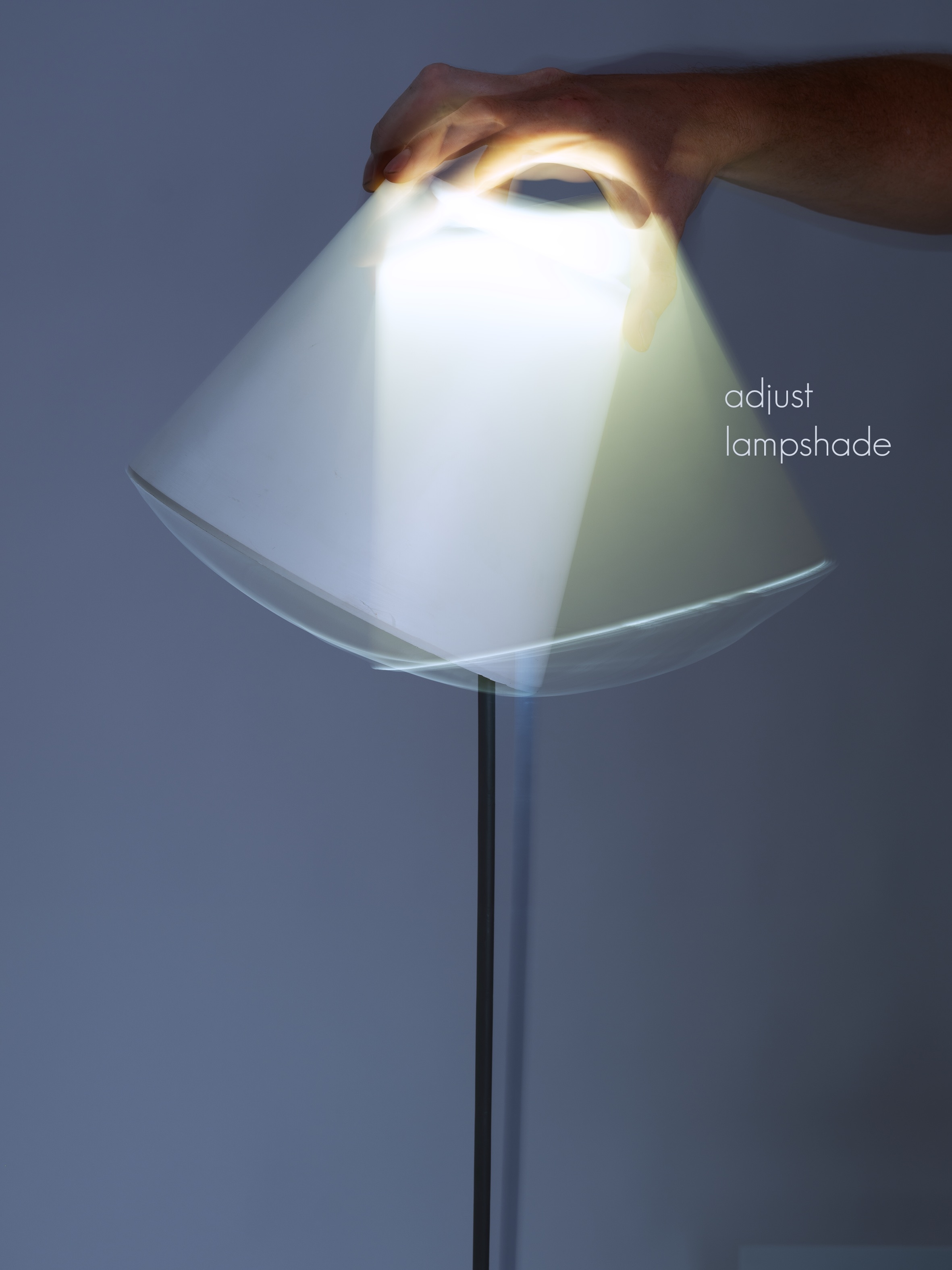 The lampshade is both pivotable and height-adjustable. It can be flexibly directed via a ball joint; a locking ring allows vertical adjustment. When the shade is moved downward, another fascinating effect occurs: it appears to float like a small wonder in the space.