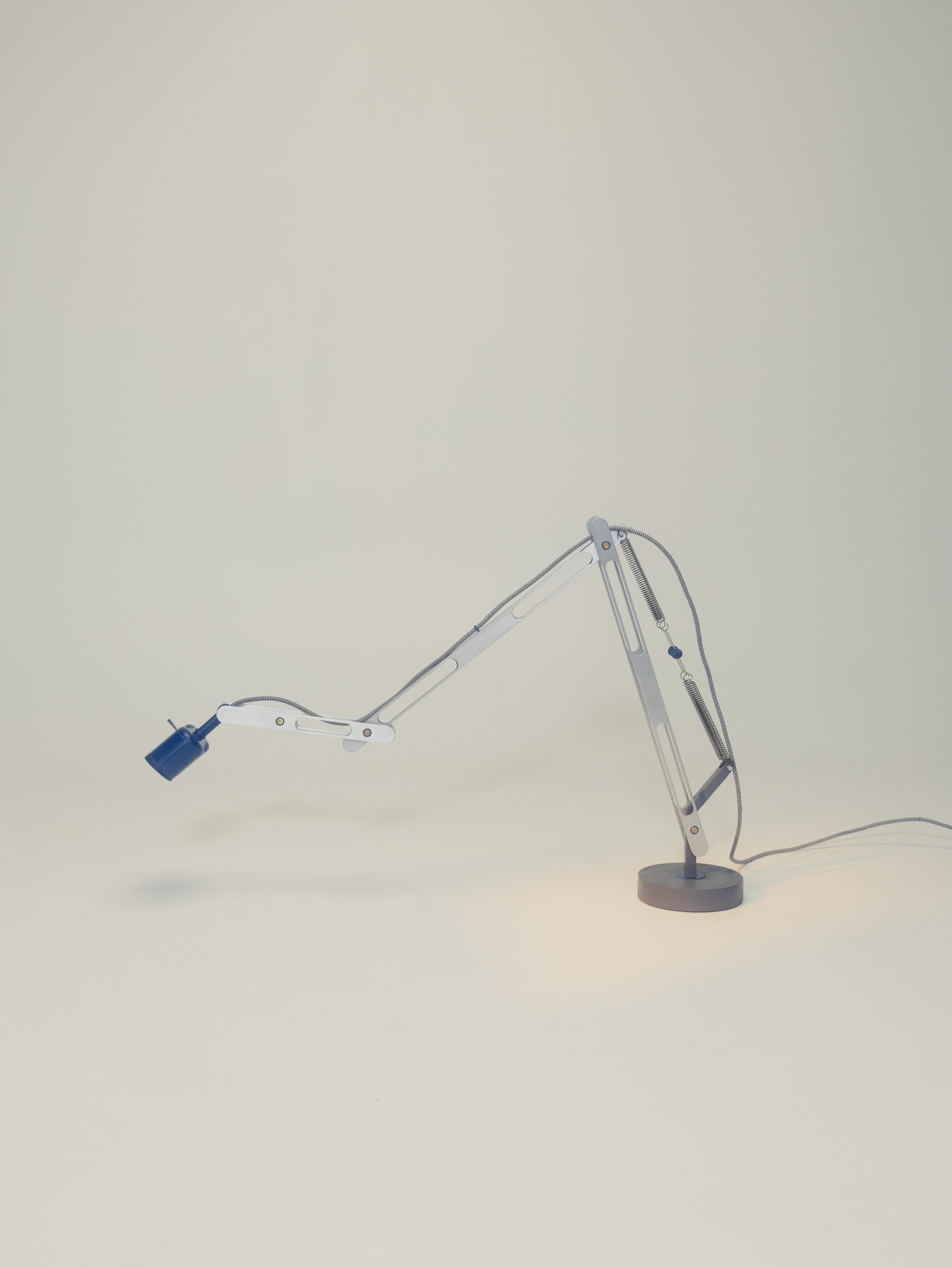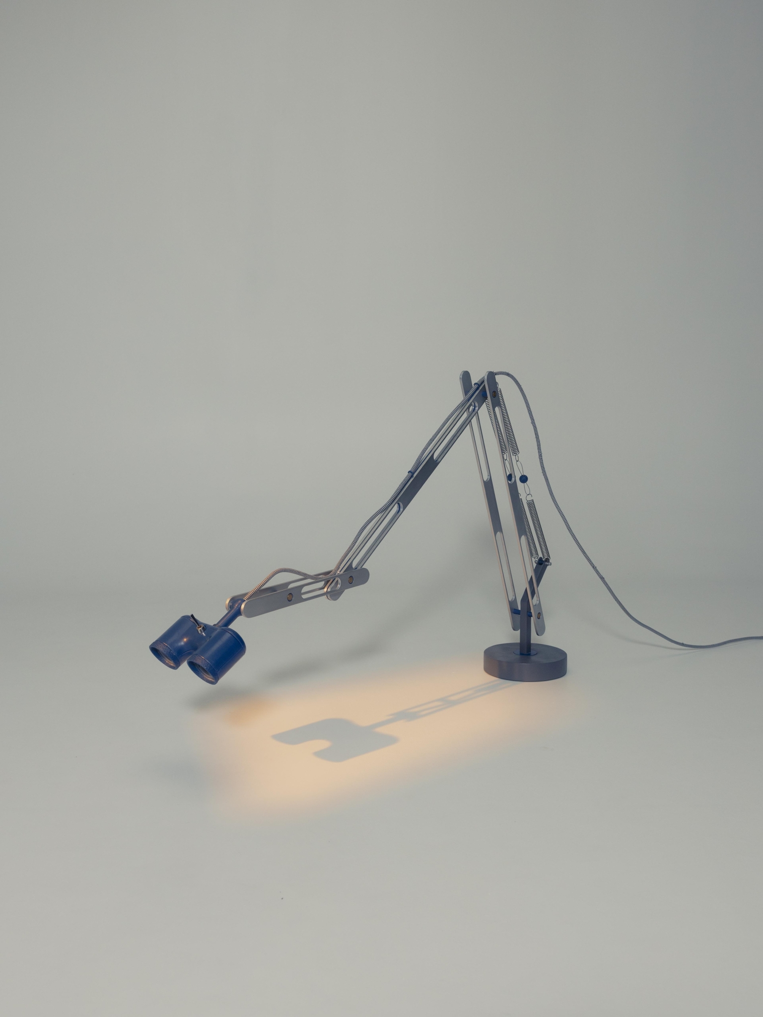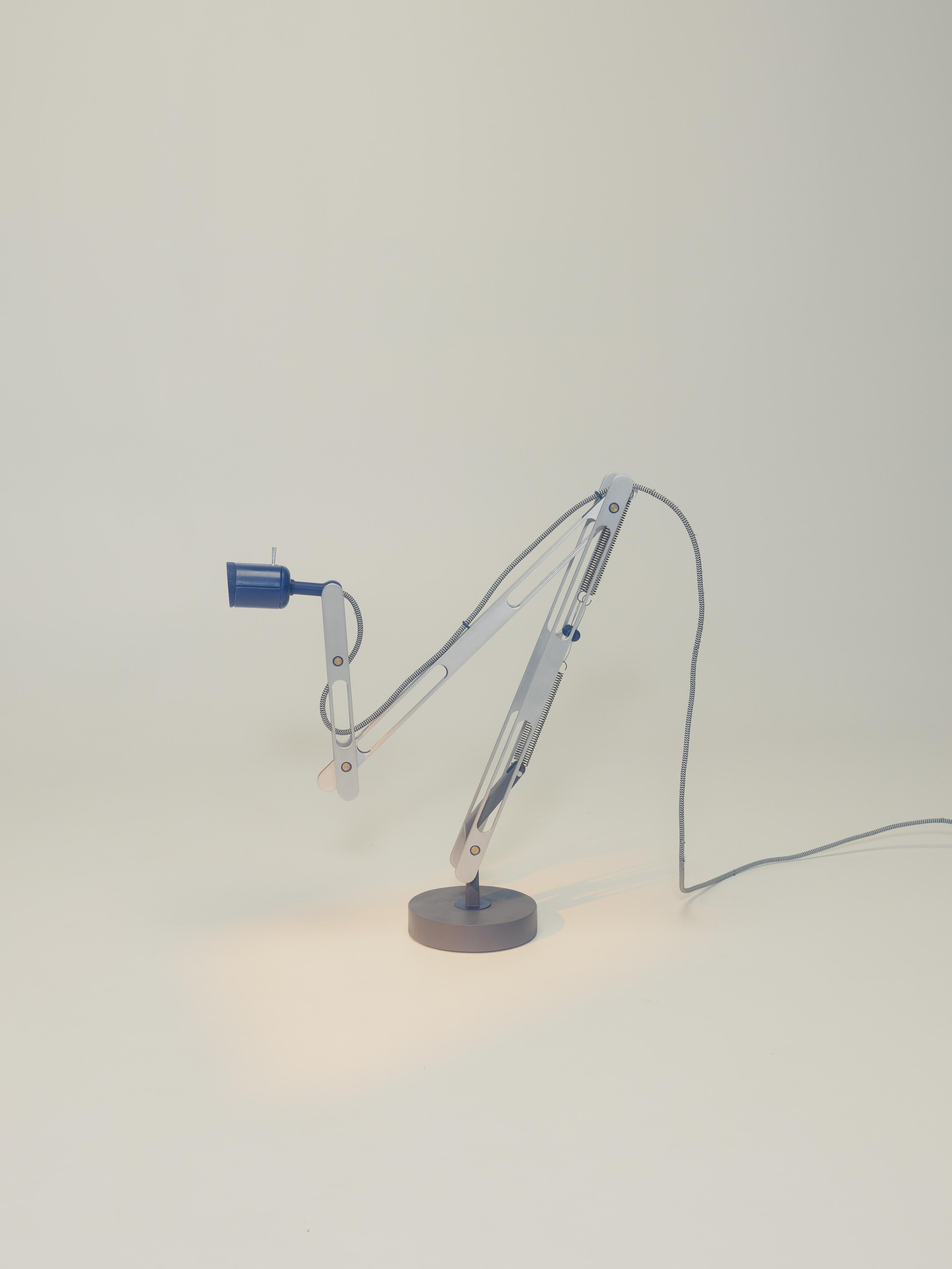 Crafted from 25 mm by 4 mm aluminum profiles, each piece was cut and hand-finished with care. 3D-printed components bring intricate details to life, while a solid iron weight in the base provides stability, grounding the lamp’s unique form in both function and presence.