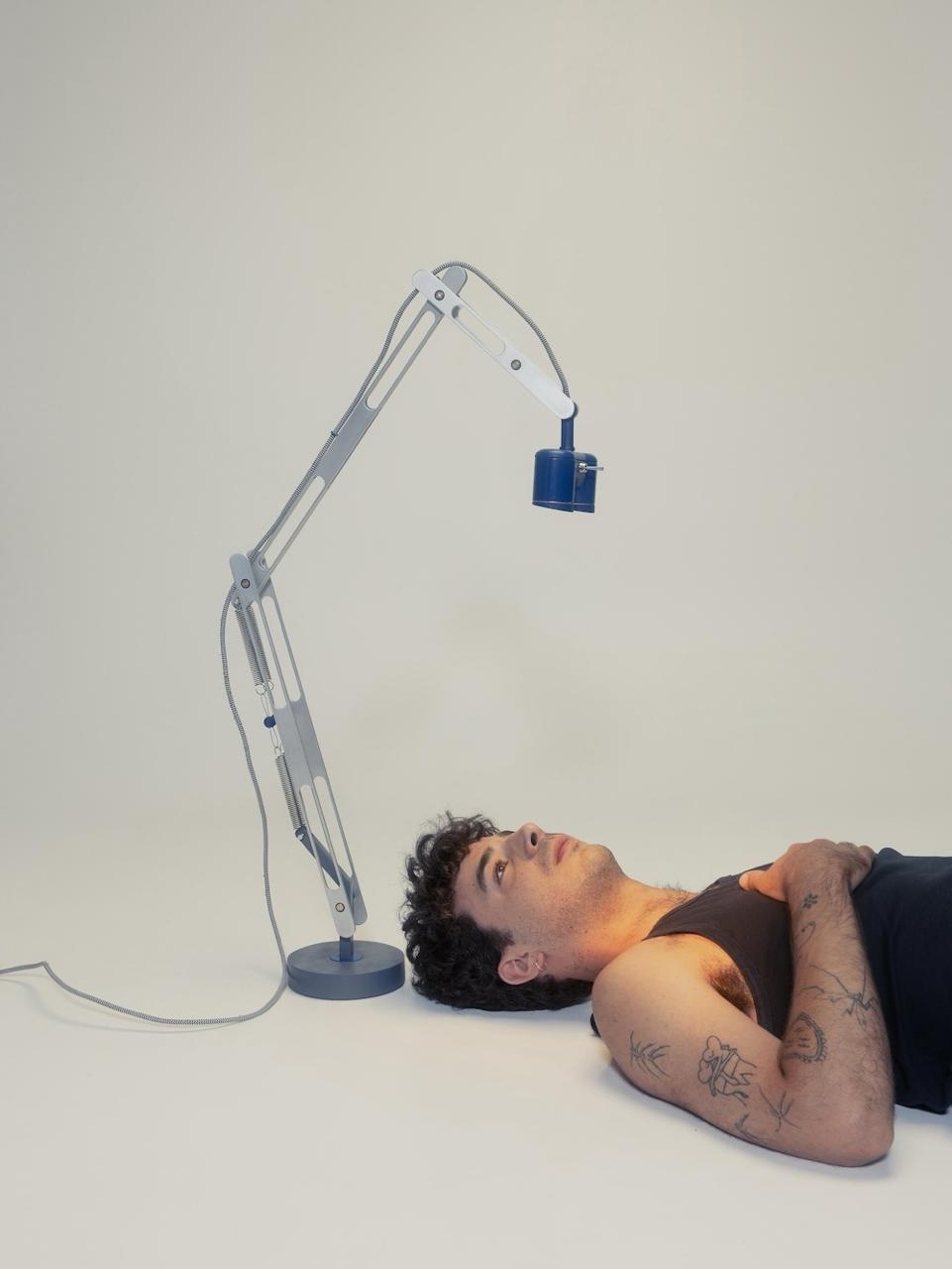 Entry DescriptionThe lamp draws its inspiration from the world of robotics, blending mechanical precision with a living presence. Through the use of two eye-like elements, it gains an animalistic character, as if it were alive. The aluminum profiles form a body-like structure, while the head completes its lifelike appearance, creating a design that feels both engineered and instinctive.