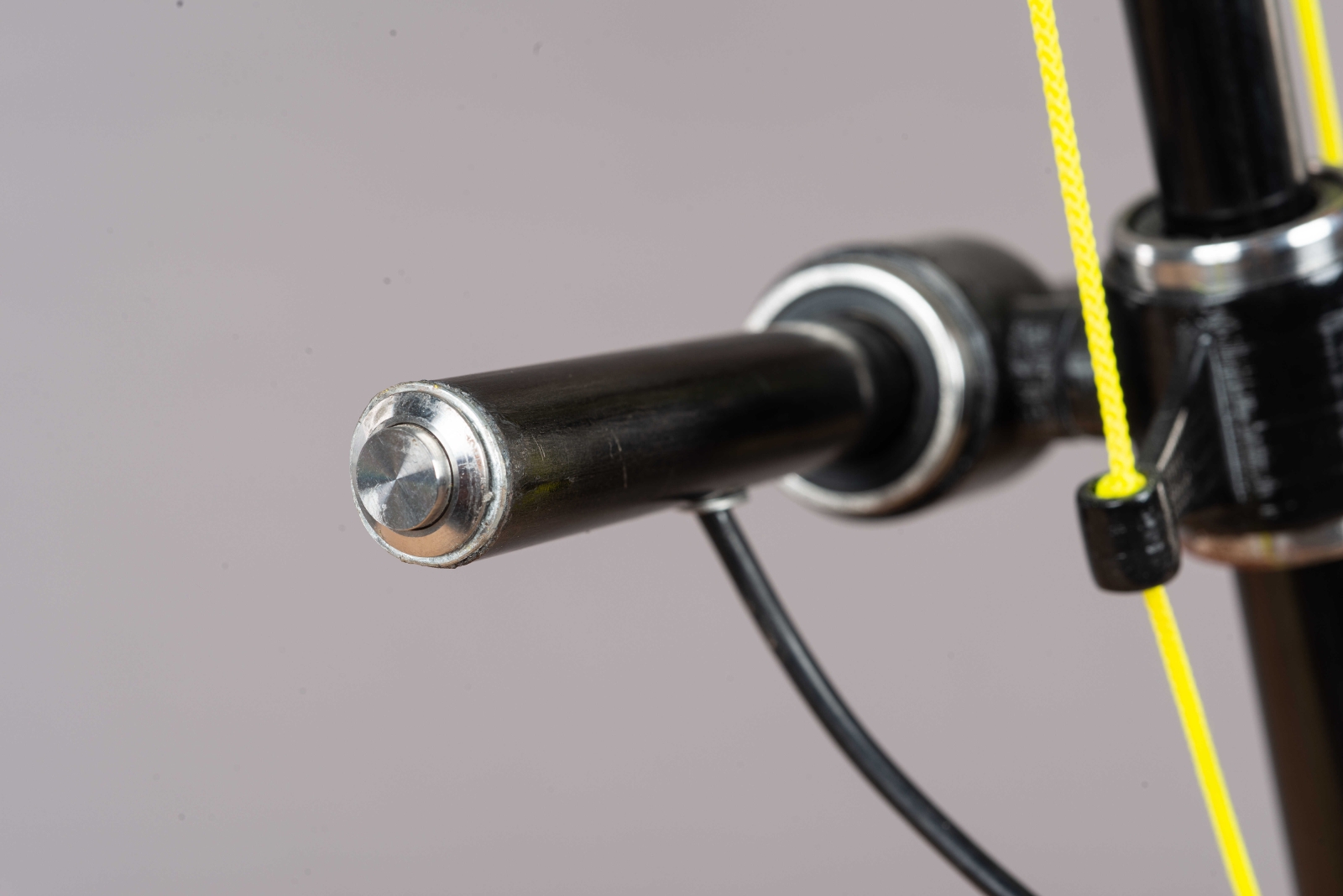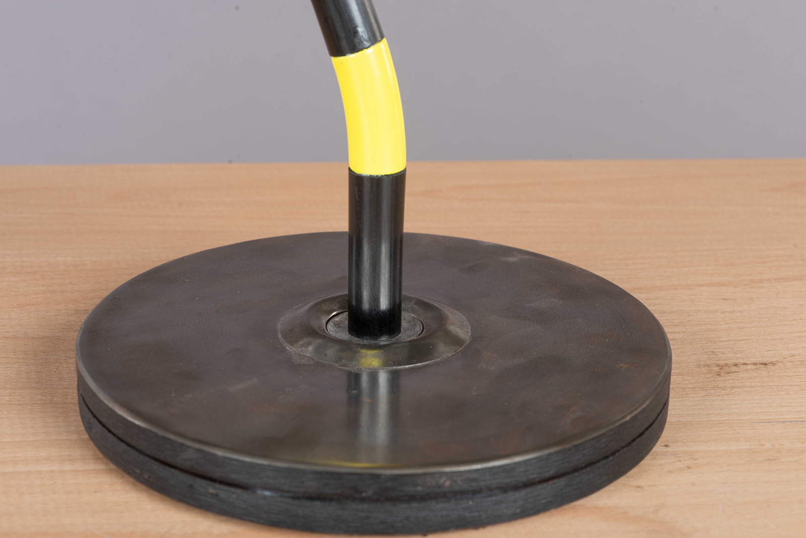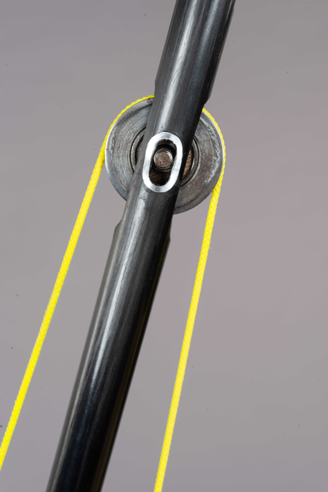 The lamp operates through a unique mechanism I developed, consisting of two pulleys—one fixed and one sliding along an axis, tensioned by a spring. A continuous closed-loop cord surrounds both pulleys and connects to a horizontal arm that carries the light source. This mechanism enables smooth movement across multiple axes, allowing the lamp to be positioned effortlessly and to hold firmly in place at any chosen angle.