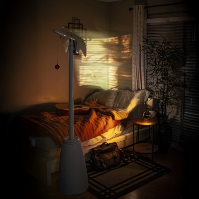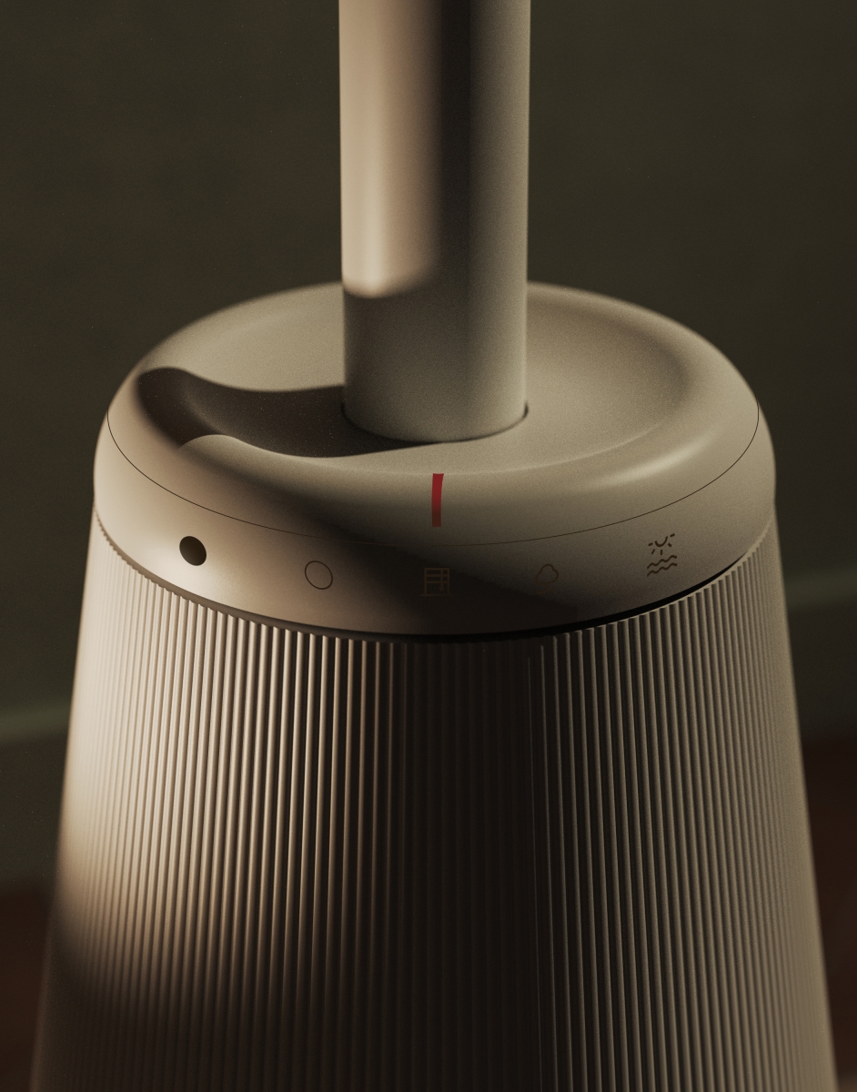 Motifs representing travel and journey are adapted to DAYDREAMR's essentialist appearance and form. The frosted, translucent hood is reminiscent of ship sails and forgotten bottles long lost at sea. The lamp's stem is the ship's mast, and the lamp's base are the ship's barrels. In the same manner that ships of the past brought with them stories from beyond the shore, Daydreamr brings with landscapes beyond the room.