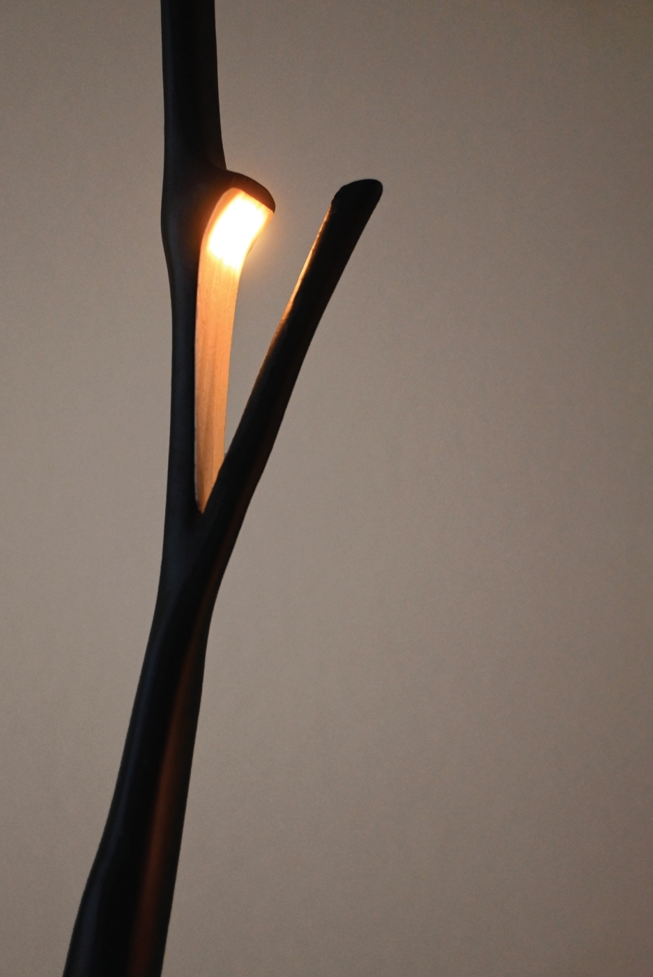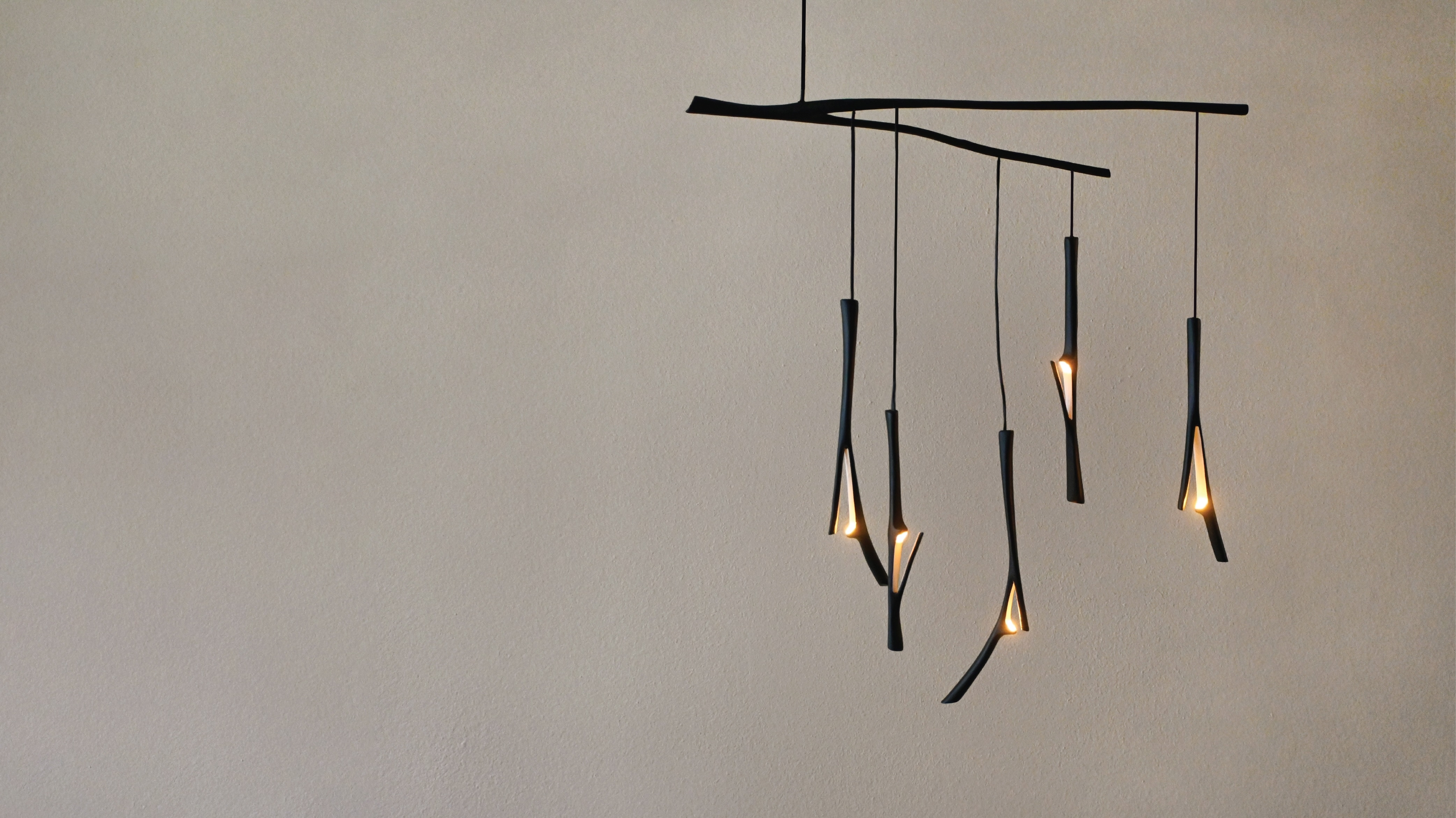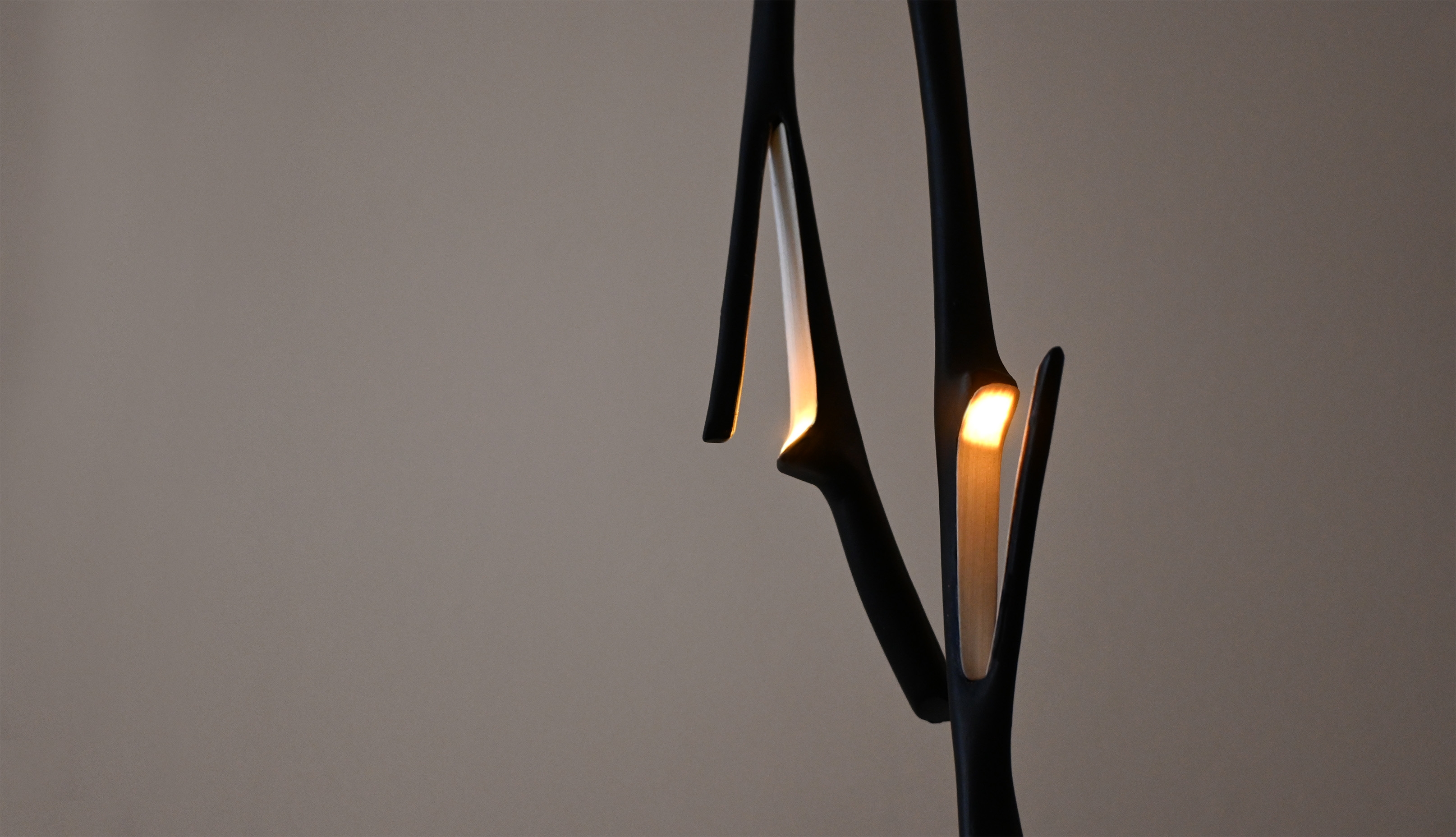 While walking through Altadena—a community deeply affected by the fire—I came across a broken branch. I placed a light where it had split, allowing warmth to shine through the damage. The piece balances wood-like texture with organic movement, evoking a quiet sense of calm, safety, and resilience.