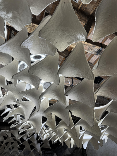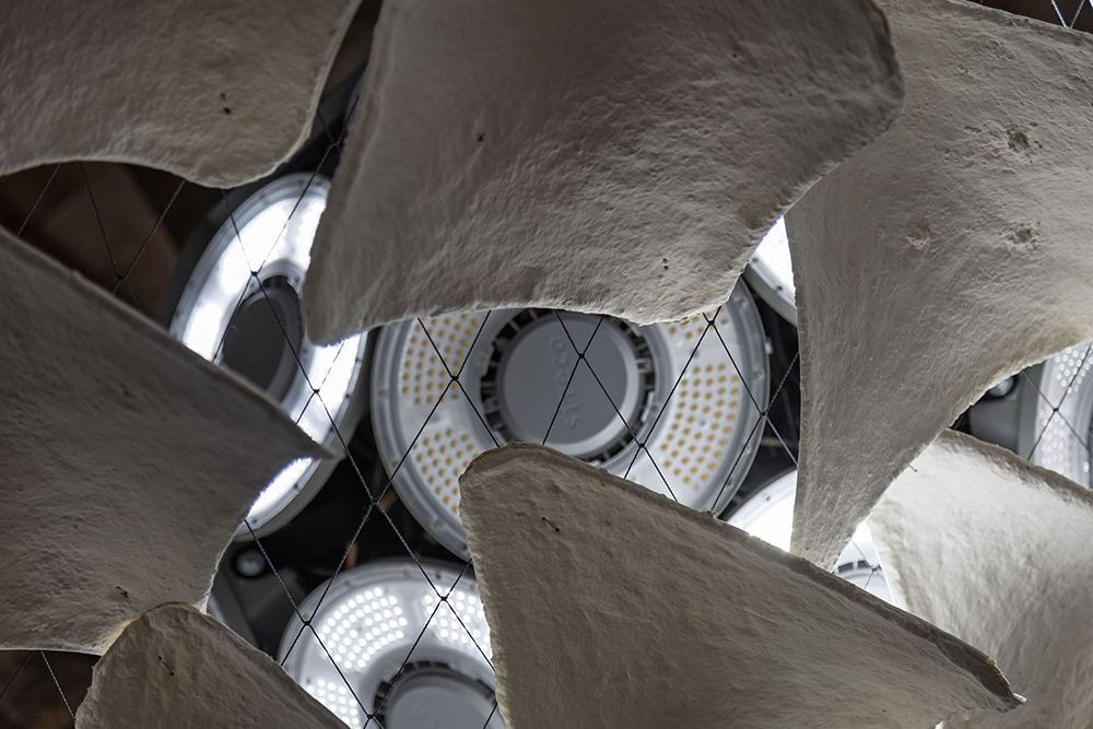 Mycelium structures act as living filters – organic canopies that soften and scatter light, embodying ecological intelligence that allows shadow to grow. Light becomes both subject and medium, exploring the fragile balance between perception, protection and overexposure.