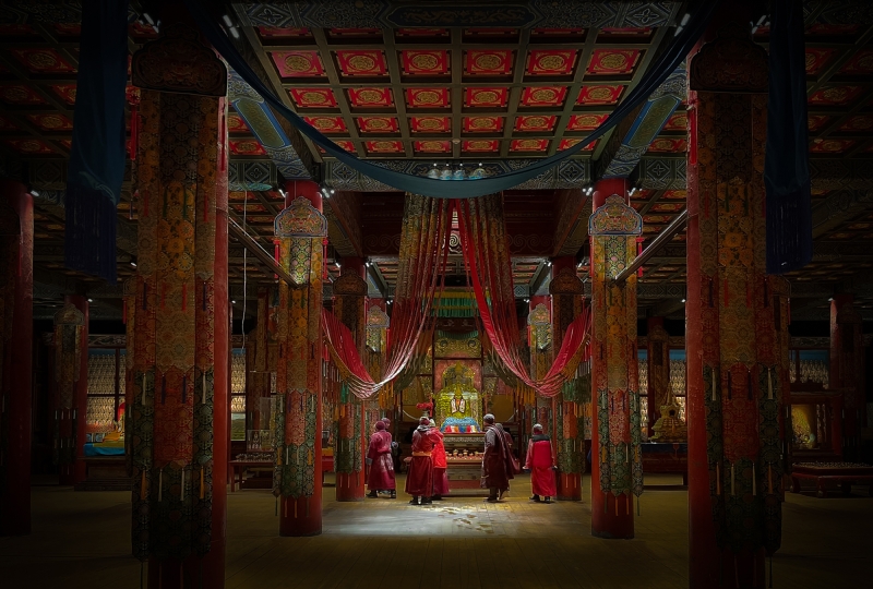 The local culture of light is a variant of the Himalayan Buddhism. Natural light is modeled for limited contrast and drama, dense darkness and soft shadows.