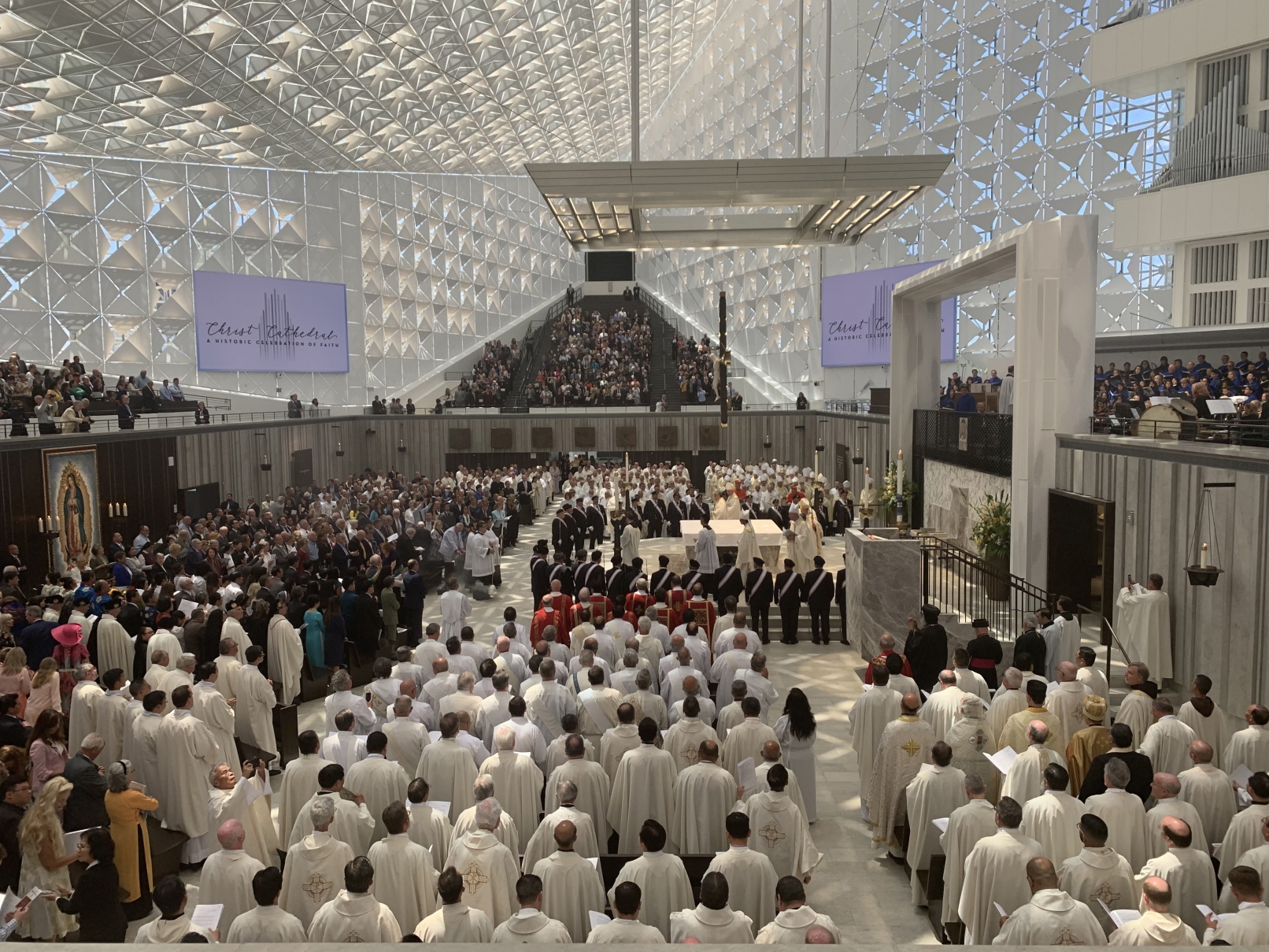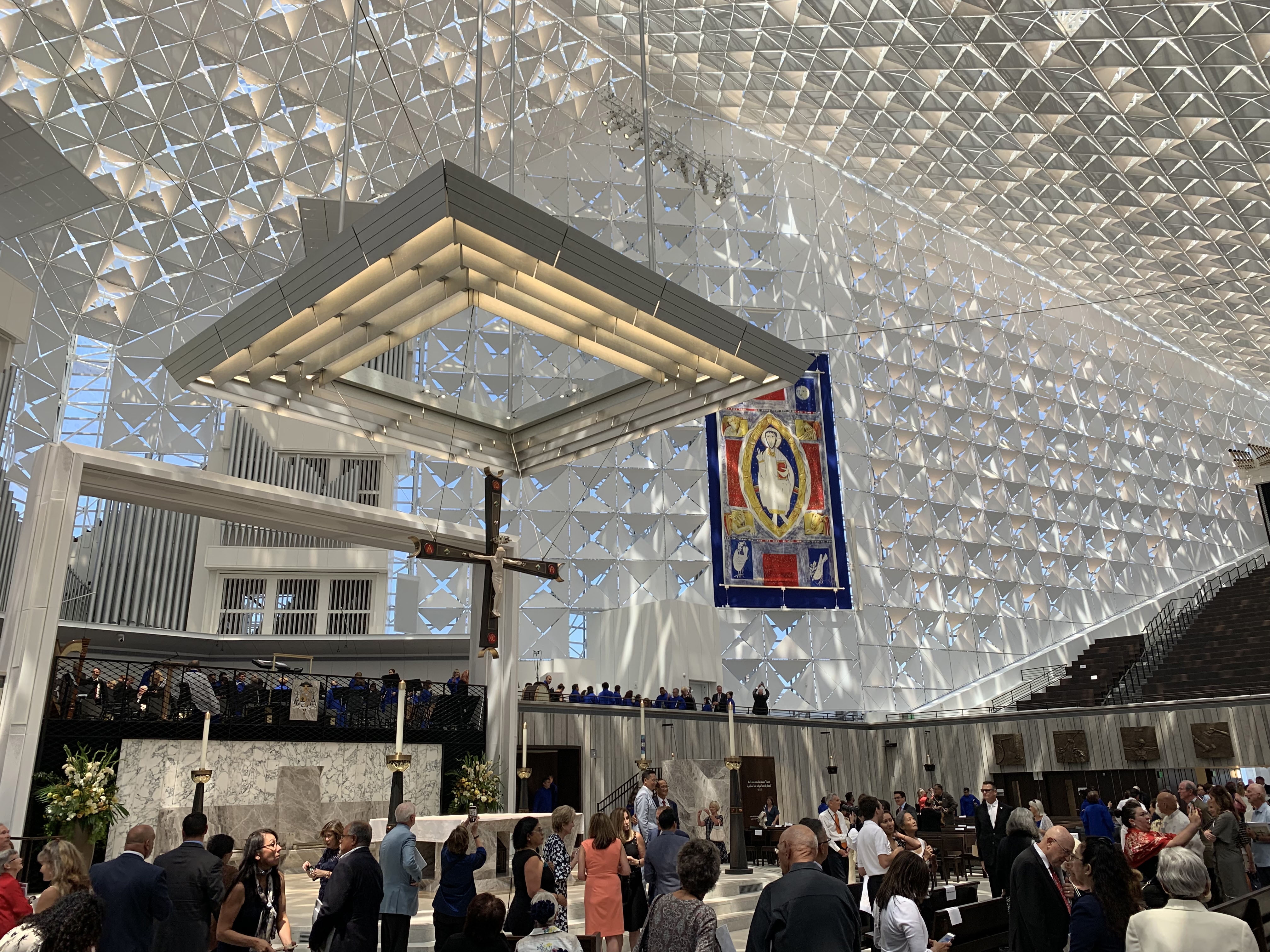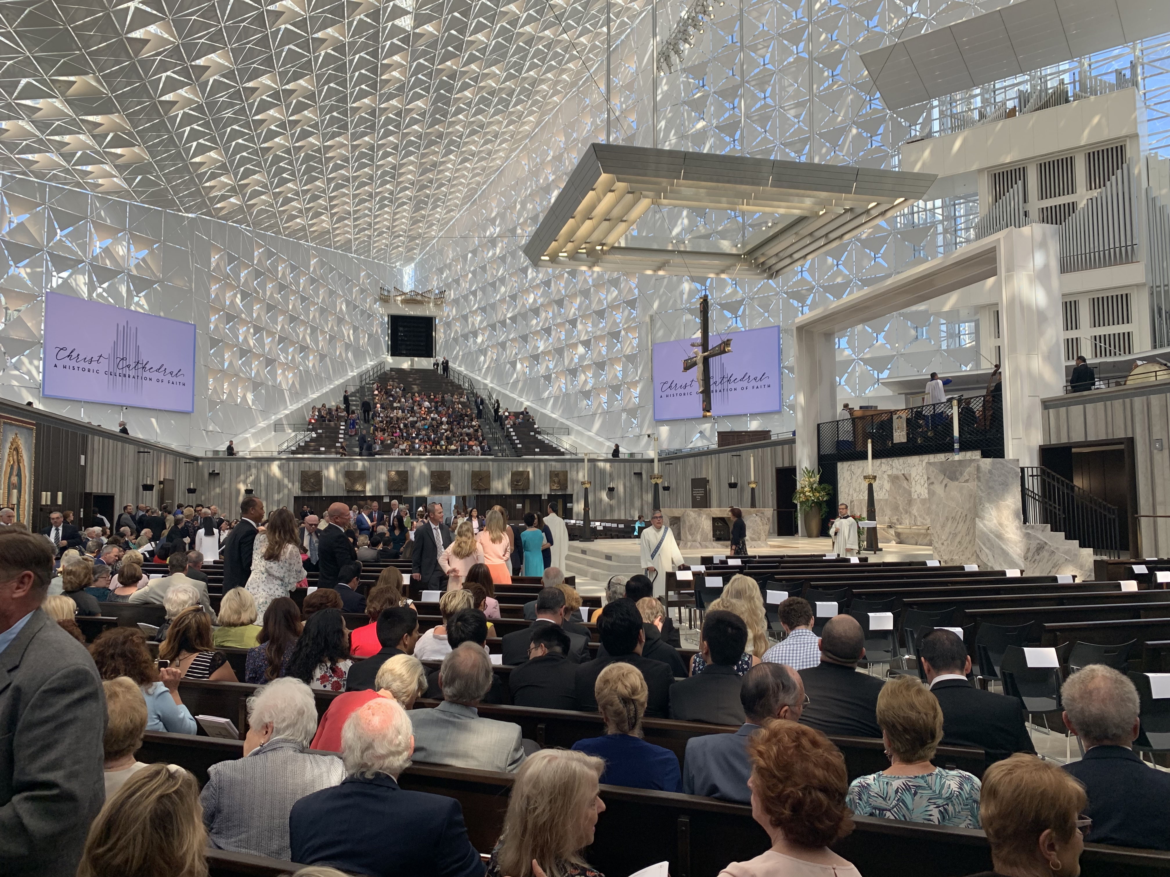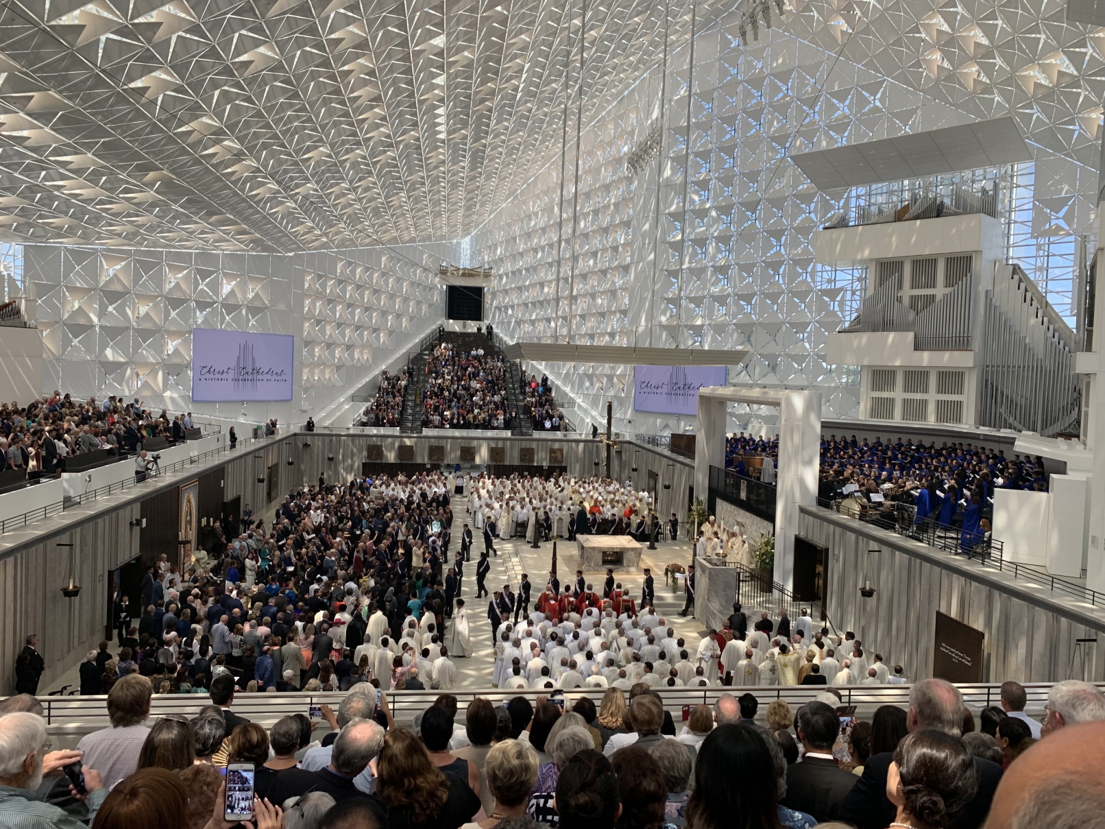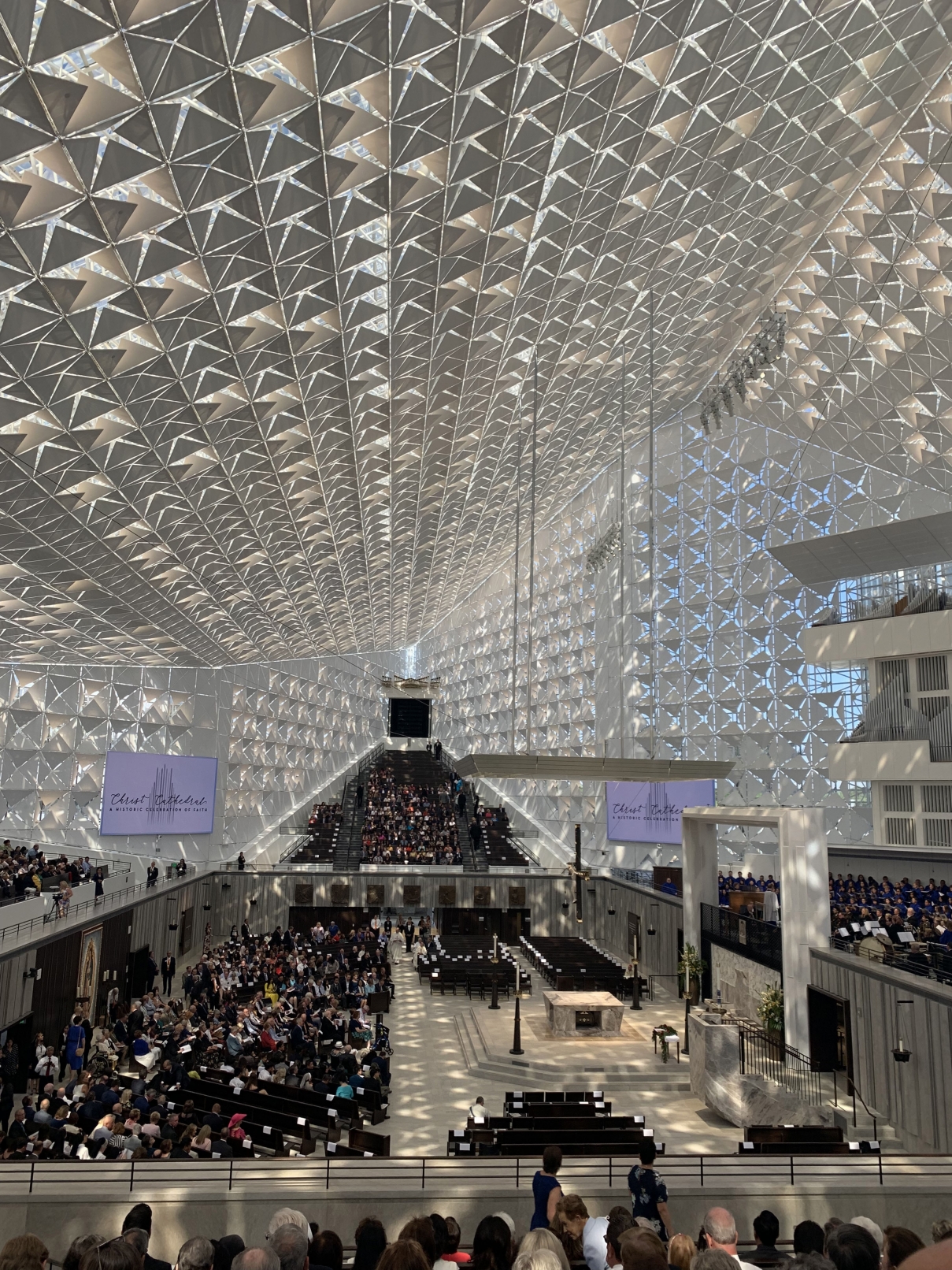 Christ Cathedral re-opened July 2019 after a $77 million renovation which included a mesmerizing daylighting&electric lighting system which blankets the more than 10,000 panes of glass.The project represents a masterful solution that incorporates both lighting design&daylighting on grand scale in an iconic building. Lighting is comprised of multiple layers of light,in low intensities for ambient lighting,& few high intensity spotlights to allow for focused highlighted functions.Lighting control equipment&separate light component systems allow for multiple combinations of lighting functions, hierarchical light levels,&focal points.Direct accent lights provide higher illuminance for key aspects of the worship space with appropriate hierarchy&prominence.Specially designed quatrefoil shades control the sunlight&house the electric light. Arranged in various states of openness,the quatrefoils modulate the light,reduce glare,&create geometric patterns on the cathedral interior.The quatrefoils shade the sun&re-align the focal point for visitors. The lighting system provides a comfortable illumination for congregation&celebrants,which defines a sense of dignity&scale to each sacred space.