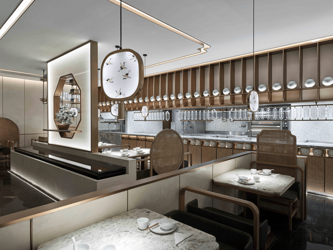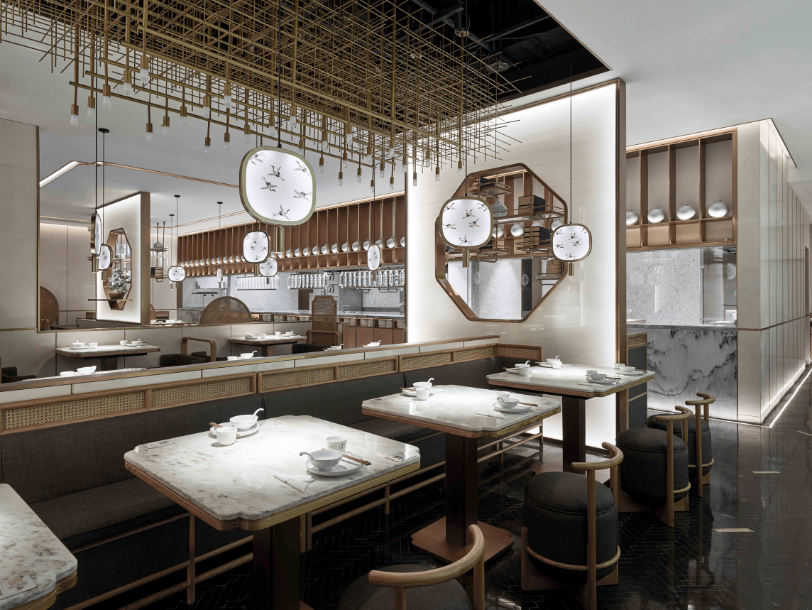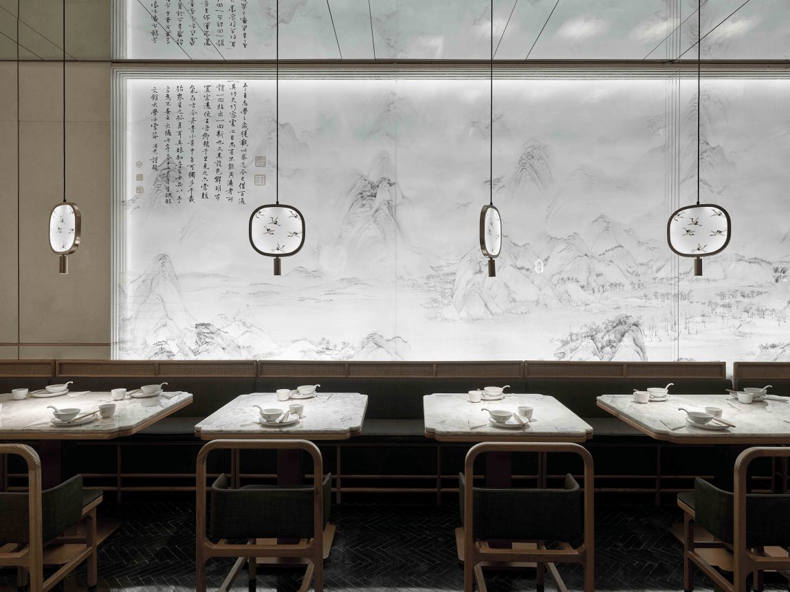 In terms of design, I used a lot of Chinese elements and Chinese paintings to improve the restaurant's ornamental. On the other hand, in the case of using a large number of abnormal lighting, the illumination of desktop 500 Lx and the color rendering above 85 are guaranteed. Because as a restaurant, the most important thing is to ensure the effect of food.