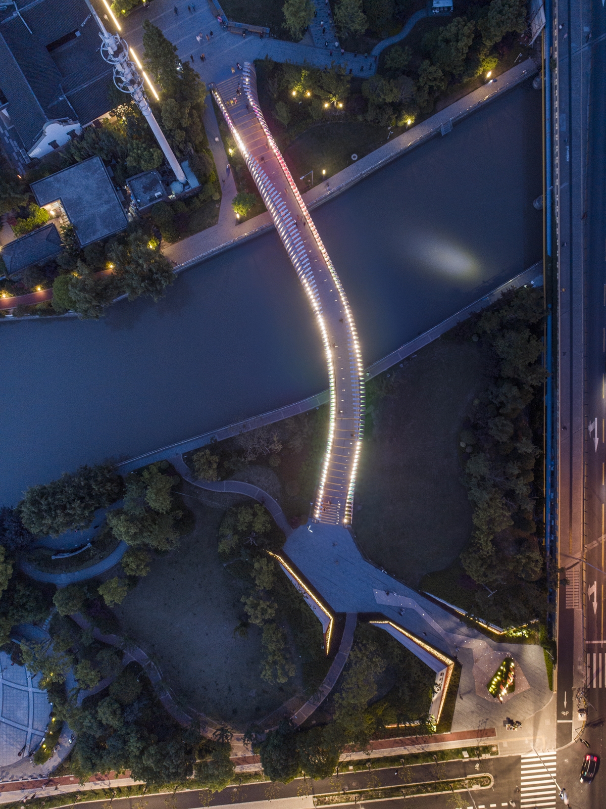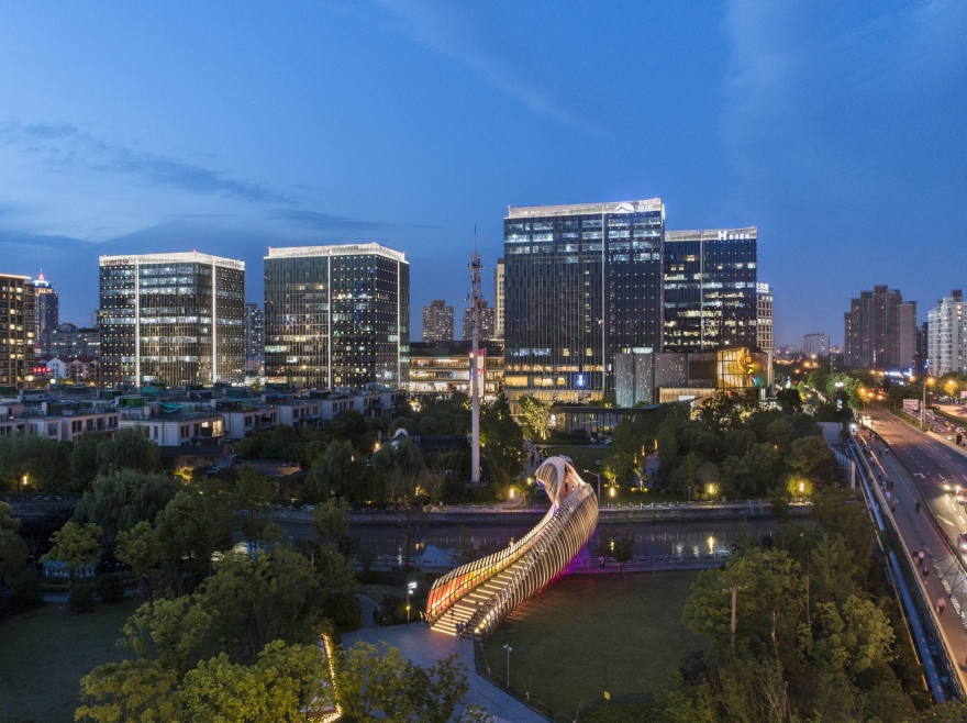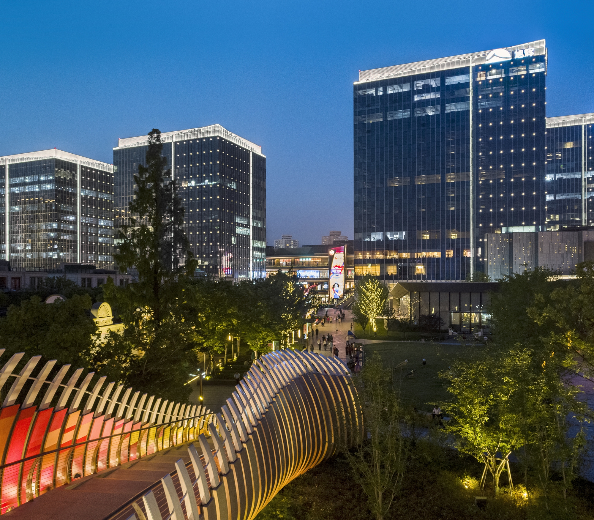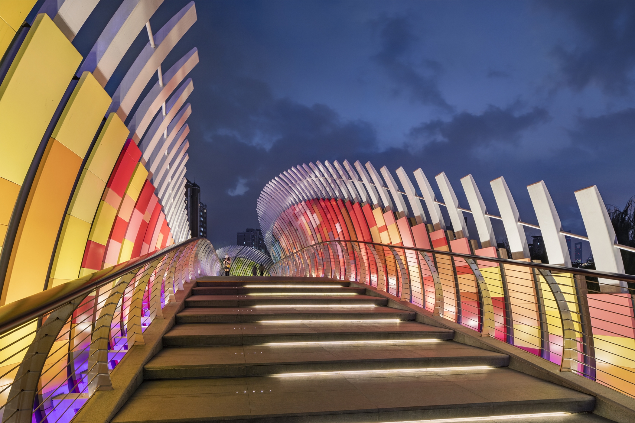 The rainbow bridge is an important entrance to this project.The rainbow bridge is more than 800 meter long, and is the attraction point to the customers coming from the subway station. From the rainbow bridge people can get a clear view of the big media screen of LCM.