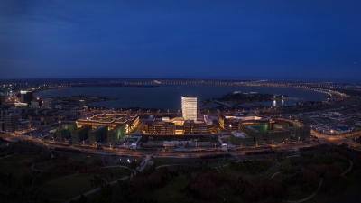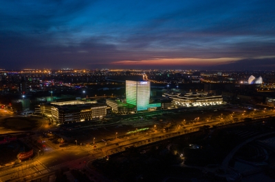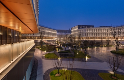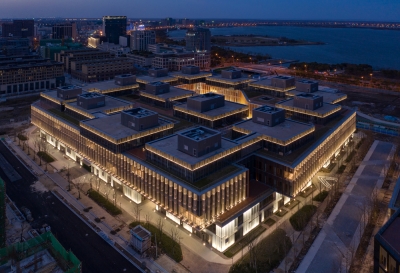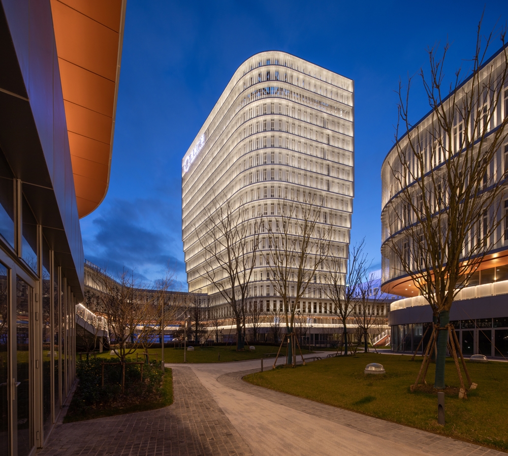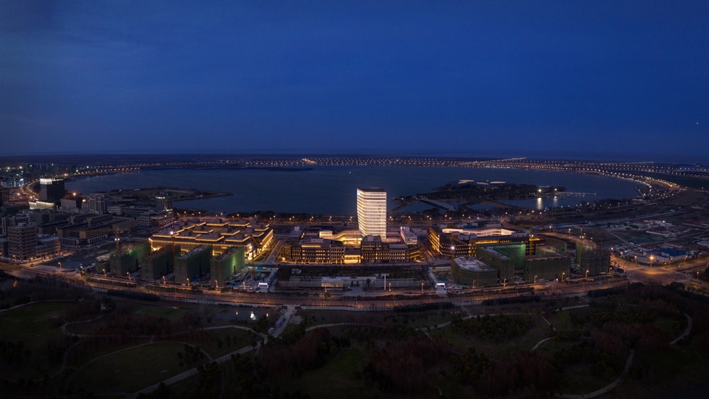 Harbour City Plaza, lying in the core of Lingang Special Area and facing towards the lake, is the first complete urban complex project among 16 blocks in Shanghai Pilot FTZ. The design scheme of project combines multi-function forms, blended urban park, enclosed blocks and courtyards, green and low-carbon combination, and integrated underground spaces.The main tower is the visual core of the whole area. The lighting forms an artistic centripetal force, which radiates and integrated the buildings and urban gardens nearby, presenting an oriental mood of courtyard roaming and a sense of architectural cohesion.The luminaries are designed in high combination with tower shading system. It illuminates the facade in a subtle way as thin as cicada wing, getting a delicate aurora dynamic lighting effect. At night, it presents an unparalleled visual appeal together with lighting of huge inner courtyard elevation. Lighting through the glass at the bottom of the podium injects the site with a sense of light and future.The lighting control system and strict anti-glare technology are adopted to make a balance of various lighting scenes and energy consumption.