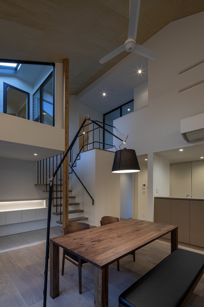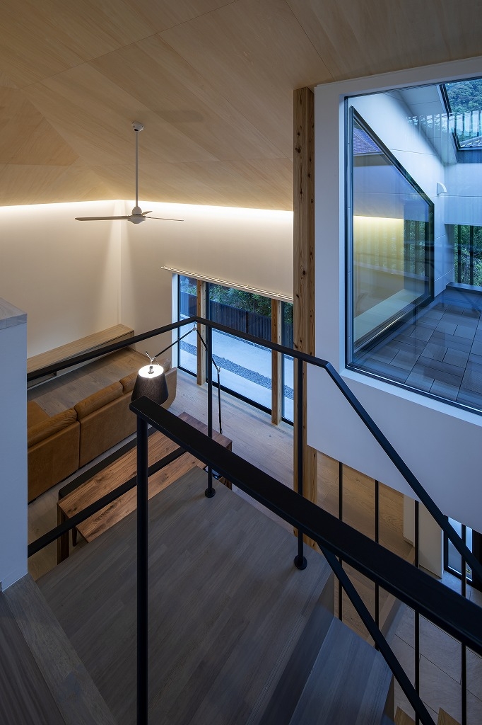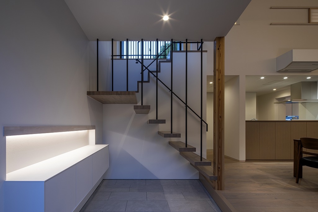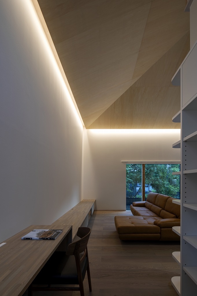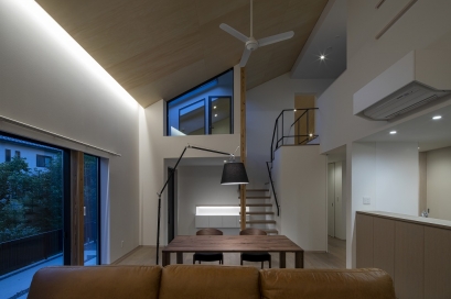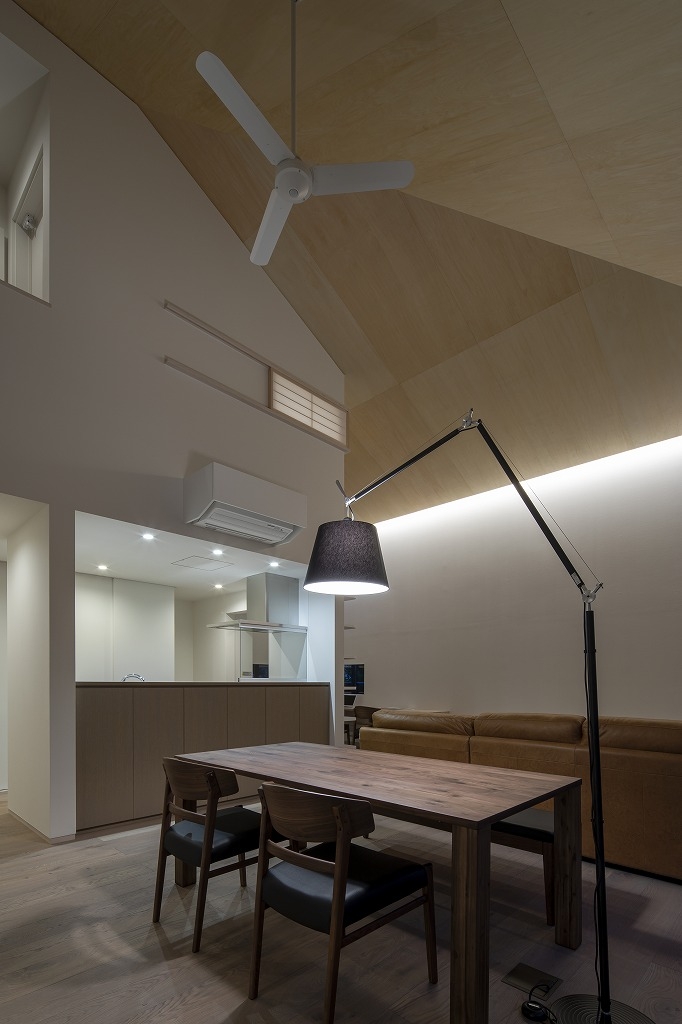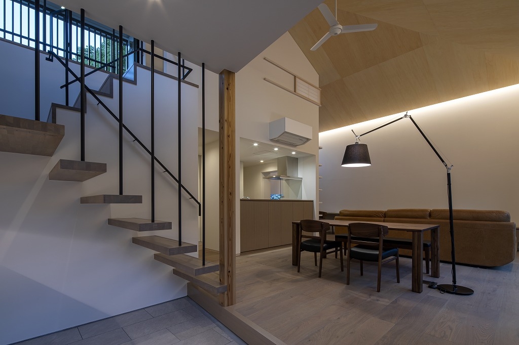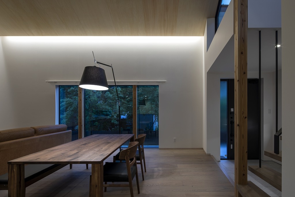 Yokoyama Residence was built near The Kintai Bridge,(one of Japan's three famous bridges) surrounded by the surrounding mountains, which is a castle town in Iwakuni City, Yamaguchi Prefecture. The design of the wooden building blends with the surrounding nature and the neighborhood, and the ceiling has a beautiful finish of natural materials. Therefore, if a hole is made in the ceiling with a lighting device such as a downlight, the beautiful ceiling will be spoiled. Therefore, the ceiling lighting is limited to indirect light from the wall, and a sense of brightness is obtained by visual illuminance. In addition, we considered that there is no stress due to difficulty in viewing so that certain brightness can be obtained in areas that require brightness, such as kitchens and dining areas. Especially in dining, there is usually a problem that the table layout cannot be moved when lighting fixtures are distributed from the ceiling with pendants. Therefore, the table can be moved freely by using the floor stand. I think that the place where people live must be a comfortable space and to spend more richly that is free from daily stress and makes you want to go home anytime.