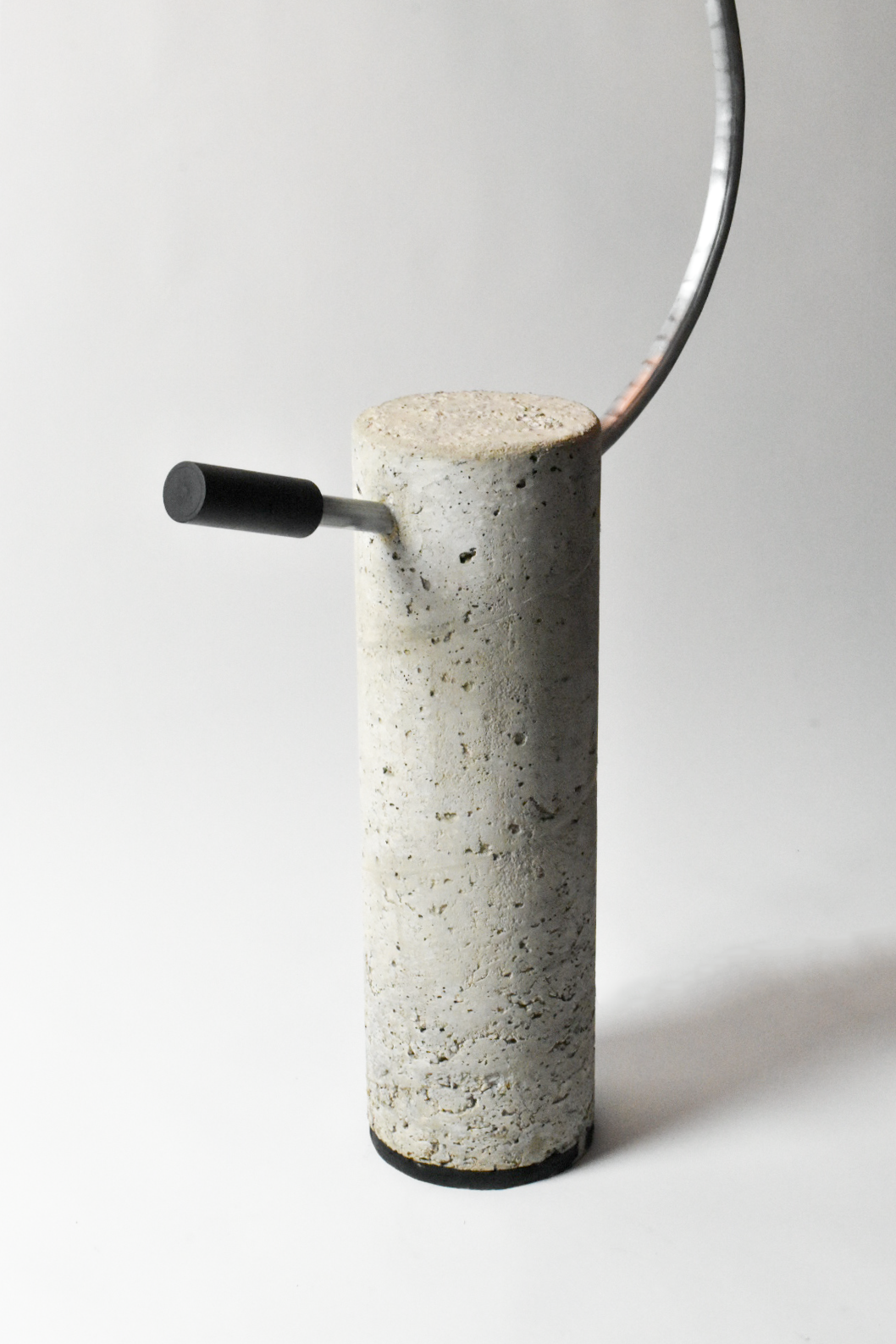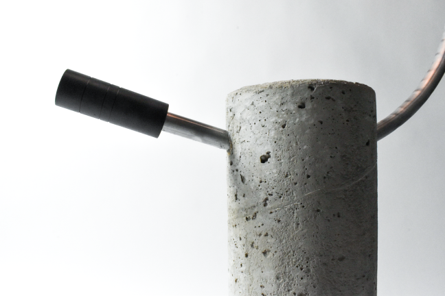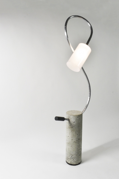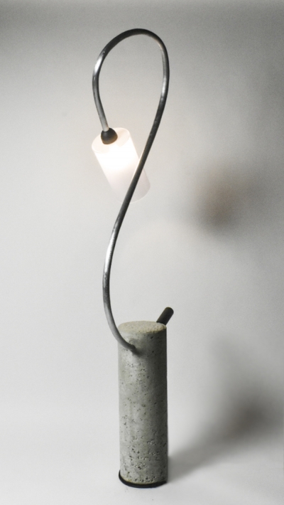 A tribute to modern construction, SEVEN is constructed of concrete, steel, and glass. The delicate, curved metal is consumed by a blunt chunk of concrete in an interesting juxtaposition of masculine and feminine forms. Designed to emit ambient light throughout a room, SEVEN is the perfect statement lamp to illuminate a modern environment.