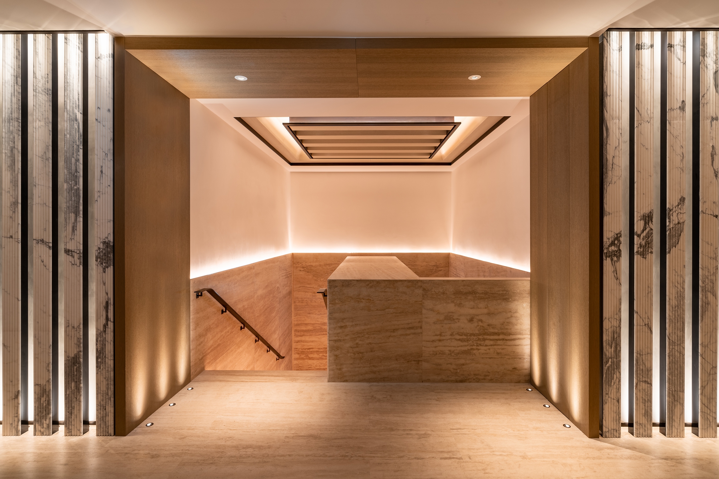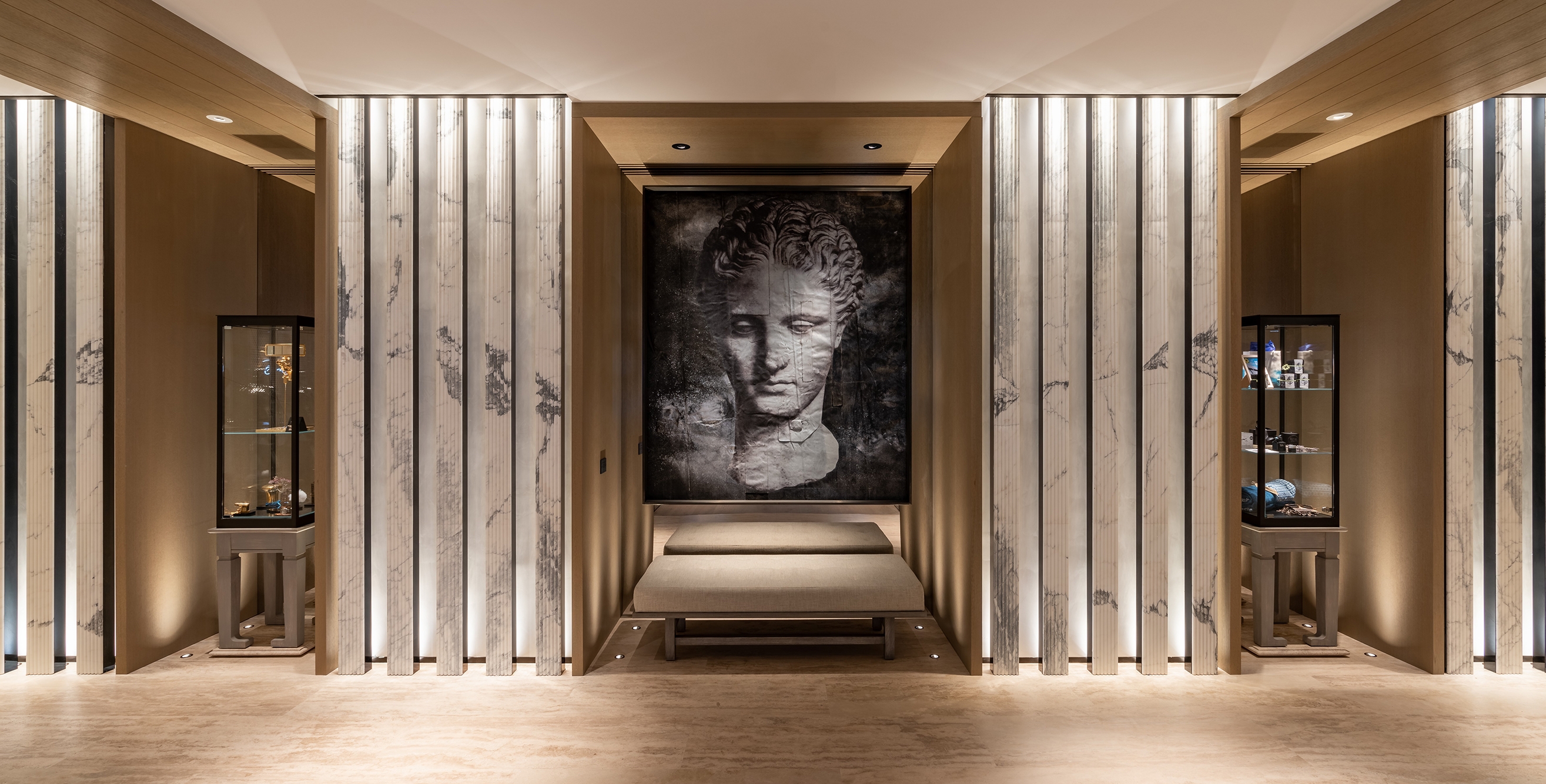 Arion’s interior is soft and fresh, and the lighting embraces a distinctly sophisticated atmosphere. The palette of finishes uses sandy hues while the lighting adopts a minimal approach with all elements integrated within both the joinery and architectural details of the building’s envelope. The newly lit façade provides a balanced backdrop to the external presentation.
