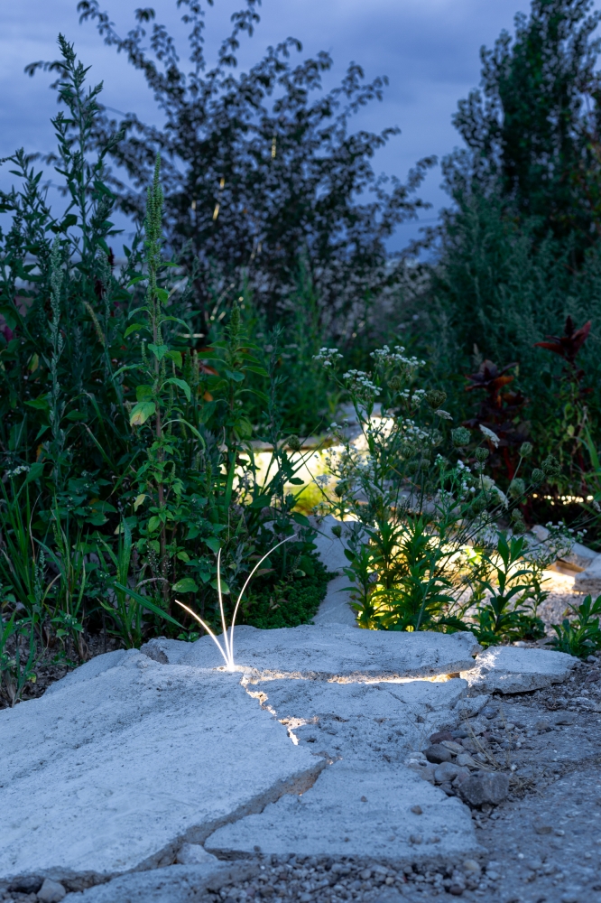 The ground is broken, three large glowing cracks, allow visitors to enter. Where they intersect, the depth of the crevice creates seats, encouraging visitors to gather and take in the experience. Nestled at the heart of the installation, flashing light ‘eruptions’ synchronize with atmospheric sound effects, simulating the opening of the earth.