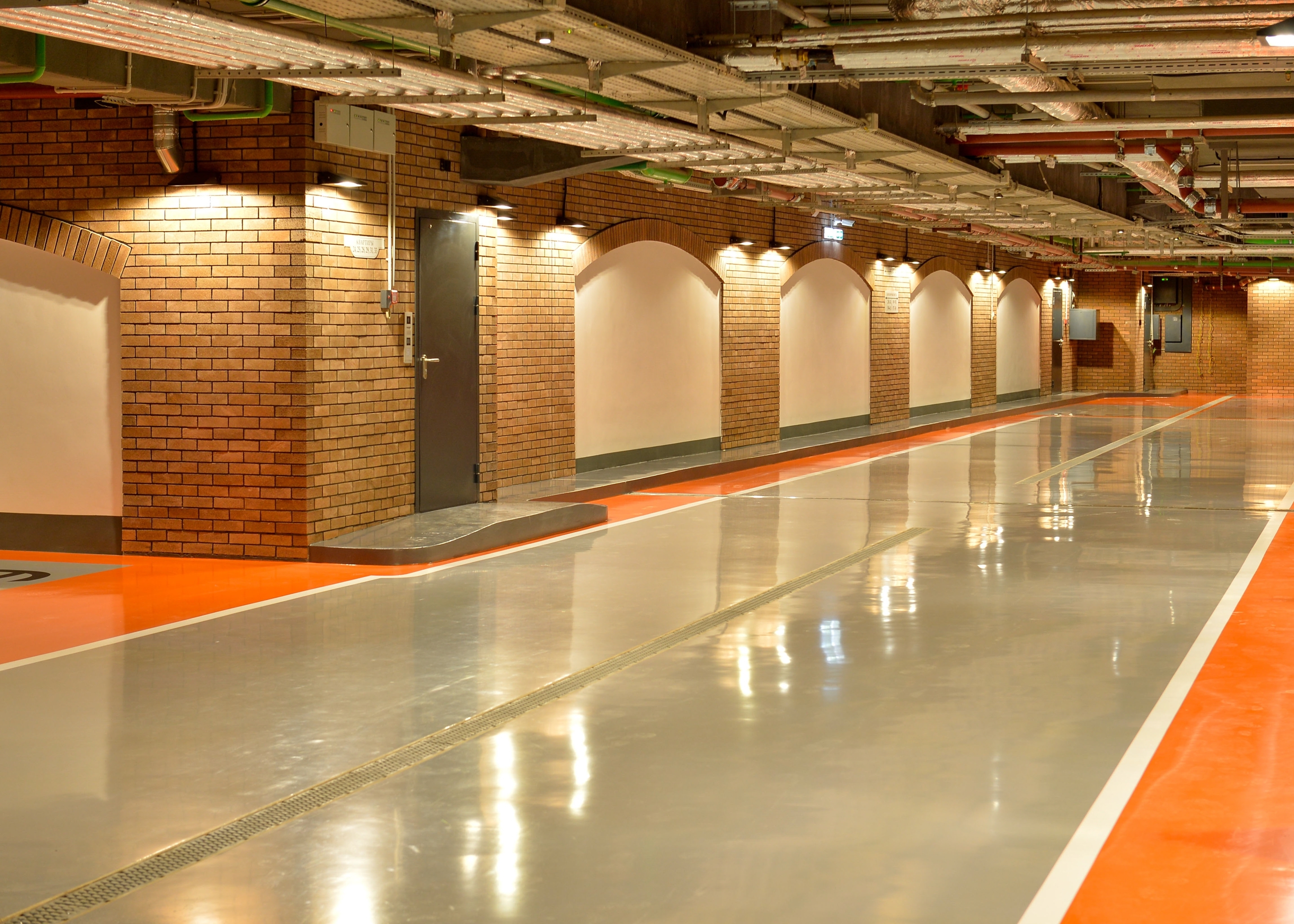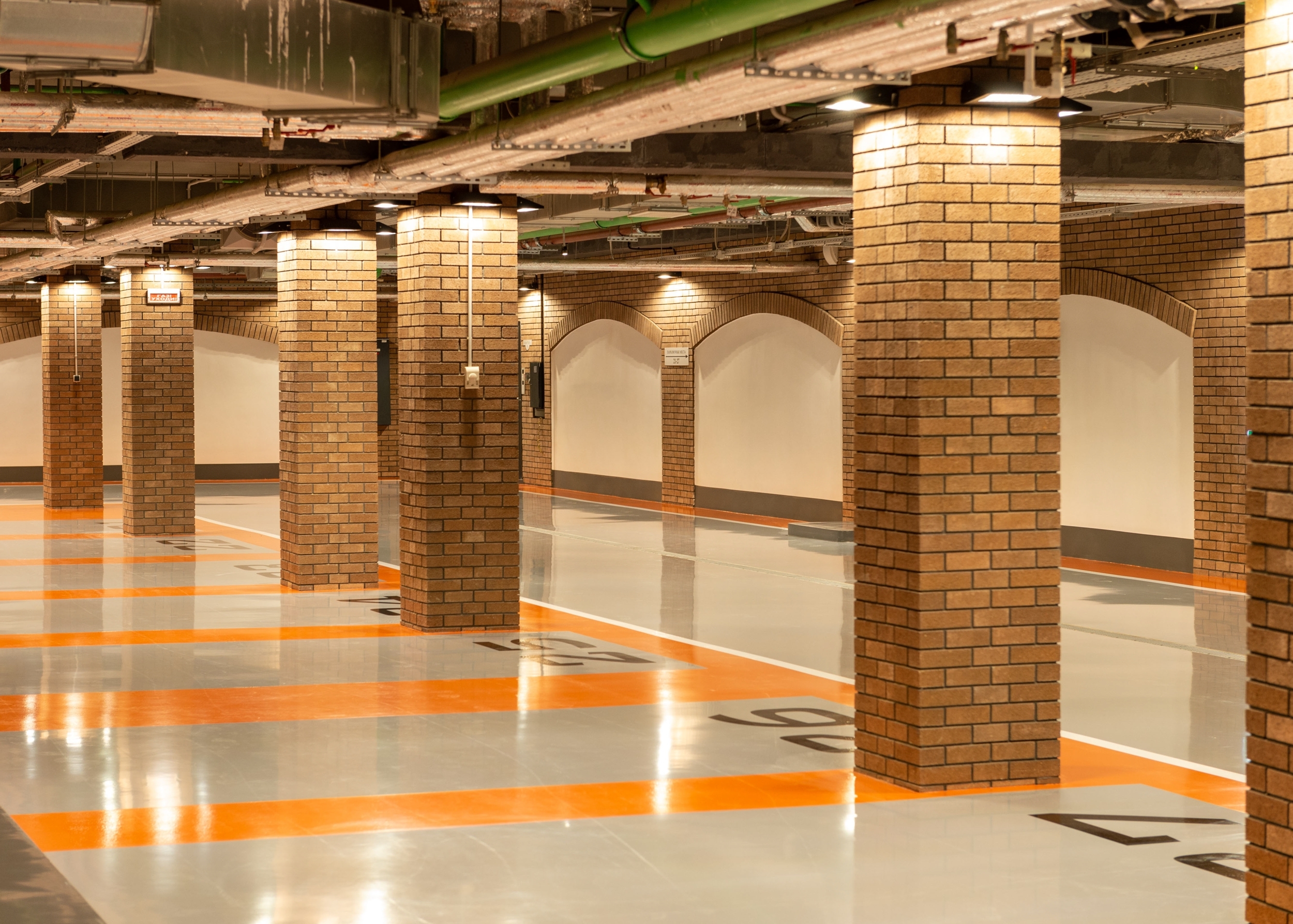 Traditionally, underground parkings are designed with the same-type lighting by using ceiling lamps, producing mostly a linear light, which does not provide for any design approach to the object as a whole. The main architect of the project has set a target to develop a lighting system in compliance with the general concept and design of the residential complex, taking into account the architectural features of the premises, while the use of ceiling lighting was categorically rejected.