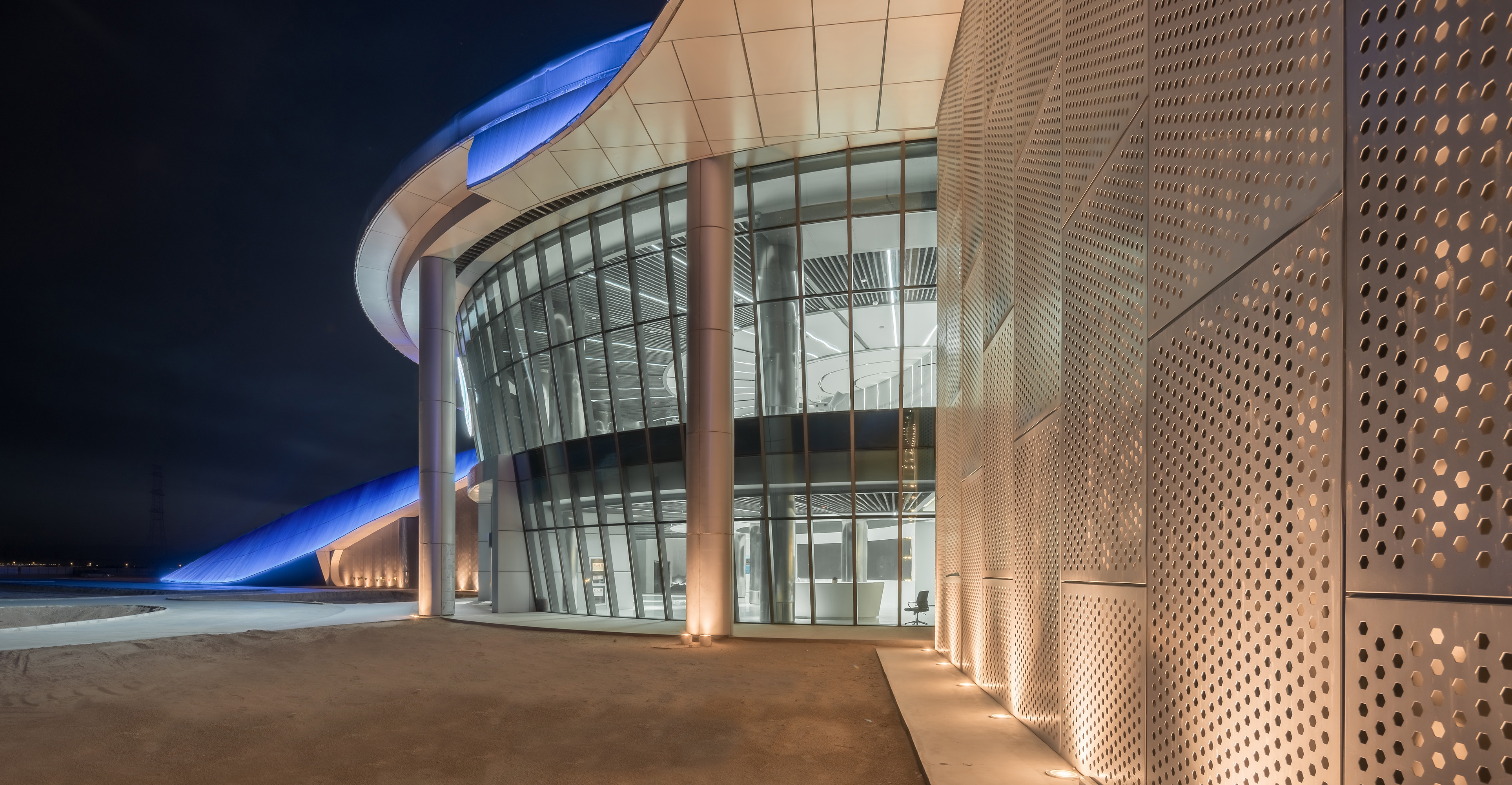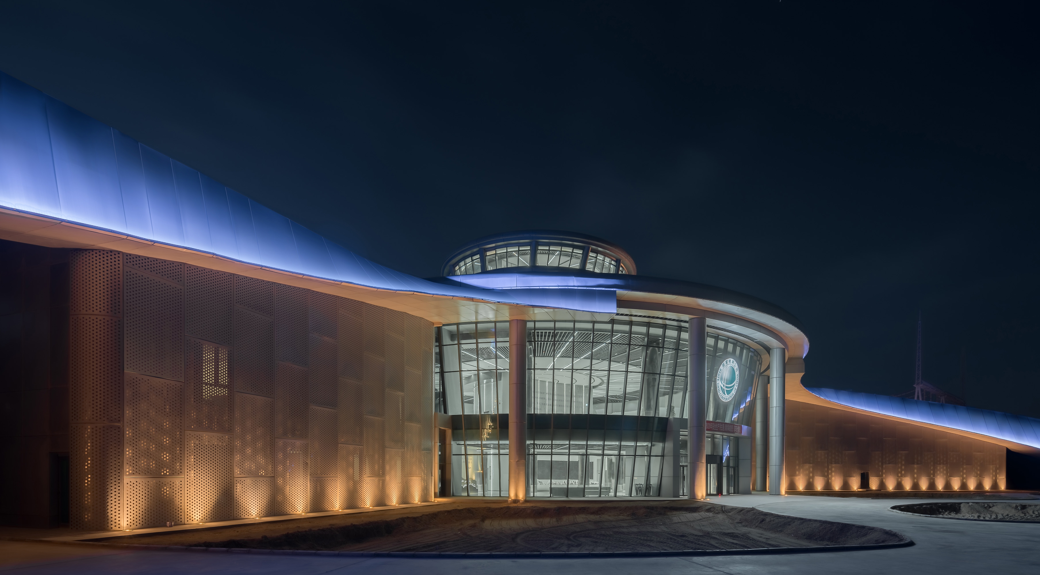 Against the starry sky in the vast Gobi night, we chose blue linear light to show this futuristic building. We hope that through the rendering of night lights, the features of the building will be more in line with thestyle of this field. This is also unique to our design. After accurately interpreting the environment and architecture, it proposes a precise lighting solution that harmonizes the building with the environment.