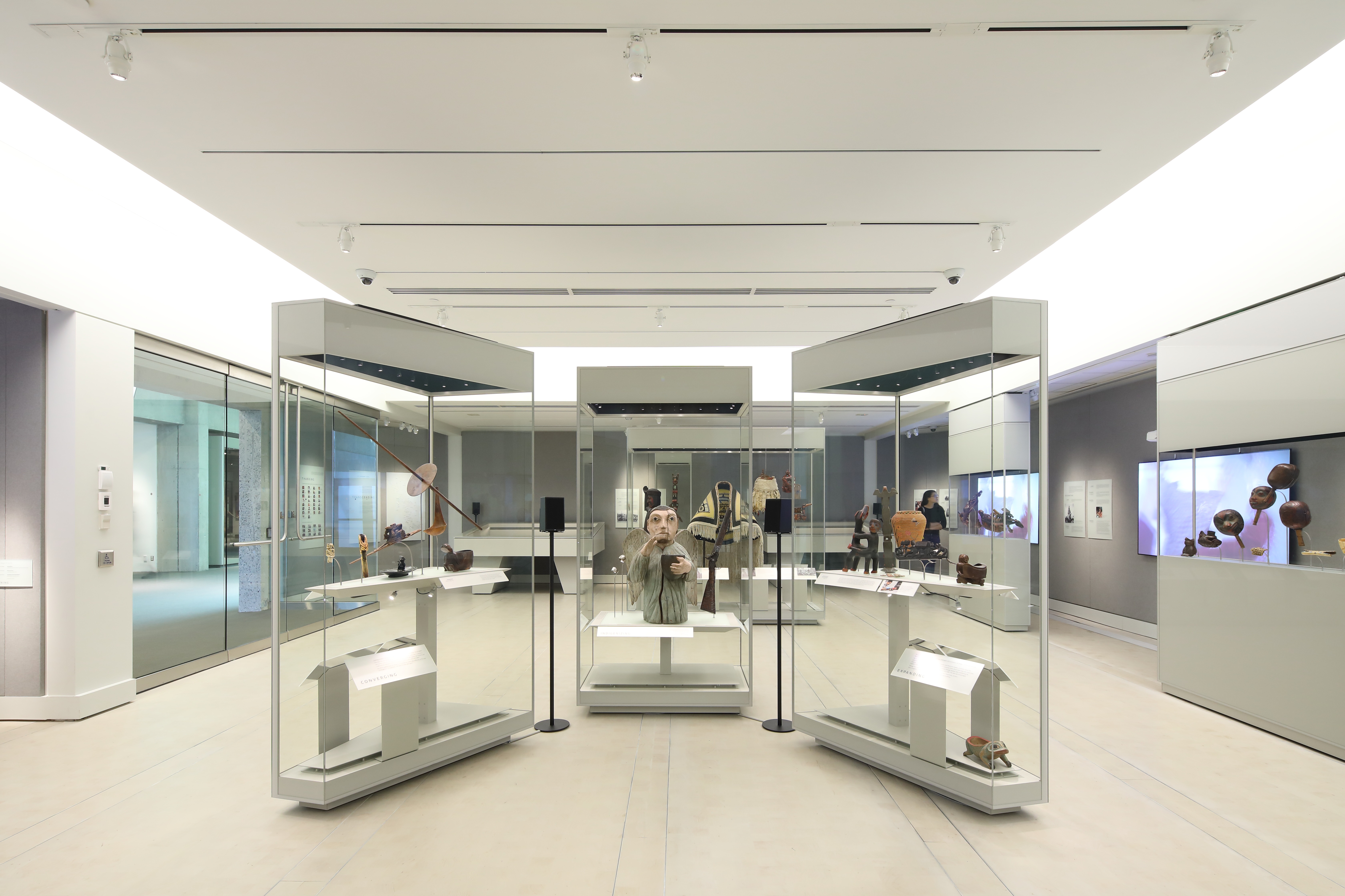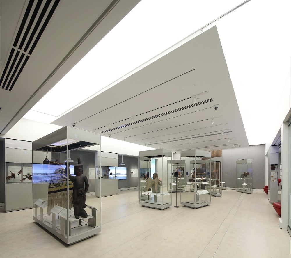 The Museum of Anthropology required transforming a dark space into a dynamic environment for a new gallery. With only one window, the space had limited natural light and required a unique approach. A ceiling-mounted softbox lighting system was created that forms a component of the architectural design and emulates the colour temperature of the daylight outside the gallery. Continuously changing lighting provides a different perspective on the exhibit, depending on the time of day and outdoor conditions, allowing visitors to see the Indigenous artifacts as they are intended to be experienced in an exterior setting.