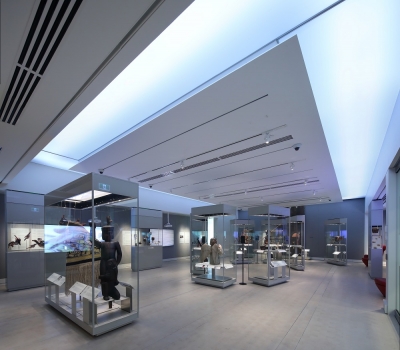 This first-of-its-kind approach required a custom sensor to detect the colour temperature and intensity of the exterior daylight. This information is sent to the interior lighting controls every three minutes. On a bright, summer day, the room is lit on its brightest setting while a cloudy day reduces the intensity inside. The luminaries can also be overridden manually to ensure flexibility. The luminous ceiling panel makes the room feel larger and visitors experience a level of immersion, forgetting they are standing in an interior gallery.