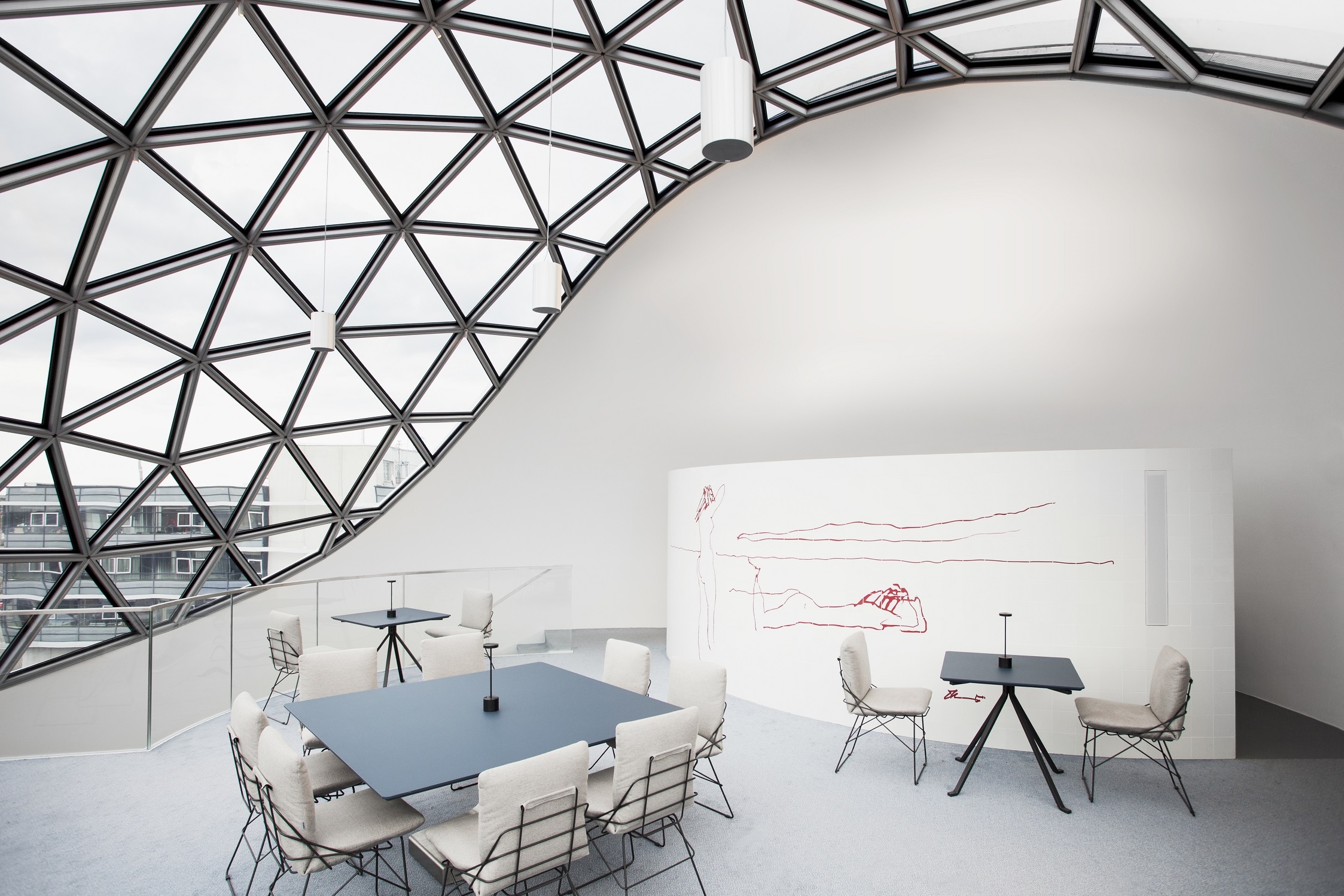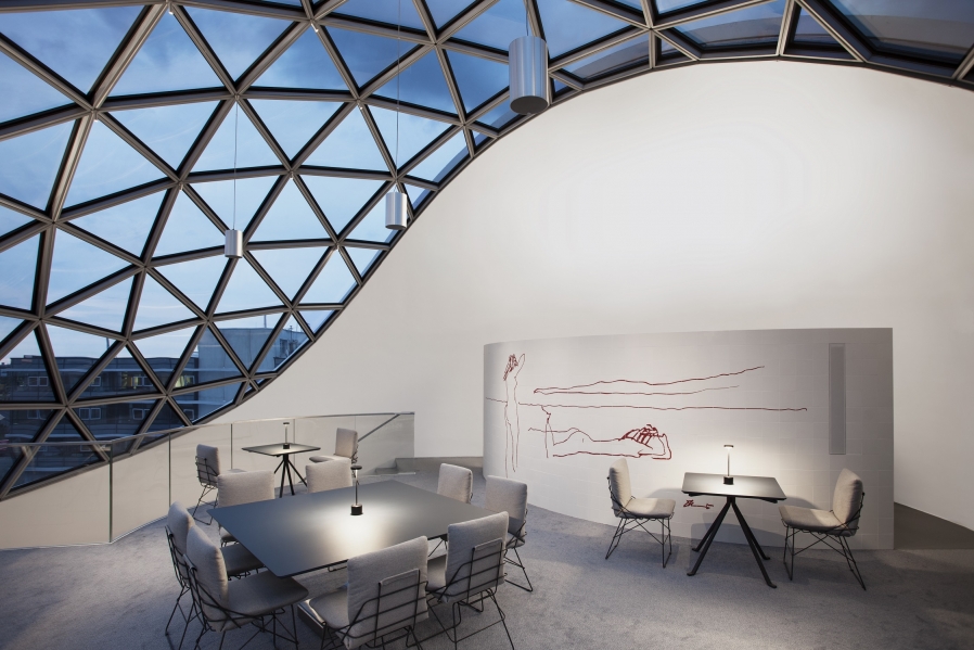 After seven years of design and construction, and intensive coordination between the Brazilian office in Rio de Janeiro, the local architects, and a committed client, the 2011 design by Oscar Niemeyer has become a reality in Leipzig in June 2020. Niemeyer is a master of curves. This is exactly what the lighting design traces inside and out of the Oscar Niemeyer Sphere. The fine curves are emphasized with appropriate light and thus the concrete gets the lightness for which the architect is known. At the same time, an interior atmosphere is created to experience and enjoy this extraordinary ambience.