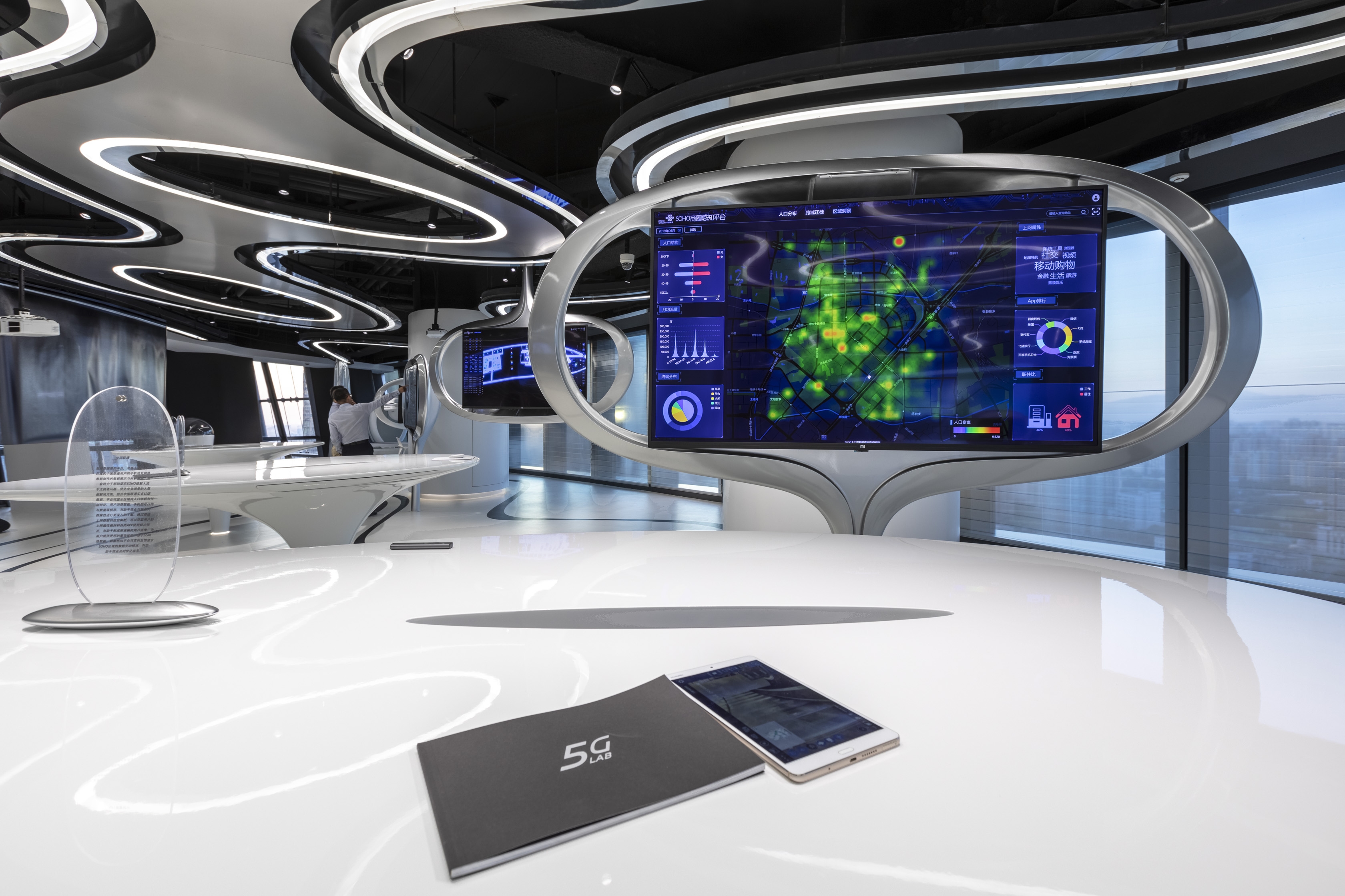 SOHO 5G laboratory is located in Beijing Leeza SOHO. Pan Shiyi, chairman of SOHO China entrusted ZHA, a world-famous design office, to design it as an integrated exhibition space for displaying and discussing 5G technology and product application.