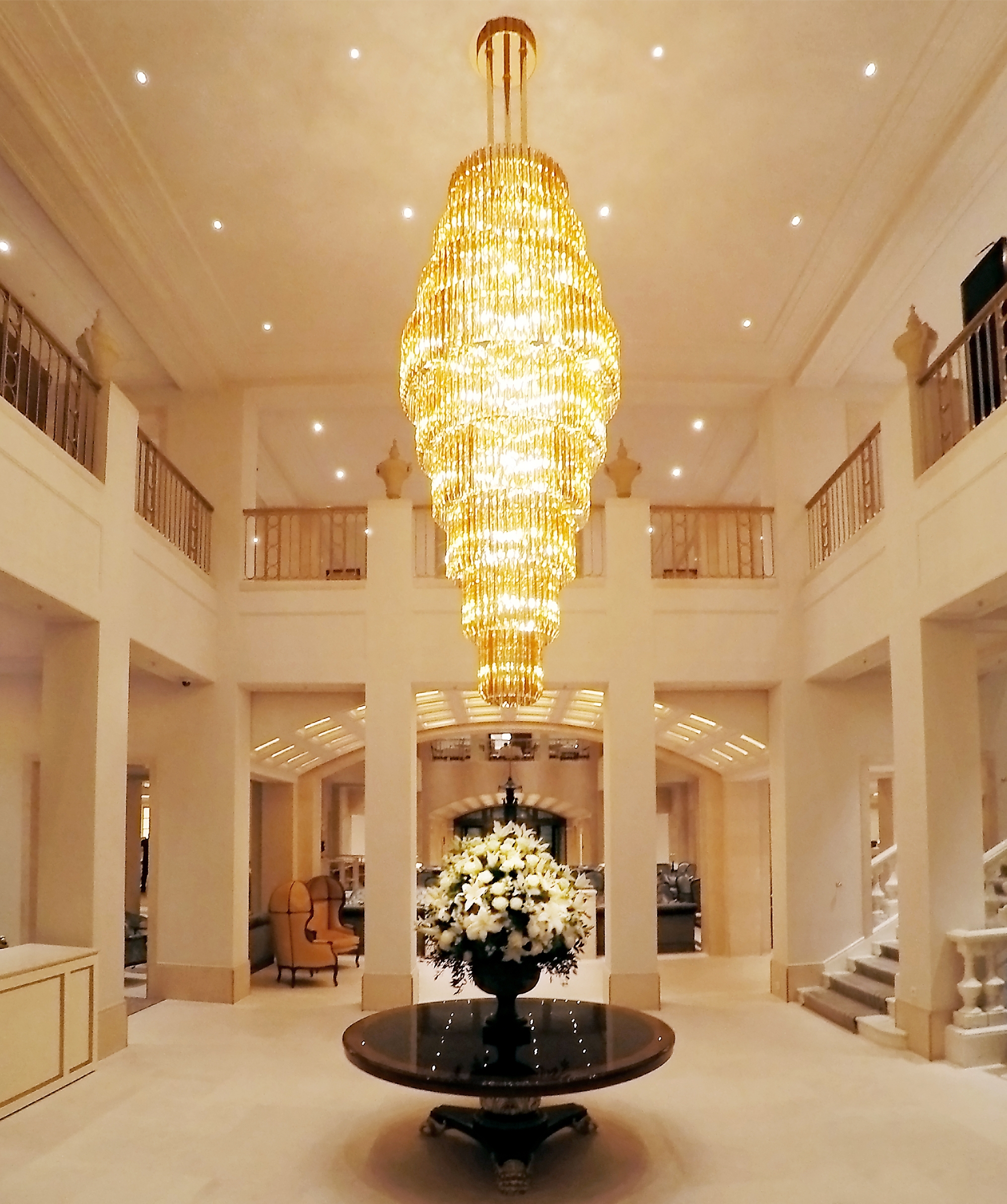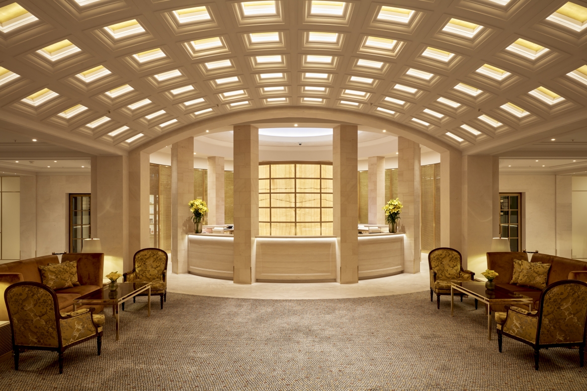 In accordance with the surfaces and the colour concept for the lobby with warm gold and silver tones, a lighting in a warm light colour and excellent colour rendition was chosen to naturally emphasise the materials and colours of the interior.