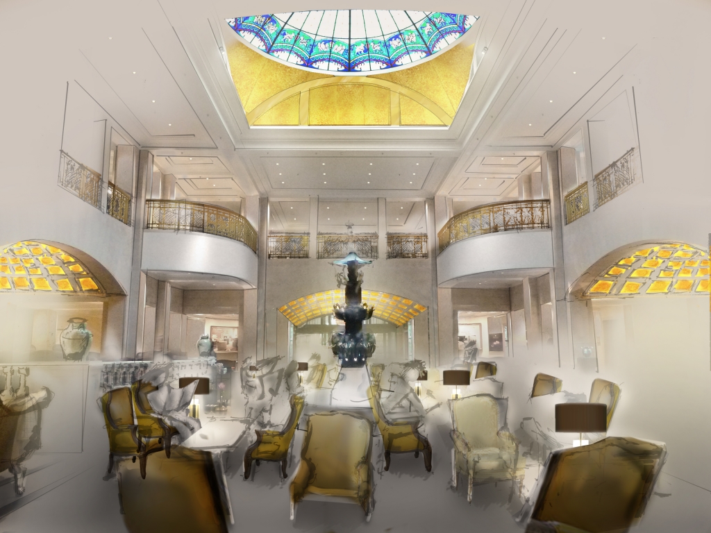 The hotel's lobby and reception areas were extensively renovated in 2016 with an investment of 6 million euros. In the course of this renovation, the lighting of the rebuilt hotel was also completely updated. The aim of the new lighting design was to present the spatial hierarchies of the lobby and adjacent areas in light, thereby creating a visual calm and a clear spatial structure that allowed a generous overall spatial effect to be created.