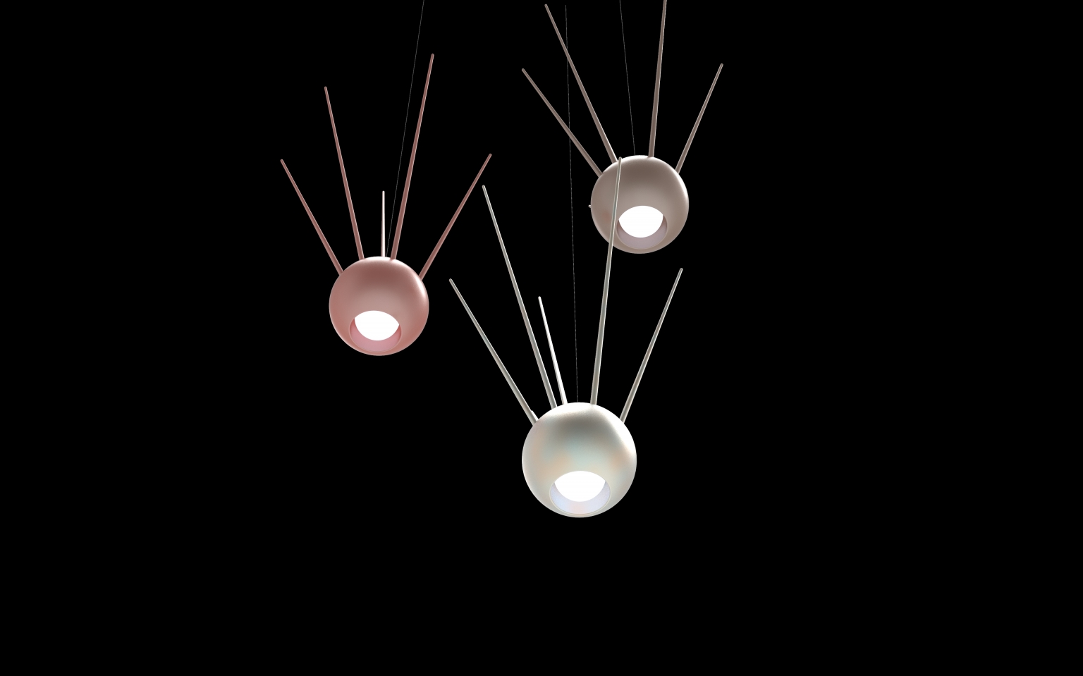 Comet 2020's nucleus is embodied as a lighting source, and its tail is rendered as spiky wings to illustrate kinetic actions. Fibreglass is utilized for the fixture, and a LED bulb for the lighting source. Electro metallic painting is applied to its skin to reflect the icy nature of comets. The spiky wings can be detachable from the nucleus for easier handling and distribution.