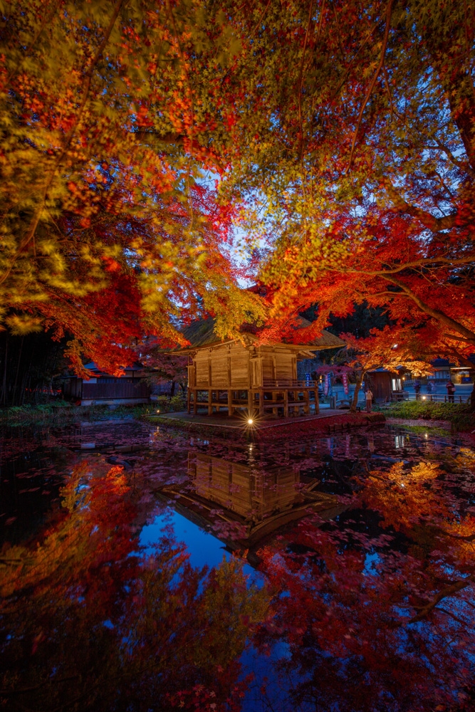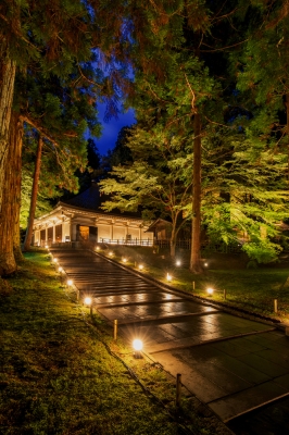 The exterior lighting of Chuson-ji Temple was designed according to the autumn leaves season.
