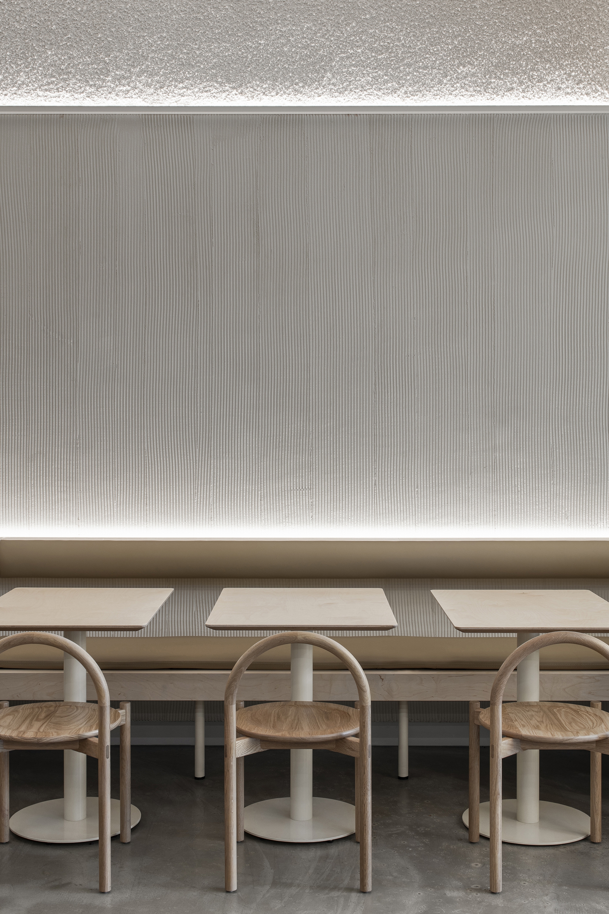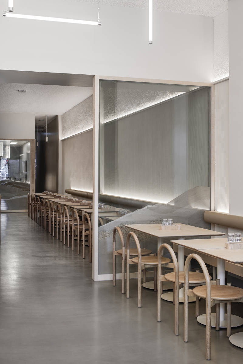 Gentle layered light reminds one of Japanese snow, creating overall a very serene & inviting dining experience.