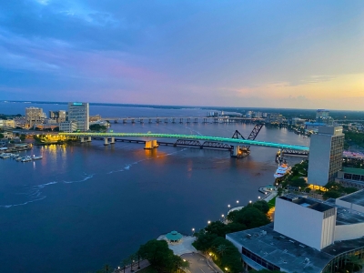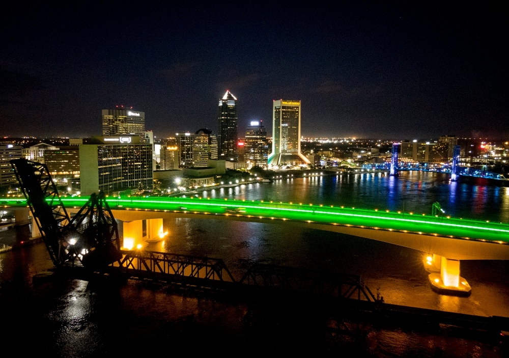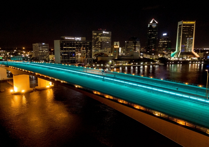The Acosta Bridge, located in the heart of Downtown Jacksonville is not only a visual focal point but a necessity for daily commuters. Spanning six lanes it includes two sidewalks as well as two monorail tracks running through the middle to accommodate the Jacksonville Skyway. In addition, on Independence Day, the bridge has been the launch pad for the fireworks that light up Downtown and the city’s South Bank.