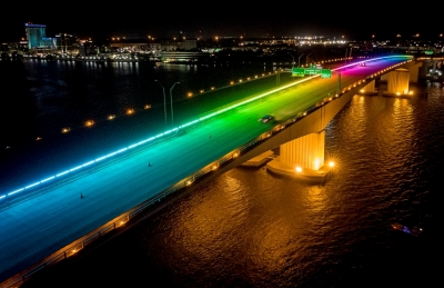 This year, the bright accents of red, white and blue will again illuminate from the Acosta Bridge. But this new light show will remain long after the spent firework debris is cleaned up.