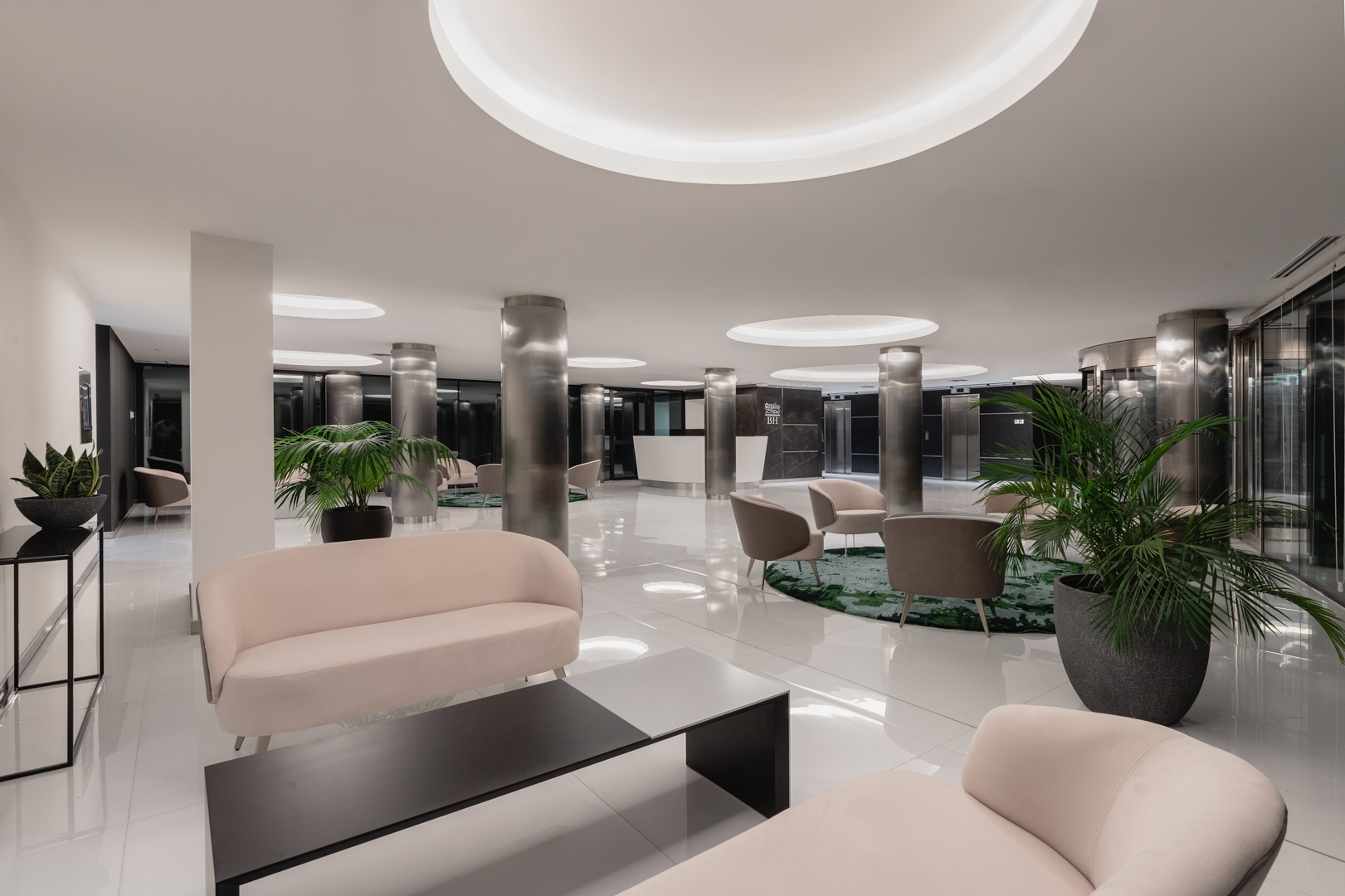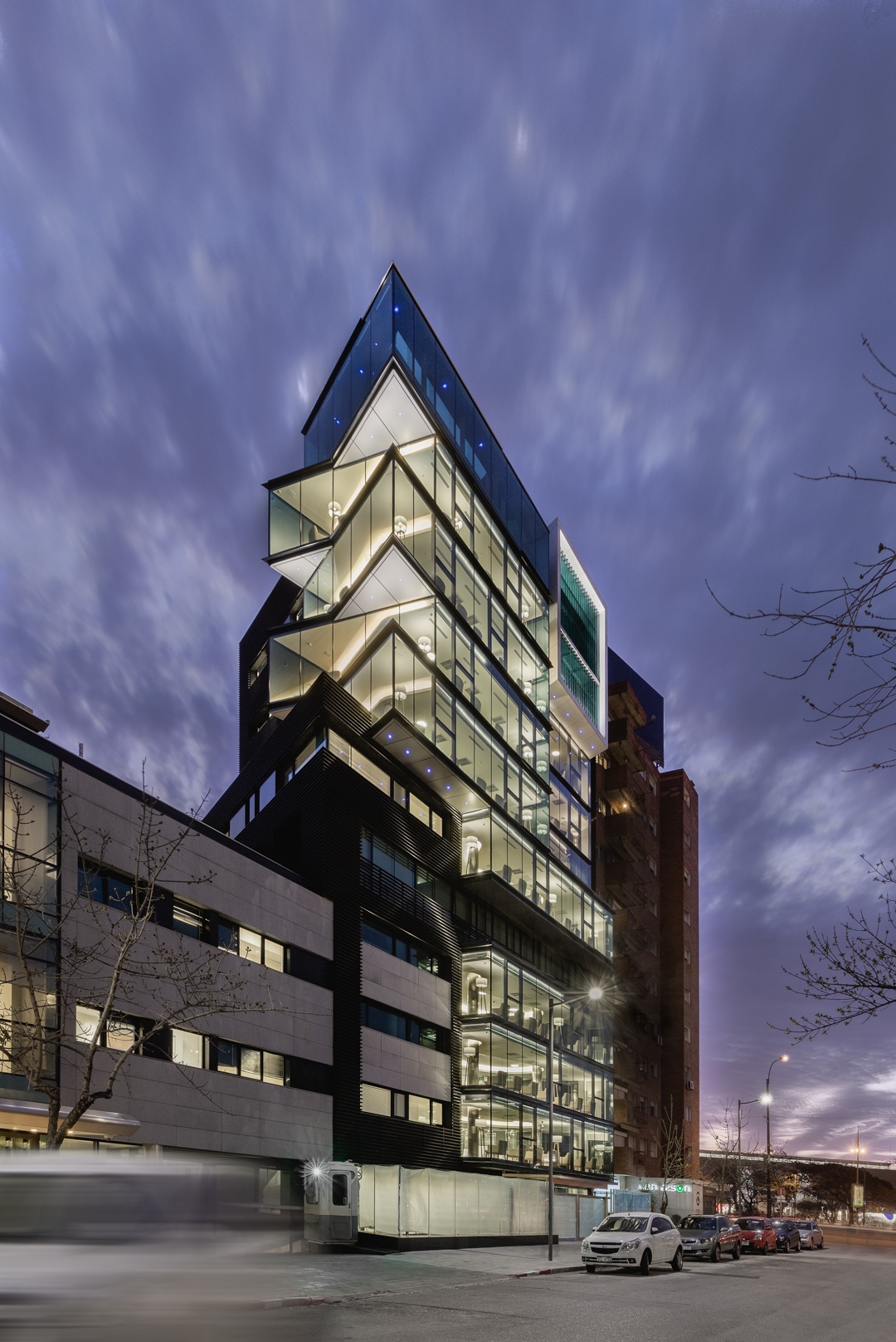 Human experience is constantly affected by built environments, which play a key role in people’s frame of mind. This new building raised by the British Hospital, aims to achieve through artificial and natural lighting, an integral healthcare environment. The creative trigger which pulled the lighting concept off, was to create a welcoming atmosphere able to affect positively over the patients healing. Working out on the whole with the glazed facade, interior and exterior lighting merge creating not only an impact on the patients, but also a contribution to the city nightlife. The facade transparency, reveals almost the entire lighting design project. Backlights, floor lamps and cove lighting, laid out through the whole building, create a cozy mood by spreading indirect light. The latter draws up an outline which makes the facade lighting an even more engaging experience. Moreover, several surface mounted linear uplights, are in charge of exposing the hospital volumetry by lighting the cantilevers. Through the integration of only indirect cove lighting into the ceilings rings design, the access was particularly designed to create a warm-hearted atmosphere as you enter the hospital.