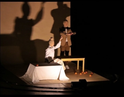 Through a theoretical and practical laboratory that involved body and objects we designed a light fixture called jesnel that meets the specific needs of movement, color and intensity that we were looking to implement in lighting design.This lighting design was made only with three light fixtures jesneles that move from one side to another of the scenic area and two strobes, one located behind the scenography and the other located in the hall.