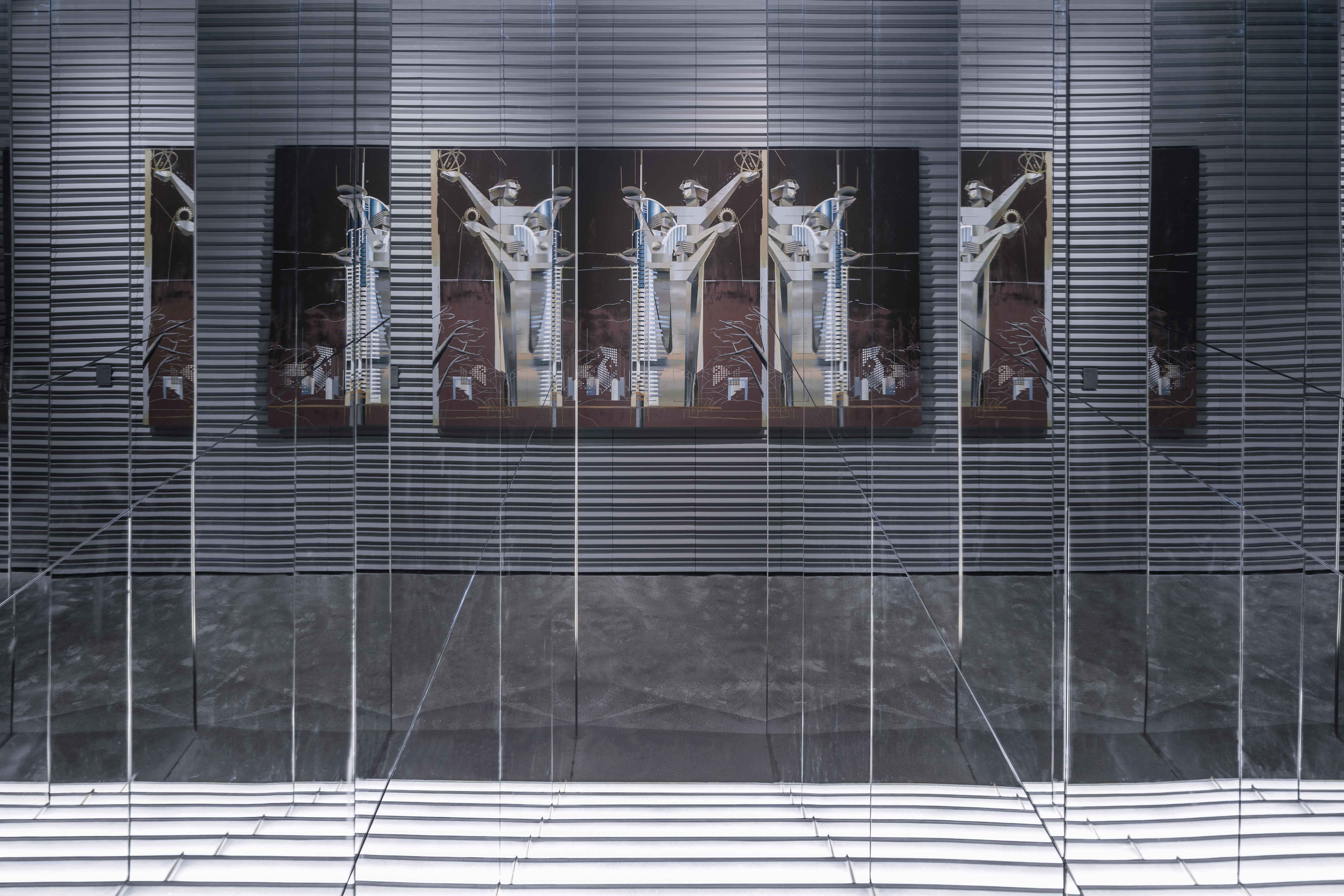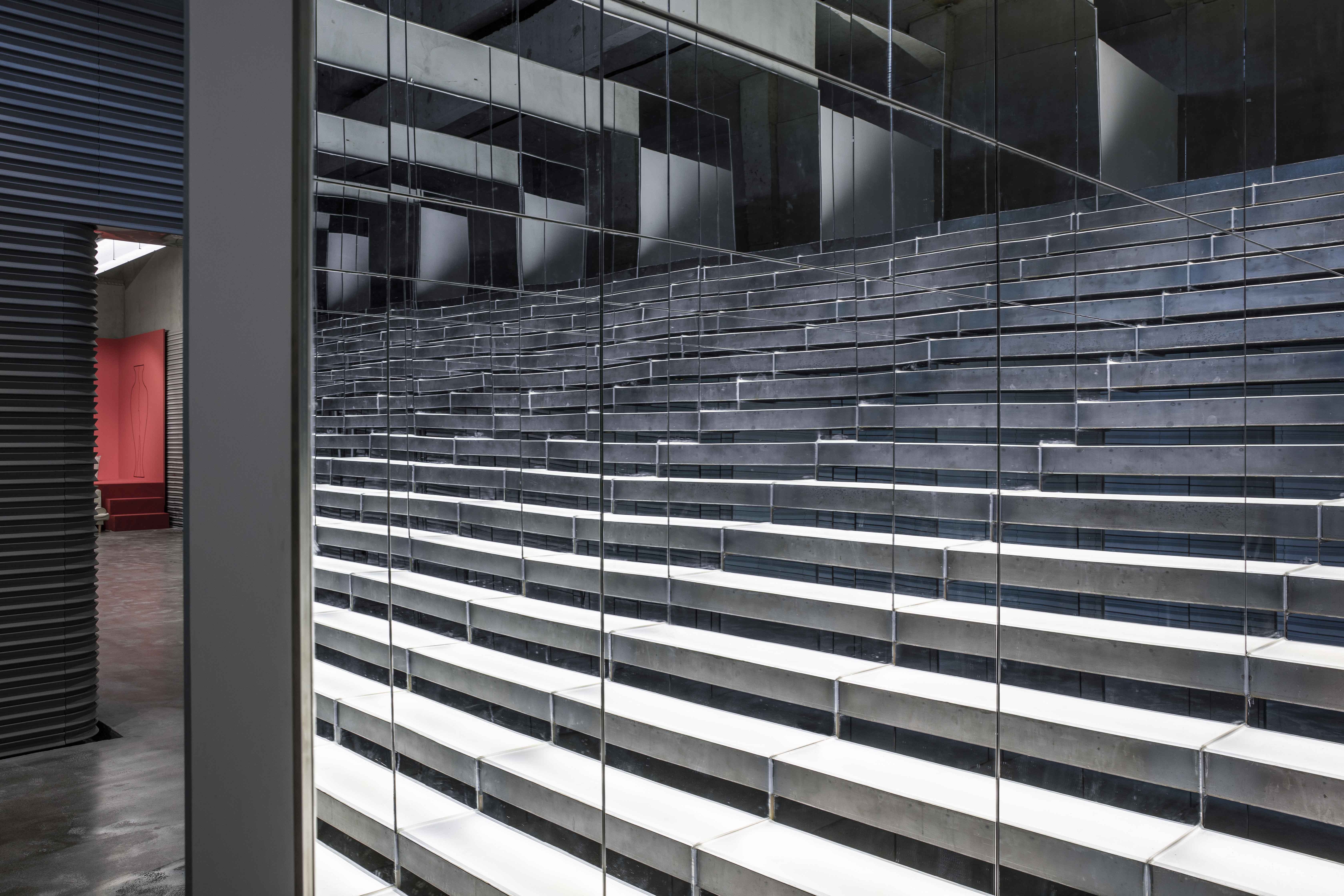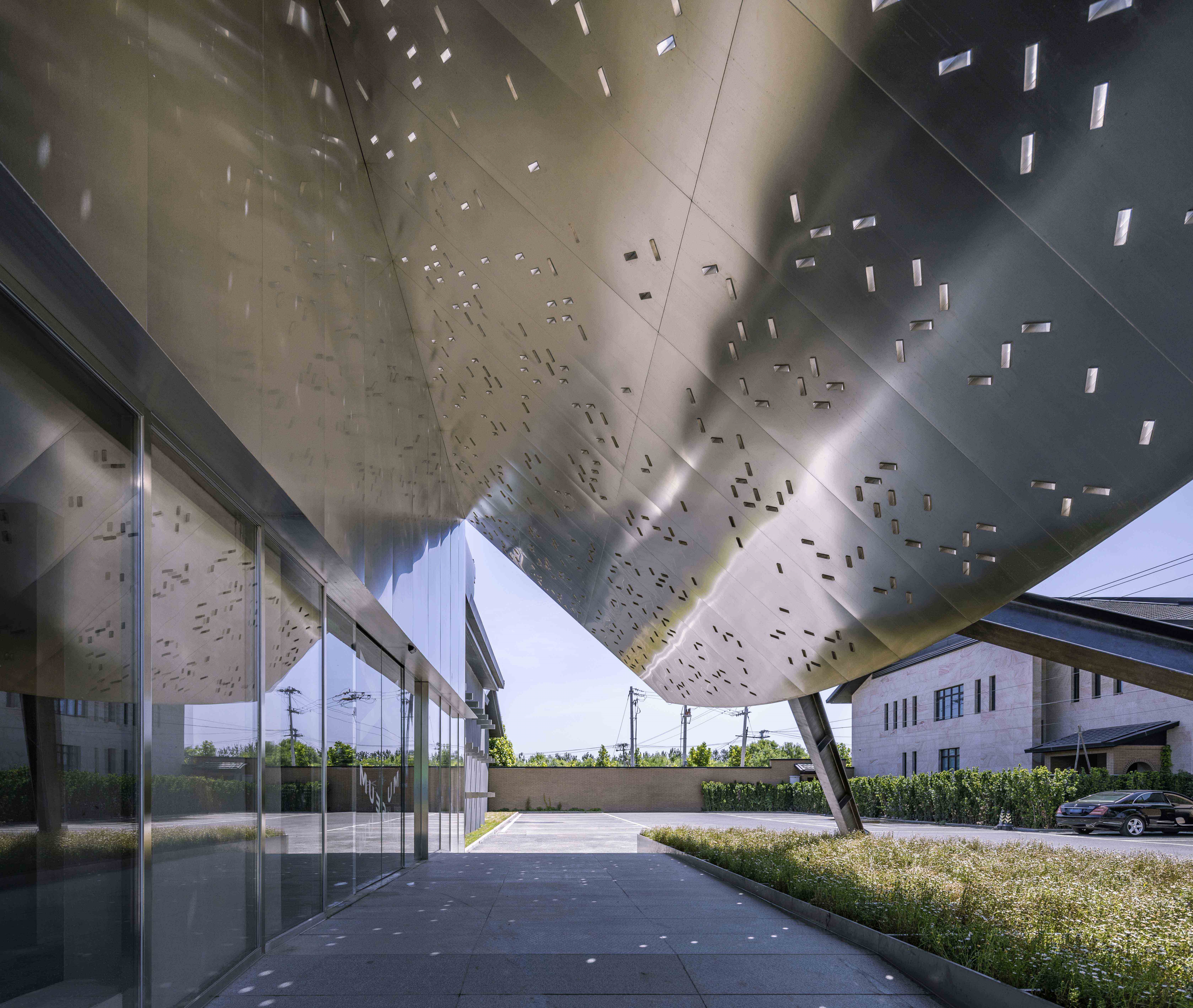 The lighting design was completed with ingenious details in the indoor and outdoor.The X-cross structure column at the entrance is illuminated at night with narrow beam spotlights from the four end points to the central point, highlighting the X geometry,and expressing the meaning of cultural exchange through the intersection of light.The shadows of the 54 rectangular light boxes on the south facade of the museum will change according to the sun exposure during the day,like a sundial that records the time.At night, the small spotlights recessed in the bottom of the light boxes can create new light and shadow patterns on the external wall.In the interior space,due to the unique structural design of the wall in the exhibition hall, the artwork can be hung in any gap on the wall through special metal clips. Therefore, the lighting design is arranged in the exhibition hall with track lights that can be adjusted at any angle. All forms of exhibits can be highlighted, creating the flexibility of the light environment.A long rectangular frosted glass customized lamp is placed on the central axis of the ceiling to provide even and soft ambient light for the overall space.