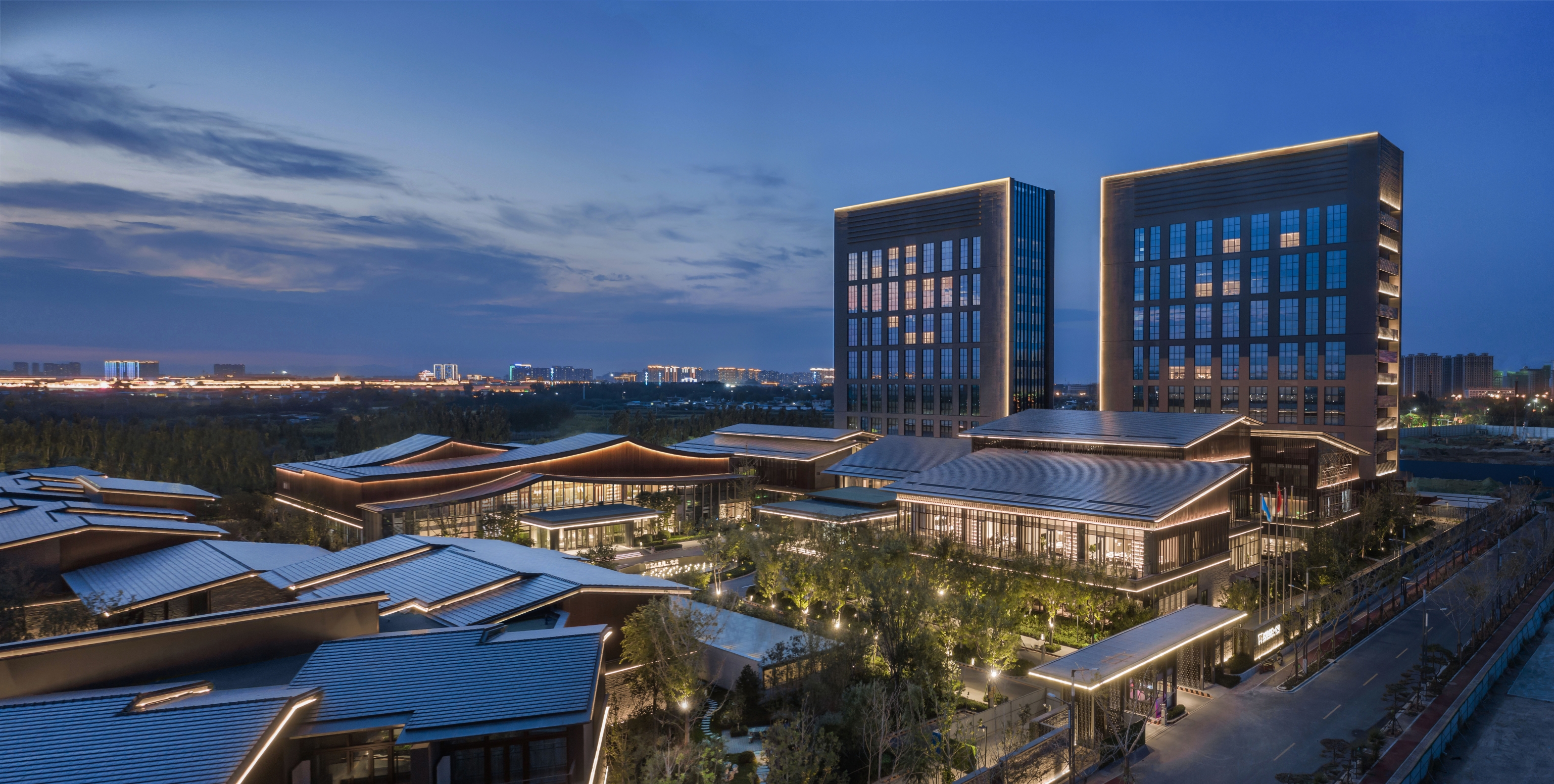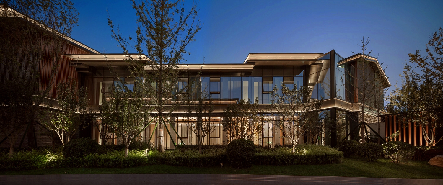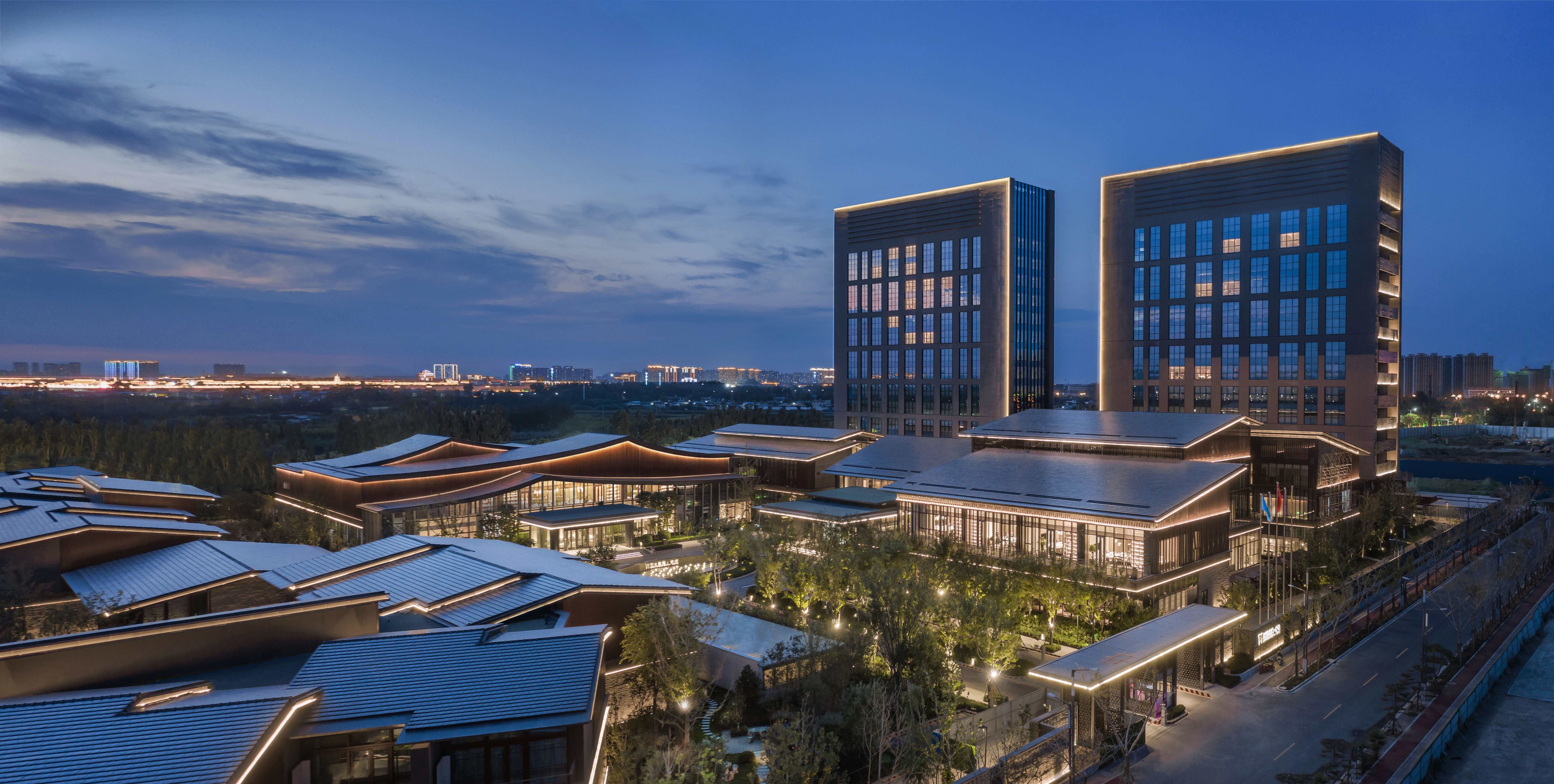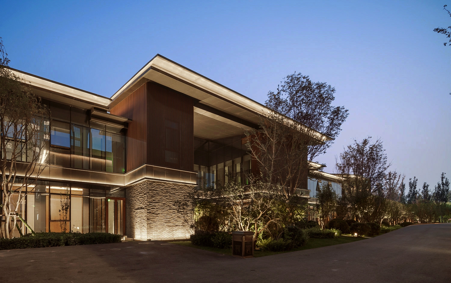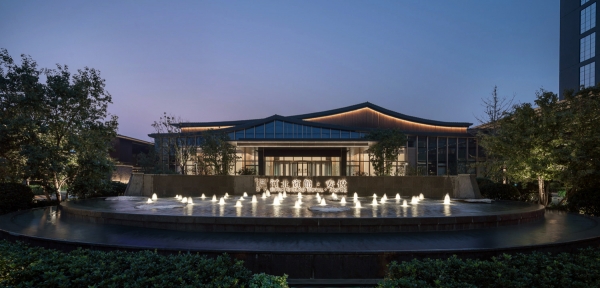 The project comprises two symmetrical towers and 60 villas, blending classic Chinese architecture with modern needs to create an urban getaway. Lighting plays an essential role to transform the project’s magnificent luxury during the day to subtlety and agility at night. Façade lightings are inspired by Chinese landscape paintings - the towers are like commanding peaks over the valleys (low-rise villas). The lighting mimics the effect when the morning haze forms a shimmering outline at the building edges, with rays penetrating the valleys. During the day, the towers look like solid cuboids. At night, their soft side is revealed through façade lighting. Instead of delineating all four sides of the cuboid, linear lights are only applied along the inner and top sides to bring out the beautiful symmetry. Upward grazing lights are used along the elevations to accentuate the building height, but are kept at a minimum to amplify the geometric form. For villas, light is applied to depict the pitched roofs, staggered height and progressive layers. Landscape lightings such as buried wallwashers emphasize textured walls, while tree uplights help patrons immerse in and reconnect with nature.