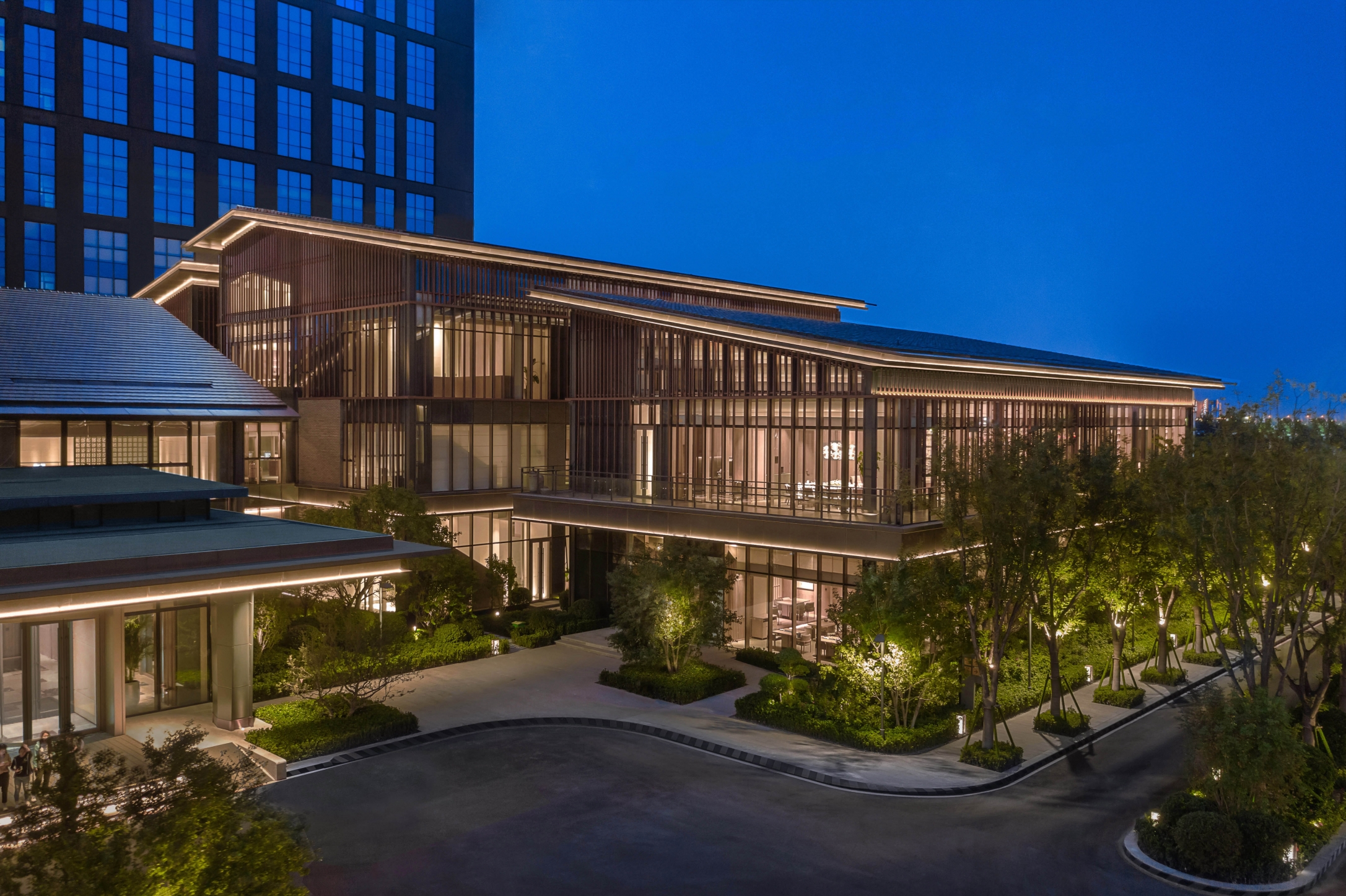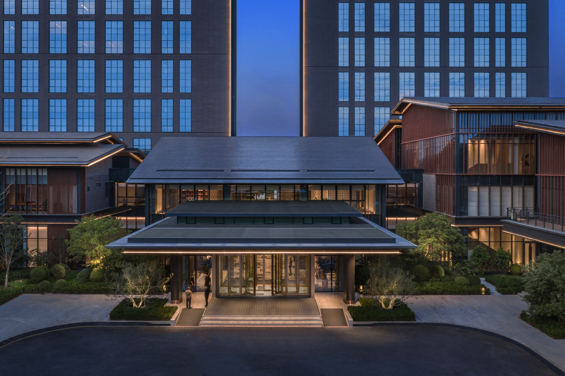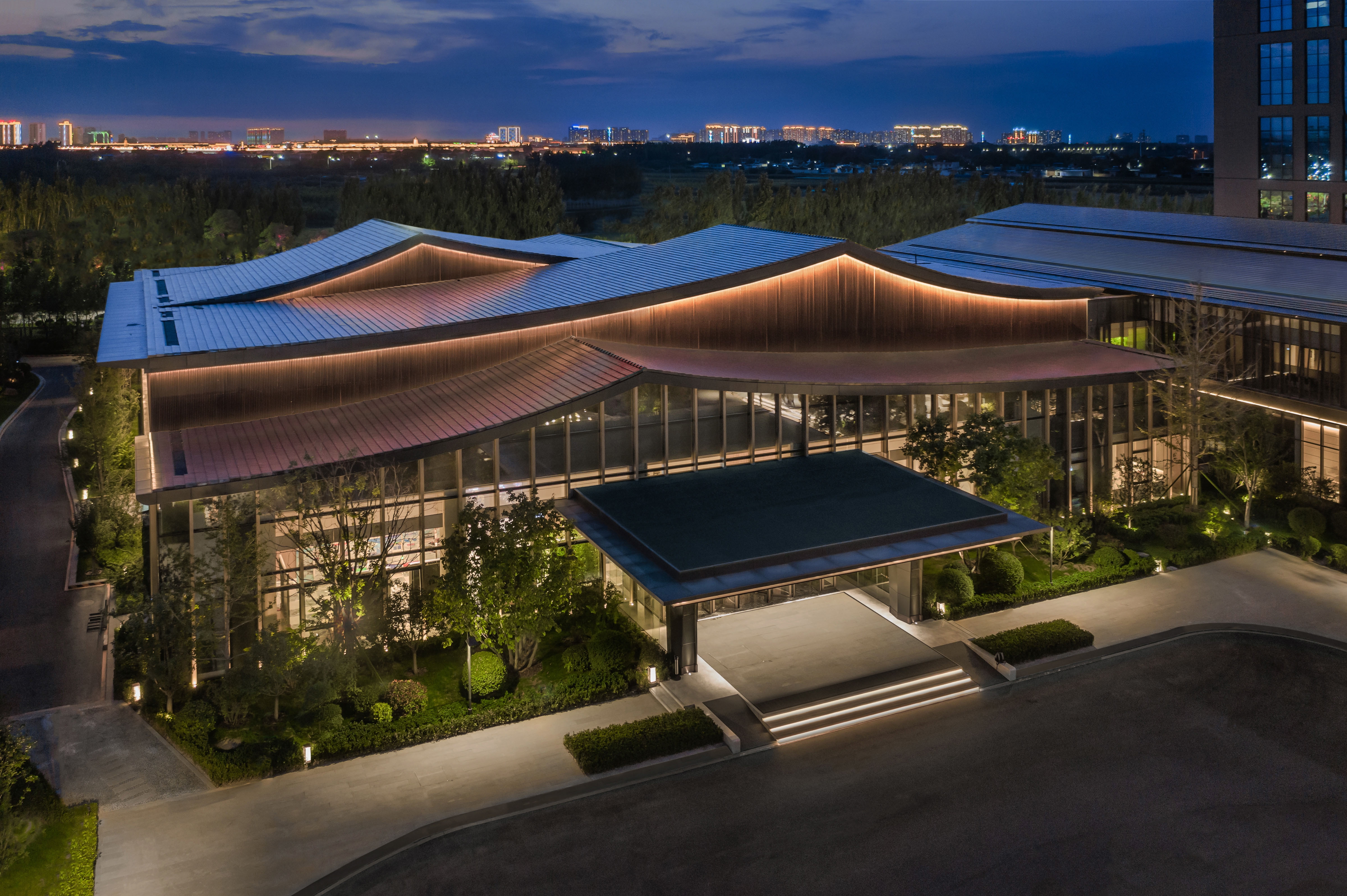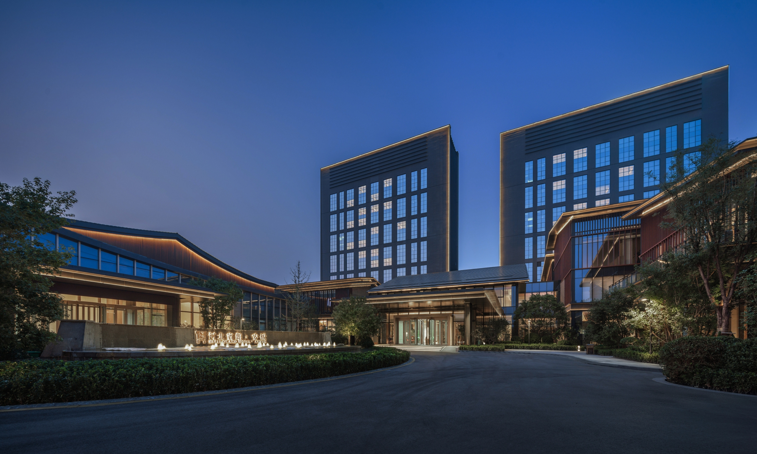 The project comprises two symmetrical towers and 60 villas, blending classic Chinese architecture with modern needs to create an urban getaway. Lighting plays an essential role to transform the project’s magnificent luxury during the day to subtlety and agility at night. Façade lightings are inspired by Chinese landscape paintings - the towers are like commanding peaks over the valleys (low-rise villas). The lighting mimics the effect when the morning haze forms a shimmering outline at the building edges, with rays penetrating the valleys. During the day, the towers look like solid cuboids. At night, their soft side is revealed through façade lighting. Instead of delineating all four sides of the cuboid, linear lights are only applied along the inner and top sides to bring out the beautiful symmetry. Upward grazing lights are used along the elevations to accentuate the building height, but are kept at a minimum to amplify the geometric form. For villas, light is applied to depict the pitched roofs, staggered height and progressive layers. Landscape lightings such as buried wallwashers emphasize textured walls, while tree uplights help patrons immerse in and reconnect with nature.