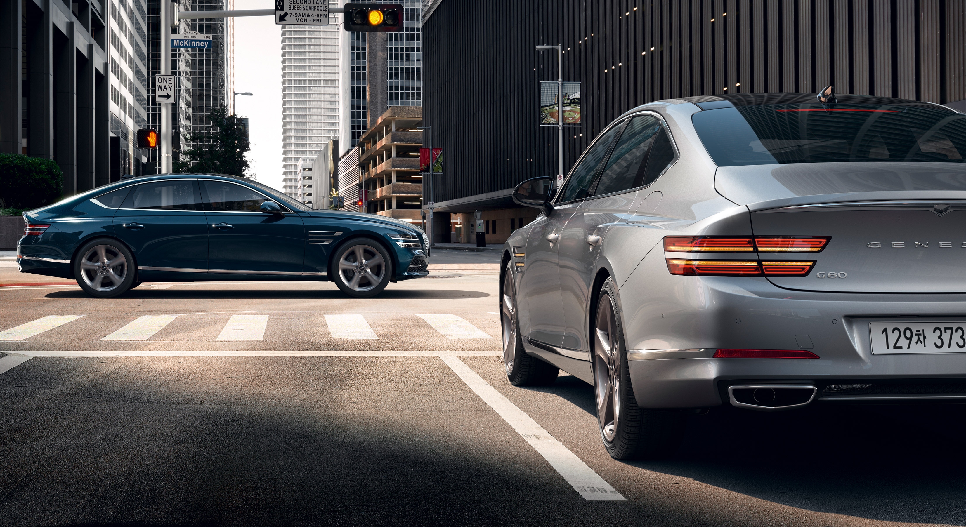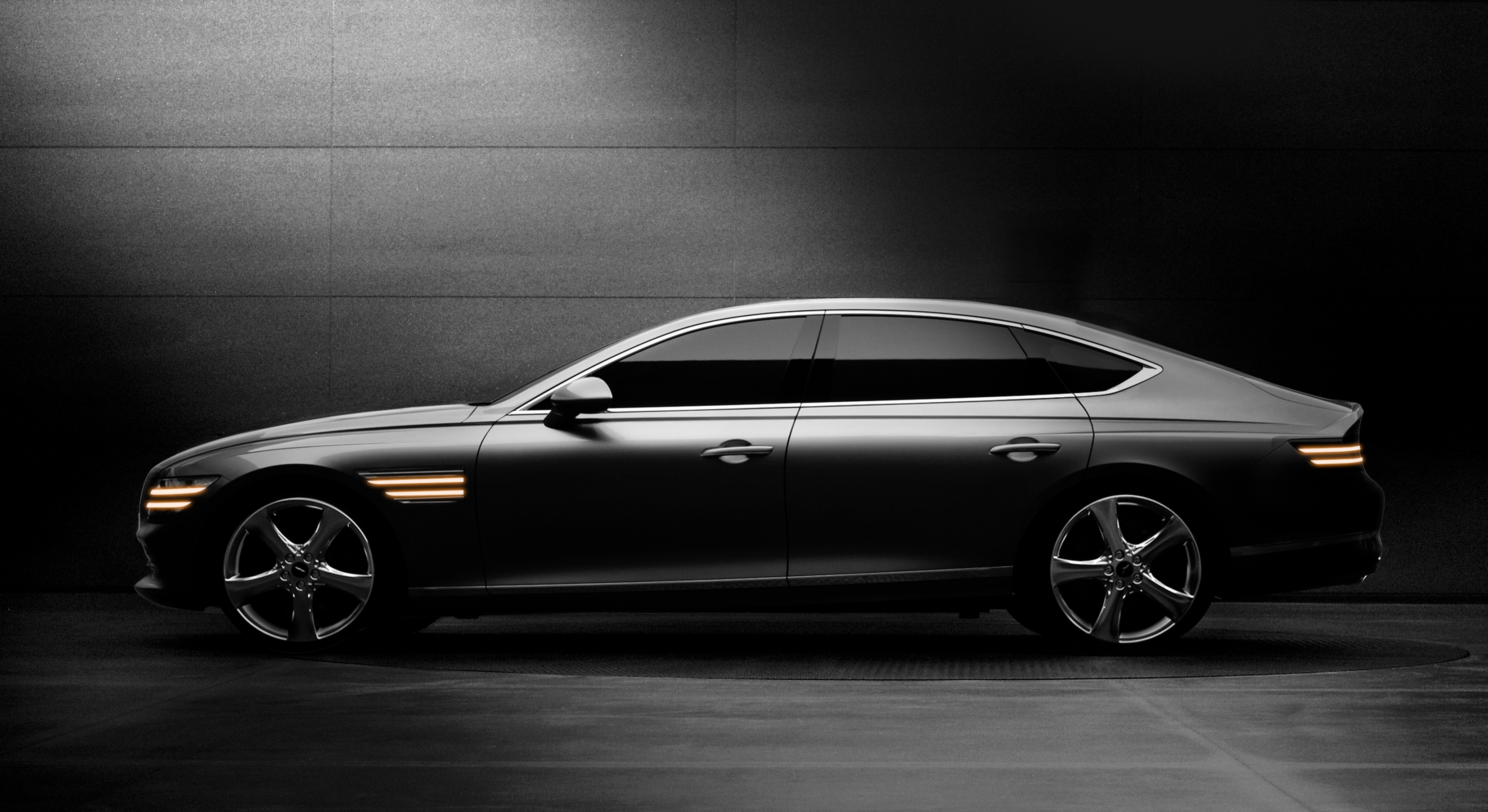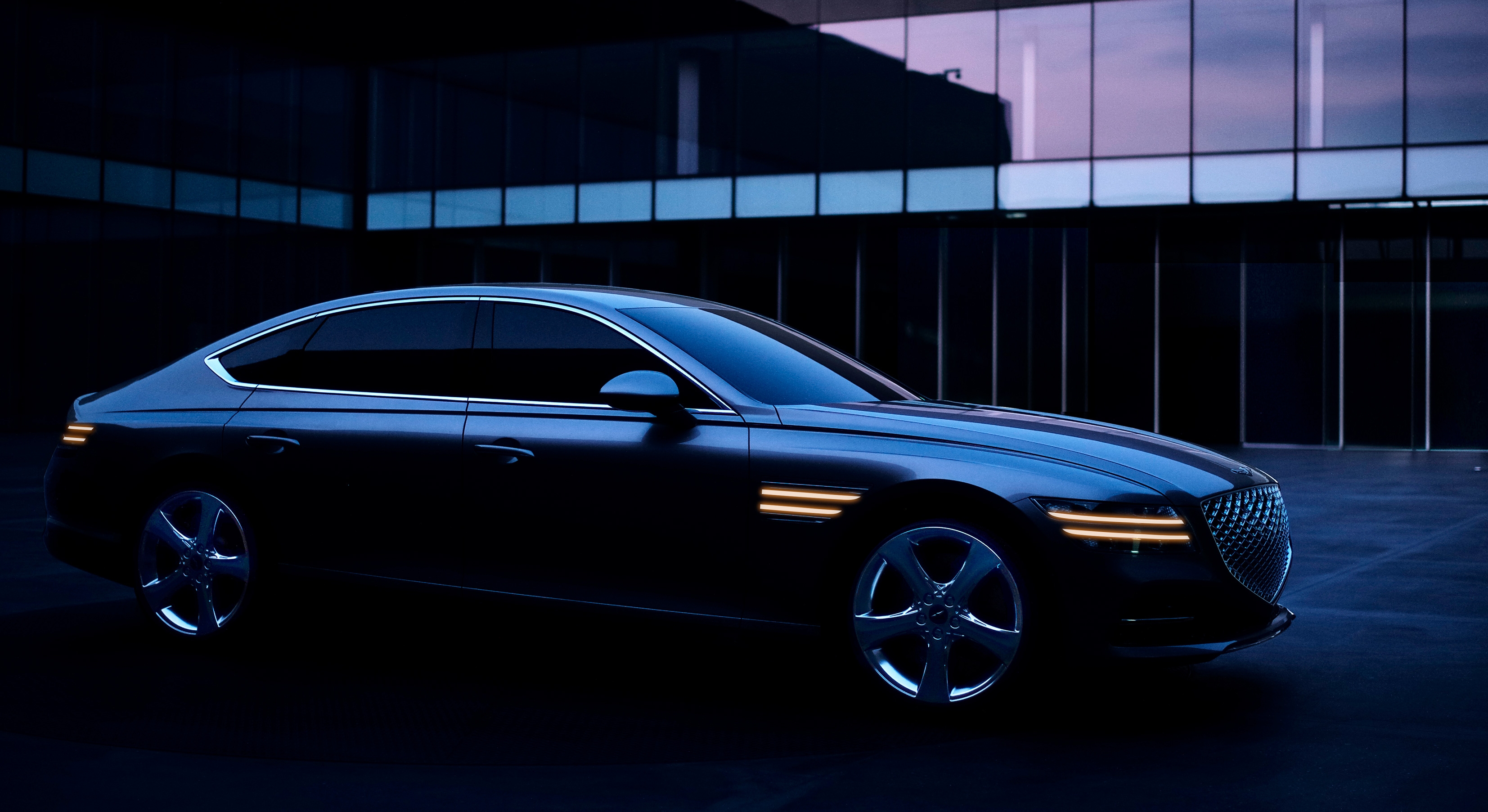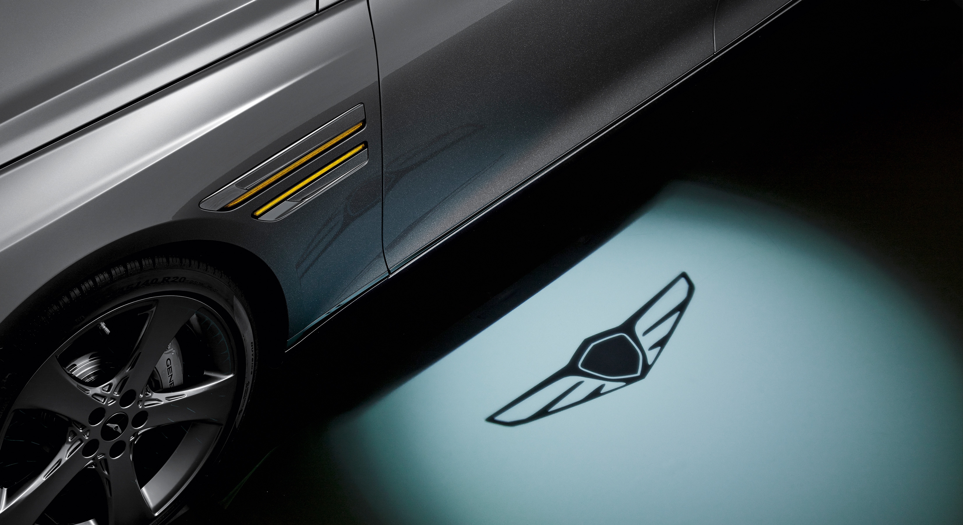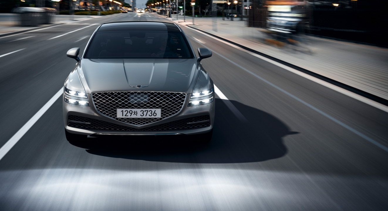 The Crest Grille, and the two lines of the Quadlamps circumventing all sides of the vehicle are signature design elements of the Genesis.