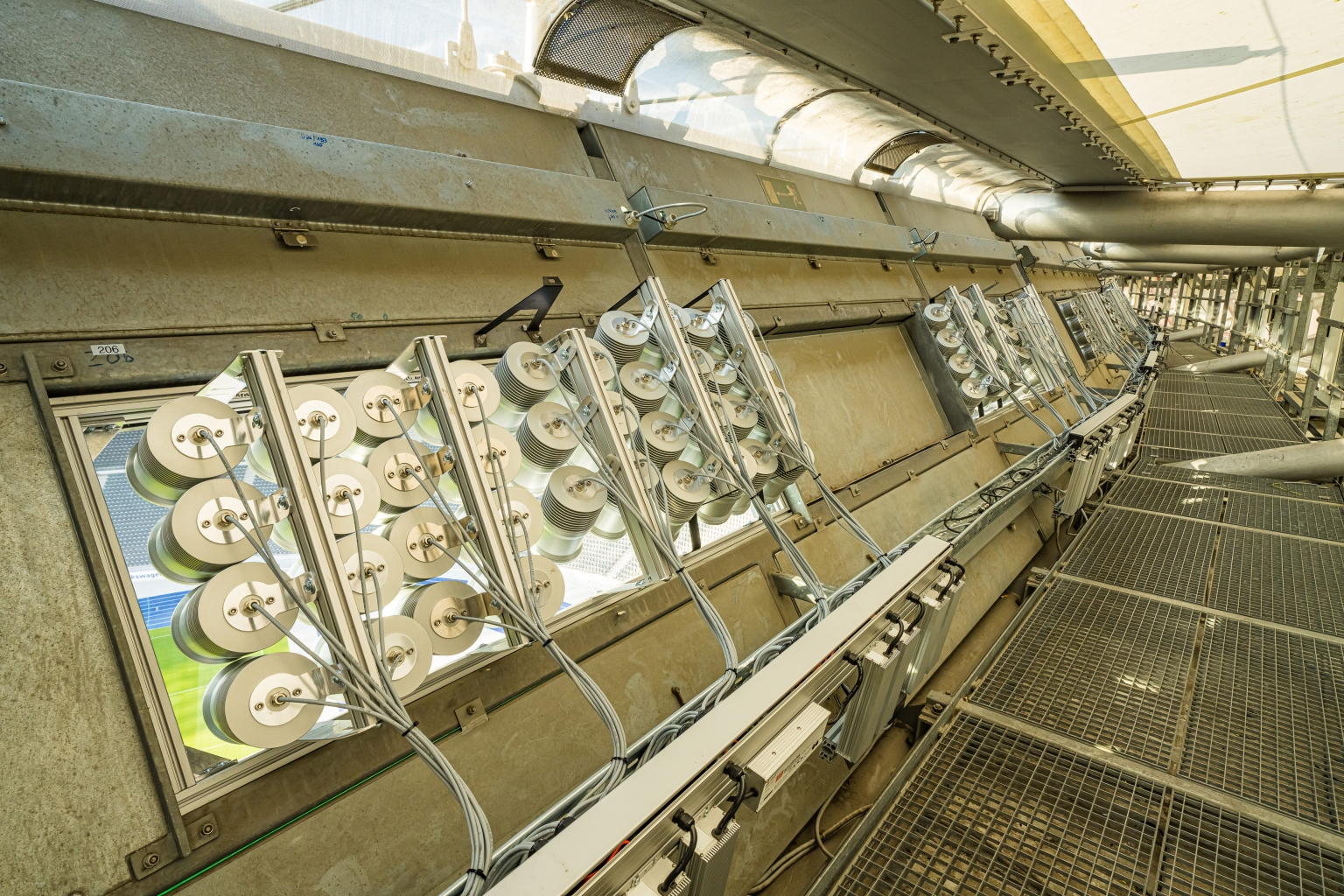 The lighting system has been invented from scratch: floodlight reflector technology as opposed to the conventional lens technology, with 5.200 LED-lamps in white and 1.000 LED-lamps in RGB.