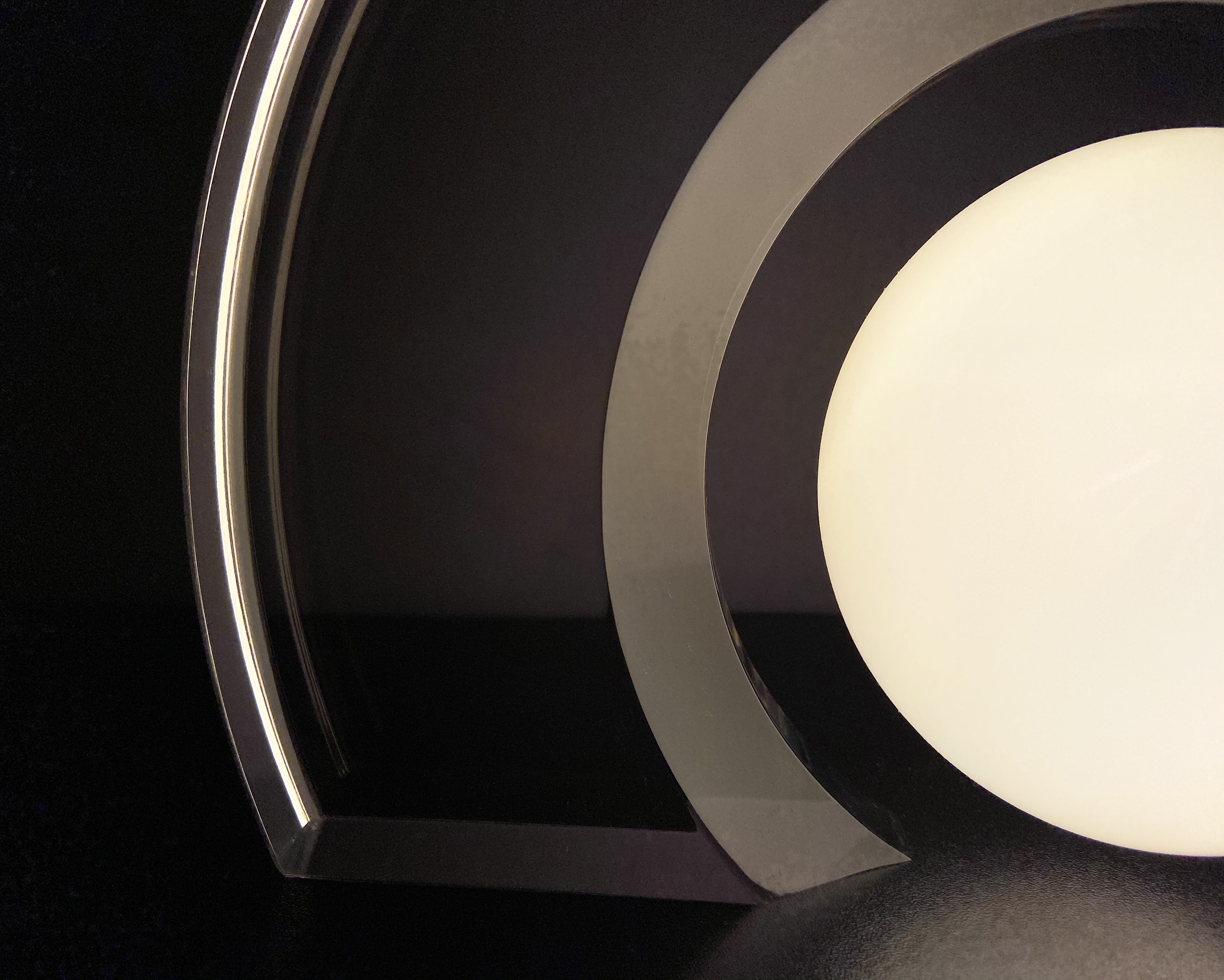 The incandescence, highlighted by a translucent bevelled ellipse, plays both spirituality and scientifically.