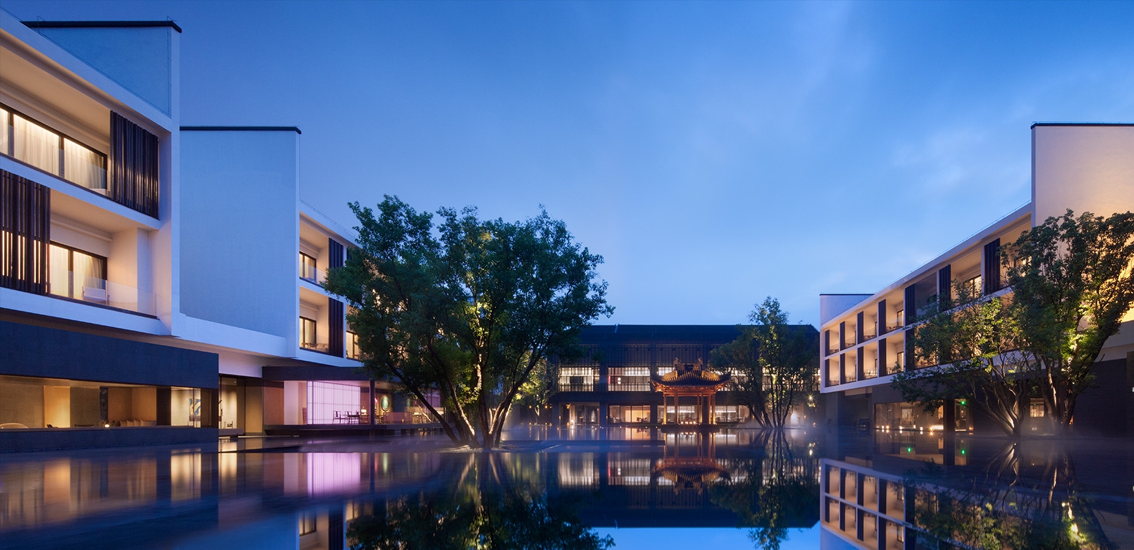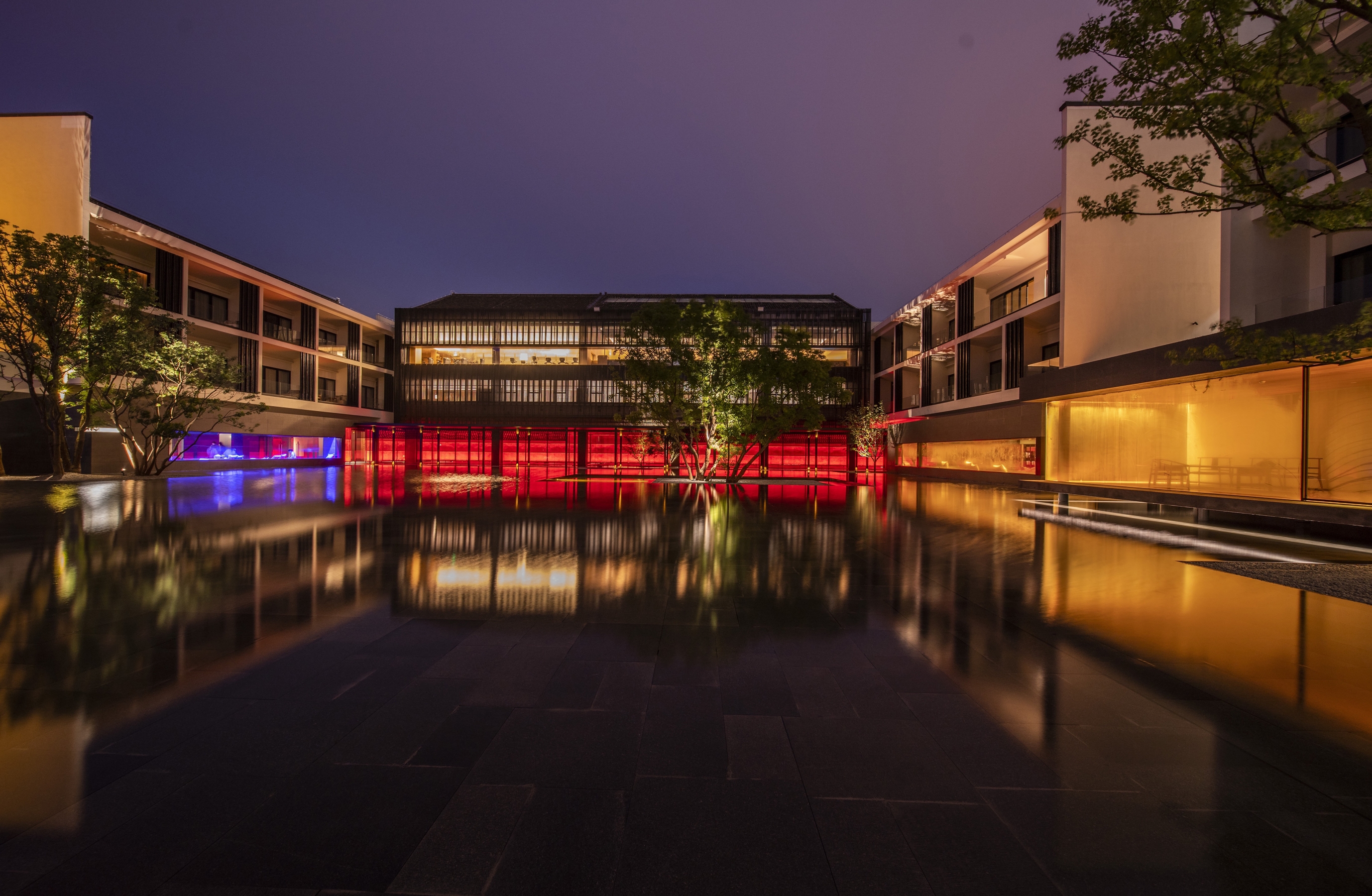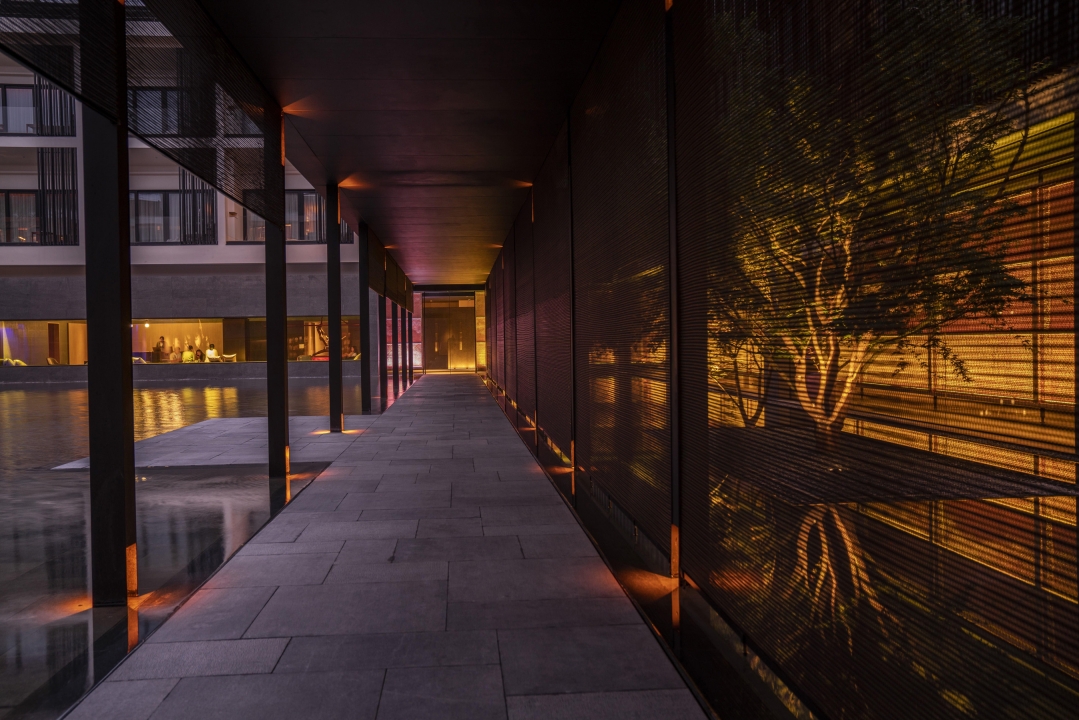 The lighting concept very much follows the clients' desire to make the resort unique revolving around organic farming and art. The architectural concept is designed with all public spaces facing the central courtyard. Each of them a “box” protruding into the courtyard which is predominantly a water feature with some trees. At night the individual boxes light up and become a feature, with the water surface creating an additional reflection effect adding to the magic. The hotel rooms face the interior courtyard also allowing the guest to enjoy it from their rooms. The lighting design emphasis the uniqueness of the architectural concept and combines that with an element of intrigue and yet maintaining the privacy. Activity in the hotel can be observed by the movement of people’s silhouettes in the other spaces creating intrigue without being to intruding. The lighting creates a continued magic and transforms the place at night in a totally different experience.