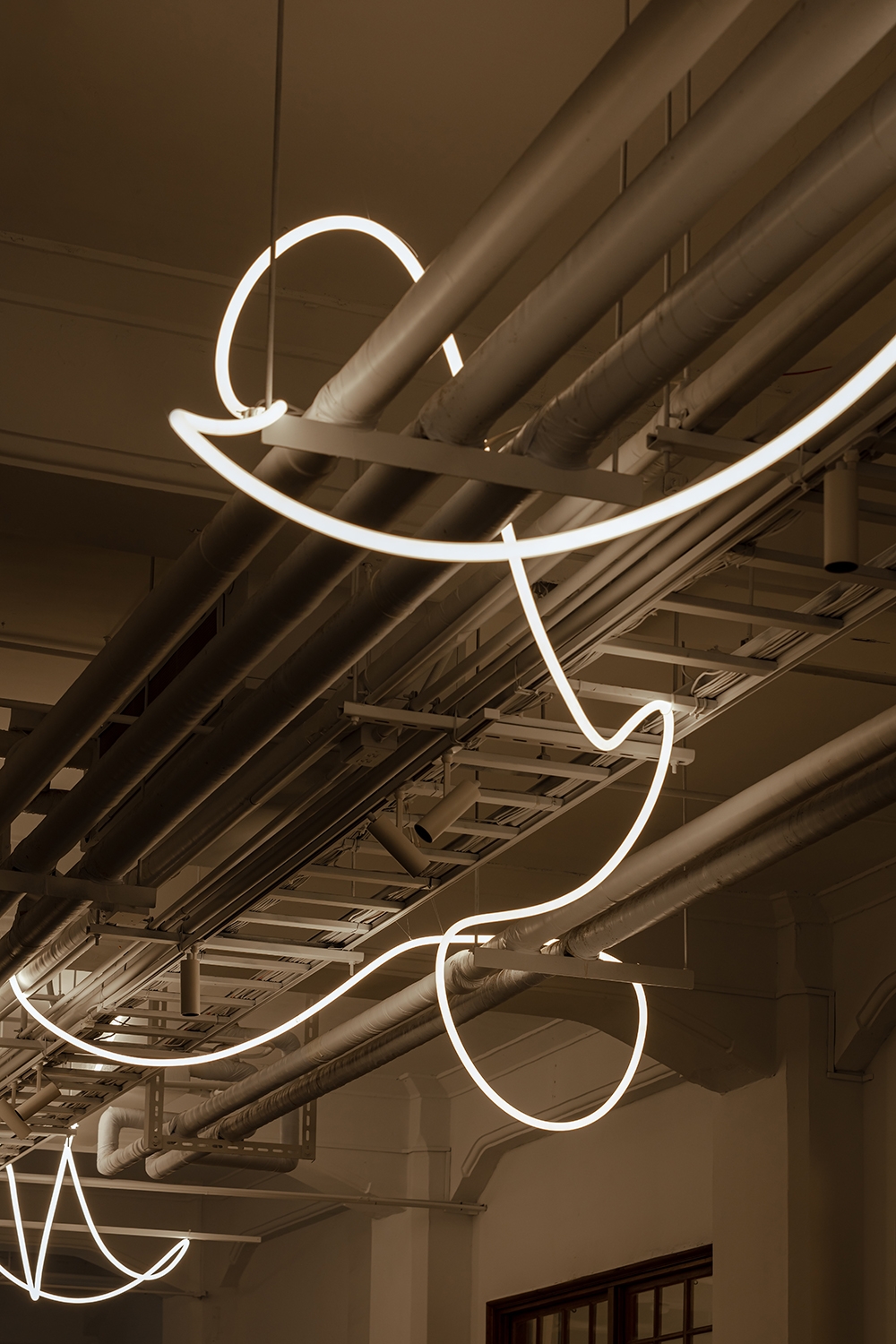 The 3000K color temperature track light and the 2700K color temperature LED light bar give the corridor space a deeper expression under the appropriate contrast. The free-curved light bars just like the initial sketches and abstract lines on the sketches giving designers and artists unlimited imagination and design thought.